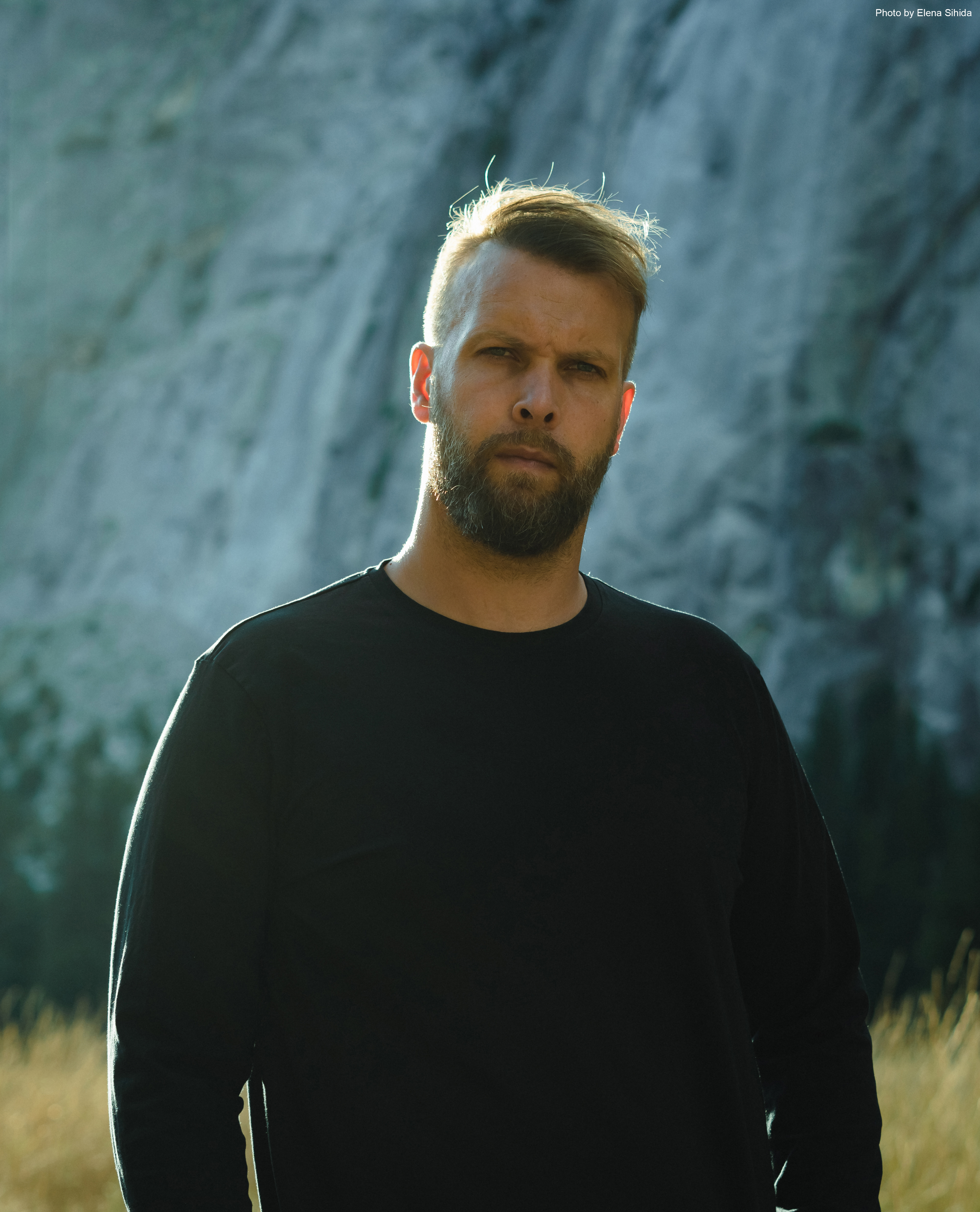 Der Sänger von LEPROUS steht in einem Bach mitten in der Natur, sein Blick forschend nach…