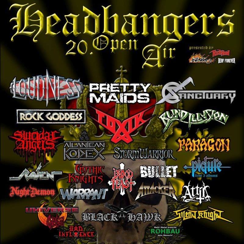 Es ist soweit: Das legendäre Headbangers-Open-Air geht vom 27. bis zum 29.07.2017 in seine 20ste Runde. Und wie jedes Jahr wird auch dieses Mal dem traditionellen Metal in all‘ seinen Facetten gehuldigt. Aber das HOA wäre nicht das HOA, wenn nicht ein besonderes Augenmerk auf Bands gelegt werden würde, die nicht an jeder Ecke spielen. Wann sah man schon mal die US-Thrasher BLIND ILLUSION, BLOODFEAST und TOXIK zusammen mit den holländischen Hard Rock Urgesteinen PICTURE, den US Metal Heroen SANCTUARY und den NWoBHM Legenden RAVEN auf einem Festival? Eben…kann mich auch nicht erinnern. Aber damit gibt man sich im hohen Norden nicht zufrieden und haut mit u.a. STORMWARRIOR, WARRANT, ATTACKER, ROCK GODDESS und NIGHT DEMON das beste von alt bis jung noch oben drauf. Und zu guter Letzt dürfen auch noch LOUDNESS beweisen, dass Metal made in Fernost auch gewaltig Hintern tritt. Aber selbst das ist noch nicht alles und so geben sich noch weitere Hochkaräter die Gitarre in die Hand.