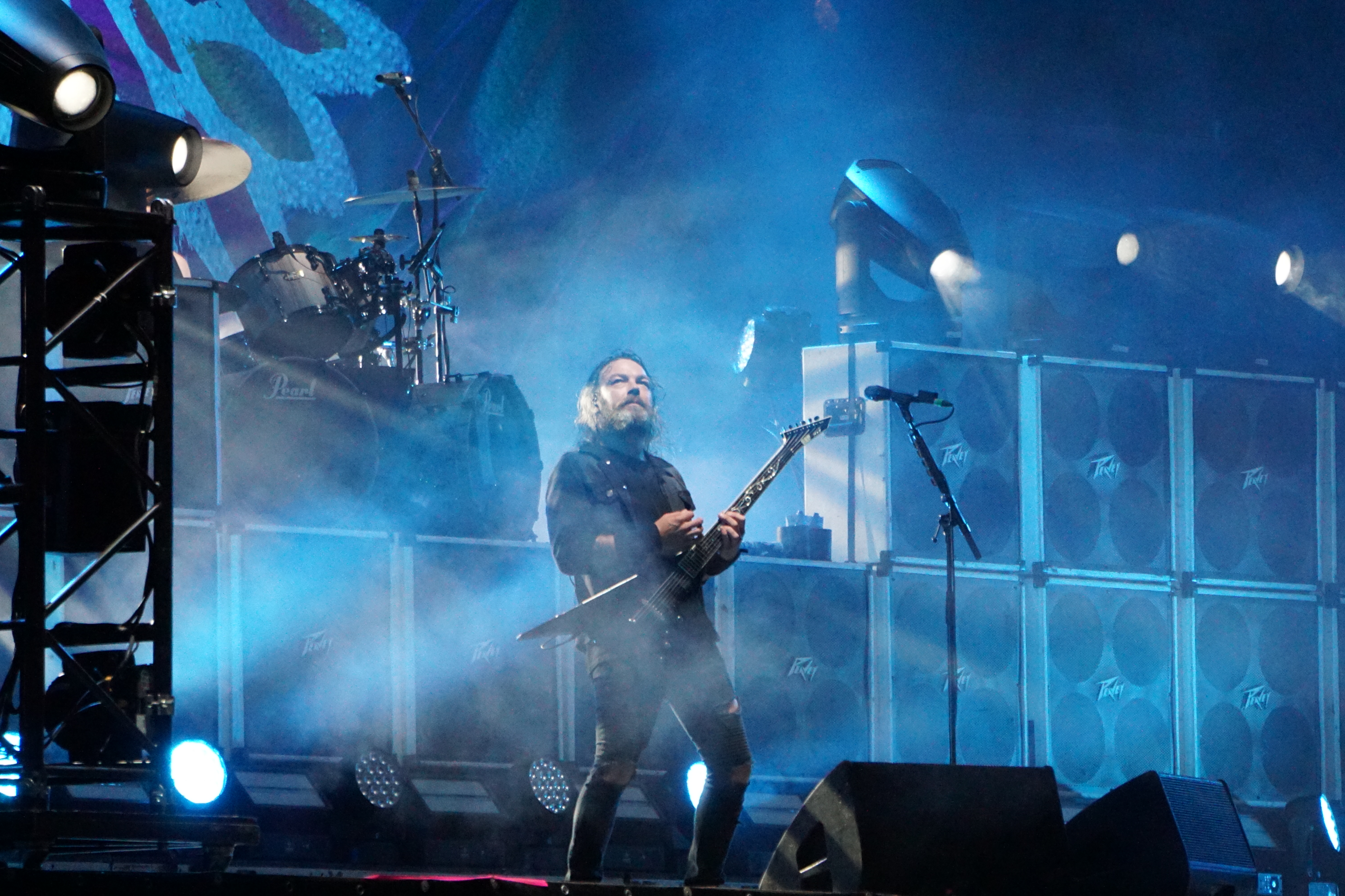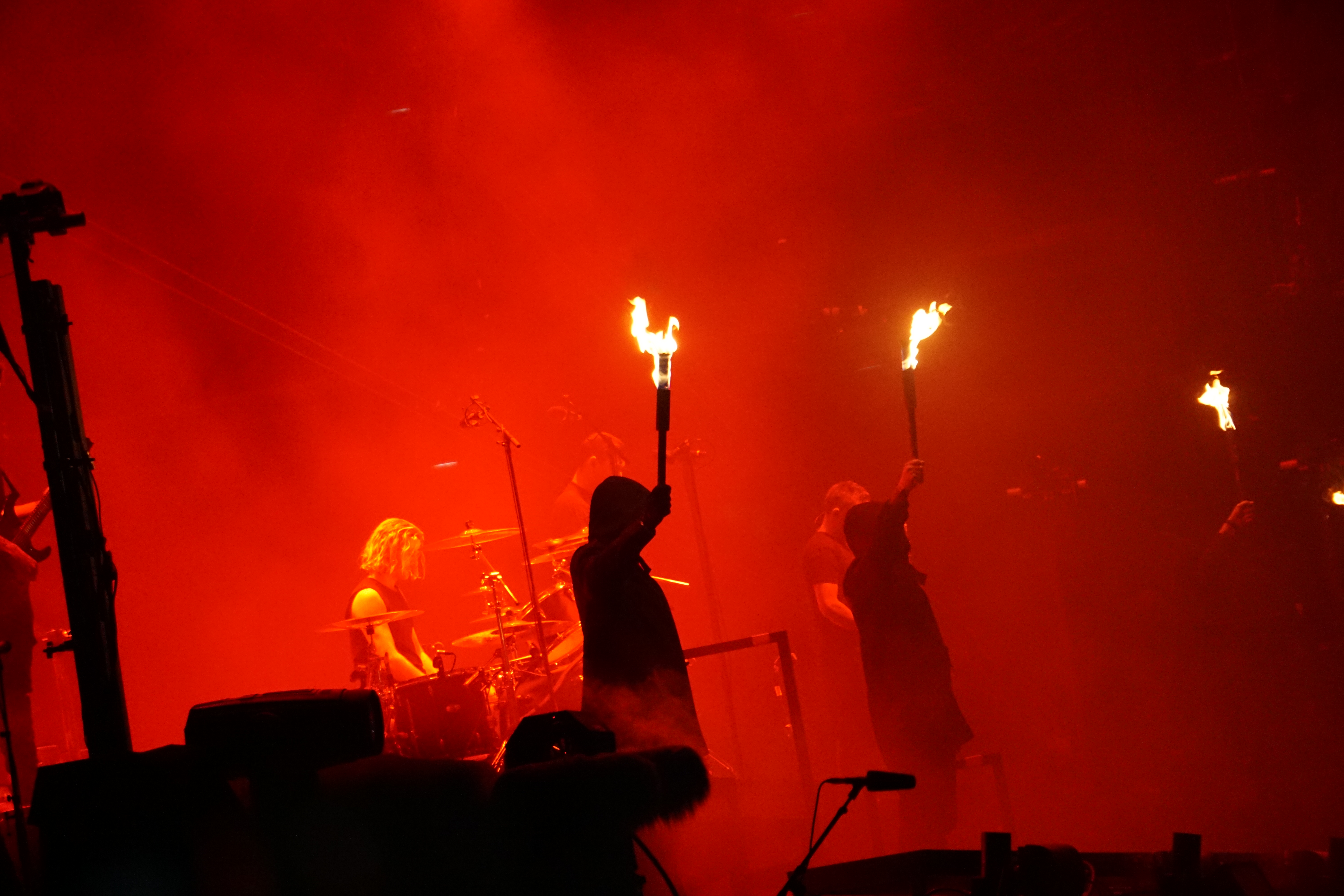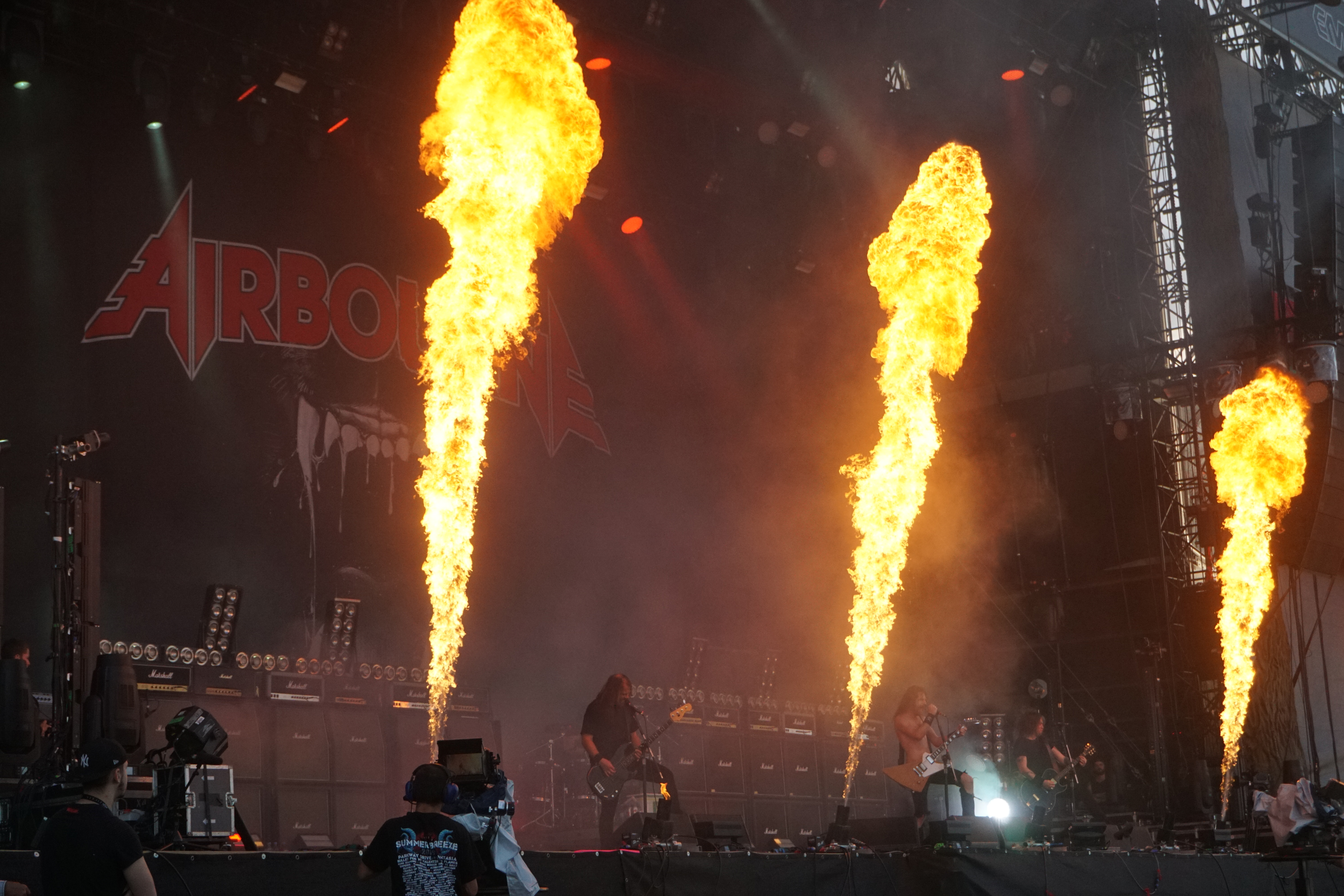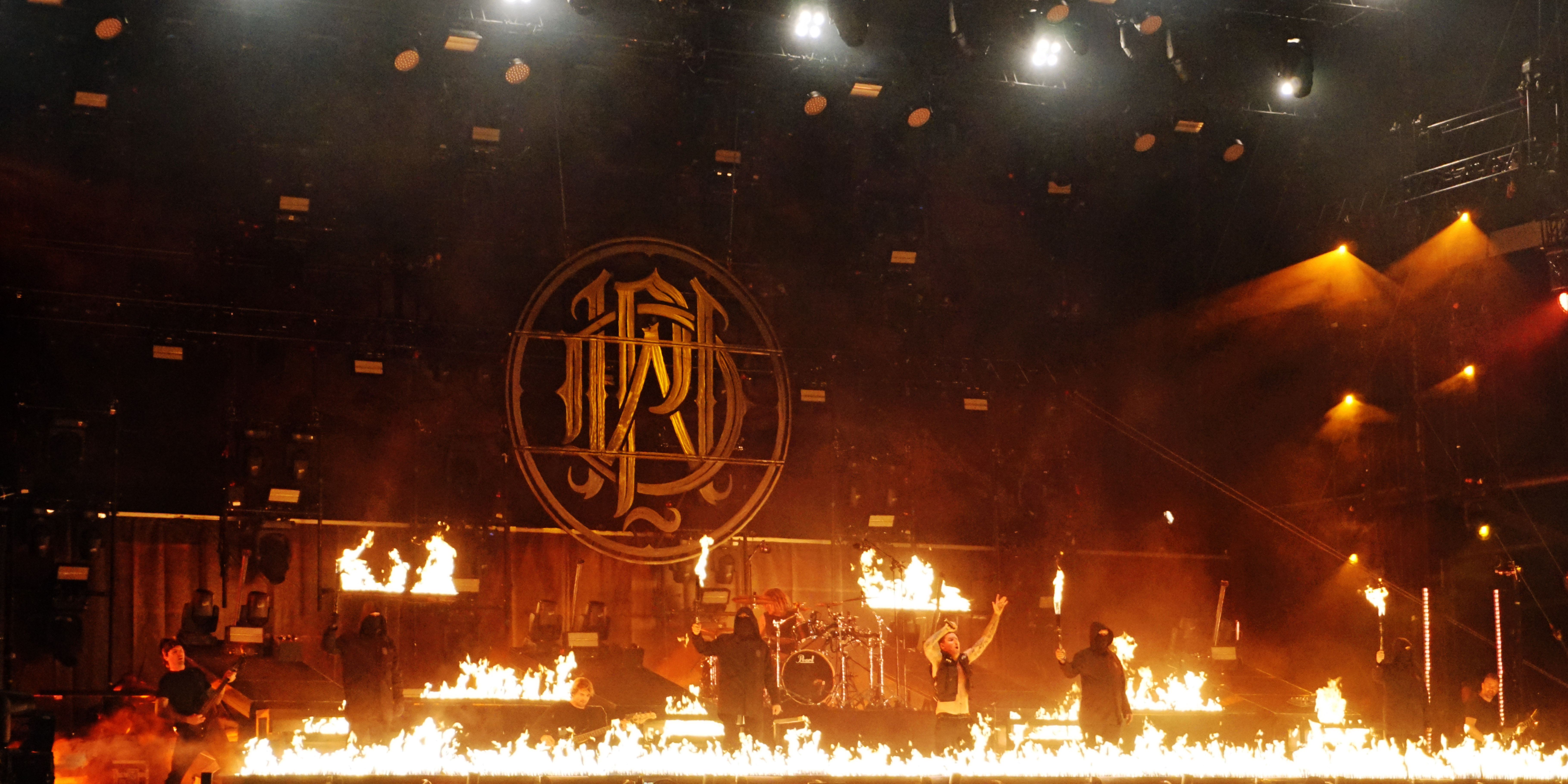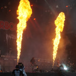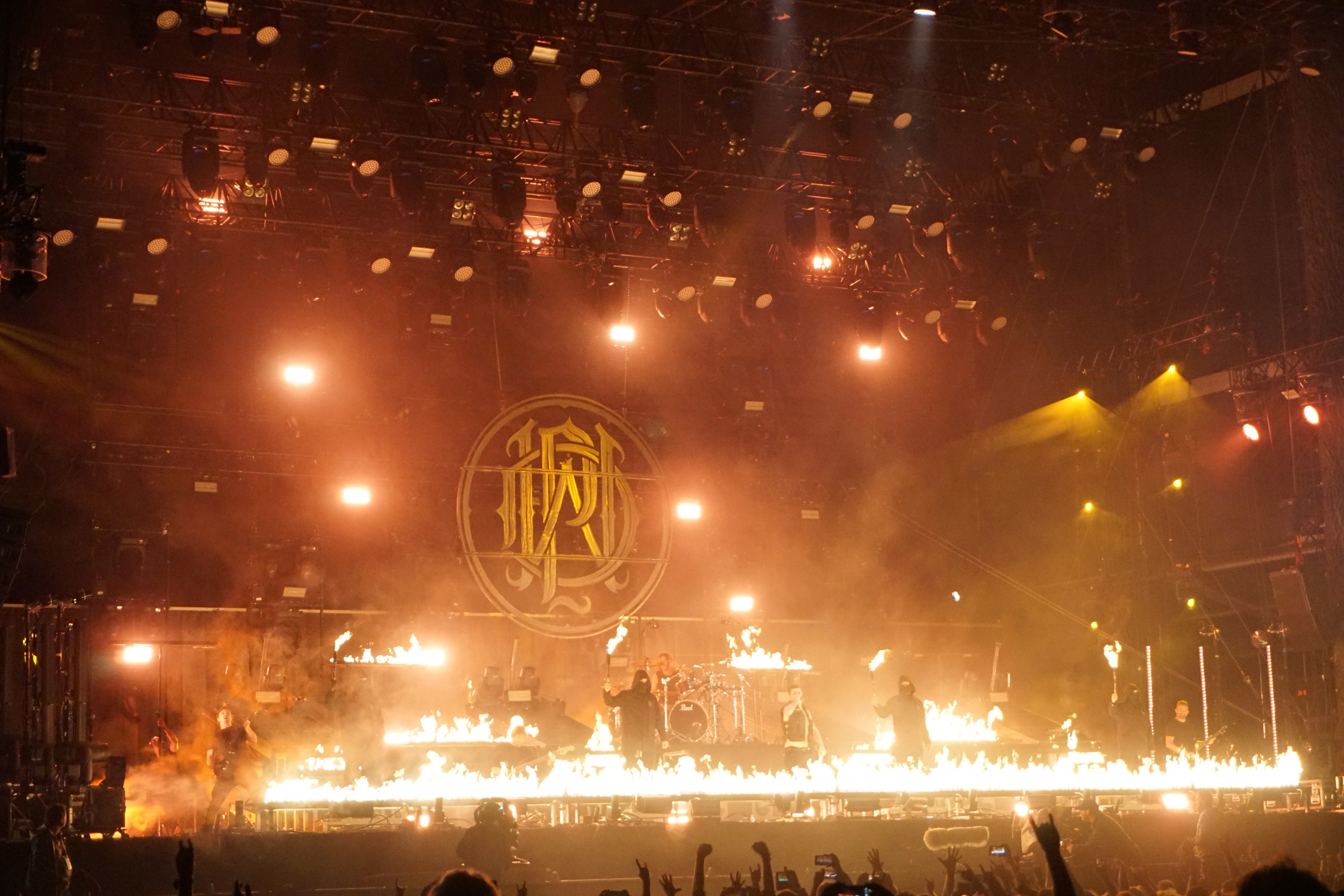 Die zweite Gruppe aus Down Under waren die ungeheuer sympathischen PARKWAY DRIVE. Bereits ausverkaufte Konzerte in der ersten Jahreshälfte haben es angedeutet, der Platz vor der Mainstage war proppenvoll. Ein Donnerschlag auf der Bühne erregte die erste Aufmerksamkeit, dann folgte das Video zur Einleitung infolge dessen die Band, umringt von Fackelträgern, durch die erstaunte Menge bis zur Bühne geleitet wurde. Das Szenario erinnerte ein wenig an Mad Max o.ä. Die Fackeln erloschen und mit “Wishing Wells“ ging’s los. Von da ab wurde das Gaspedal durchgetreten und getreu nach dem Motto “Wer bremst verliert“, gab's kein Halten mehr. Rezitiert wurde überwiegend Material aus “Reverence“ und “Ire“, die der Band zu ihrem Aufstieg verholfen hatten. Einer von ihnen konnte nicht so recht wie er wollte, nämlich Bassist Jia O’Connor. Jener wurde, in Folge einer Knieverletzung, zu “Prey“ im Rollstuhl auf die Bühne geschoben. Später wurde er durch die beweglichen Plattformen auf der Bühne über seine Mitstreiter angehoben. Vor “Writings On The Wall“ kamen die Plattformen erneut zum Einsatz. Ein weibliches Streichquartett lieferte in luftiger Höhe eine beeindruckende Kulisse. Von dort aus untermalten sie auch noch “Shadow Boxing“ im Anschluss. Nach dem getragenen “Chronos“ verschwand die Band zunächst und es wurde dunkel. Das Bandlogo wurde im Hintergrund hochgezogen und Winston McCall (Gesang) entzündete einen Molotowcocktail den er dagegen schleuderte. Augenblicklich versank die Bühne in einem Flammenmeer. Zum krönenden Abschluss erklangen “Crushed“ und “Bottom Feeder“, bei dem Feuerfontainen in den Nachthimmel schossen, WOW! Hier hatte ein grandioser Headliner die Bühne bestiegen und diesen Thron verteidigten sie mit Leidenschaft, phantastischer Performance, viel Licht und noch mehr Feuer – ganz großes Kino.