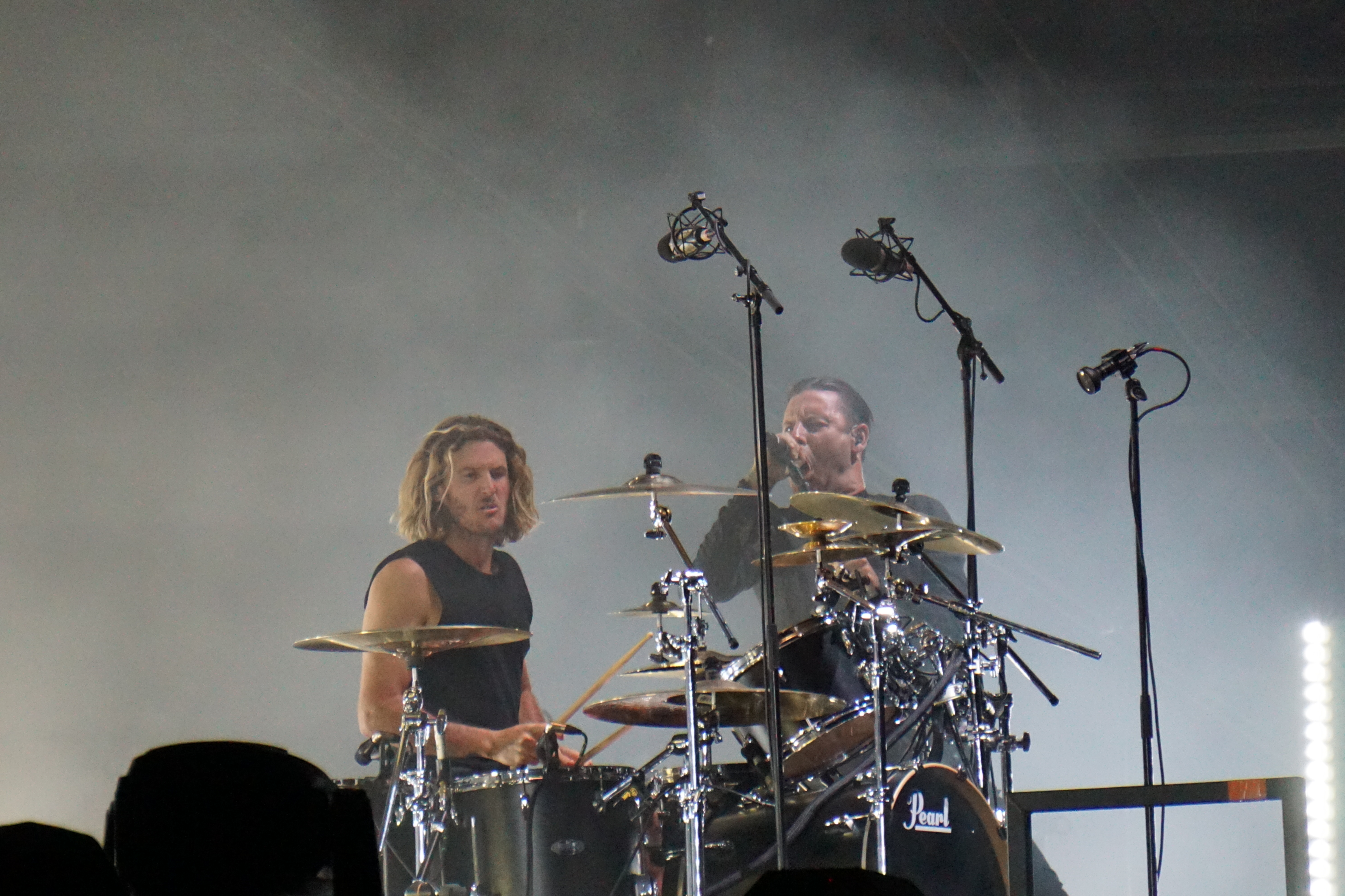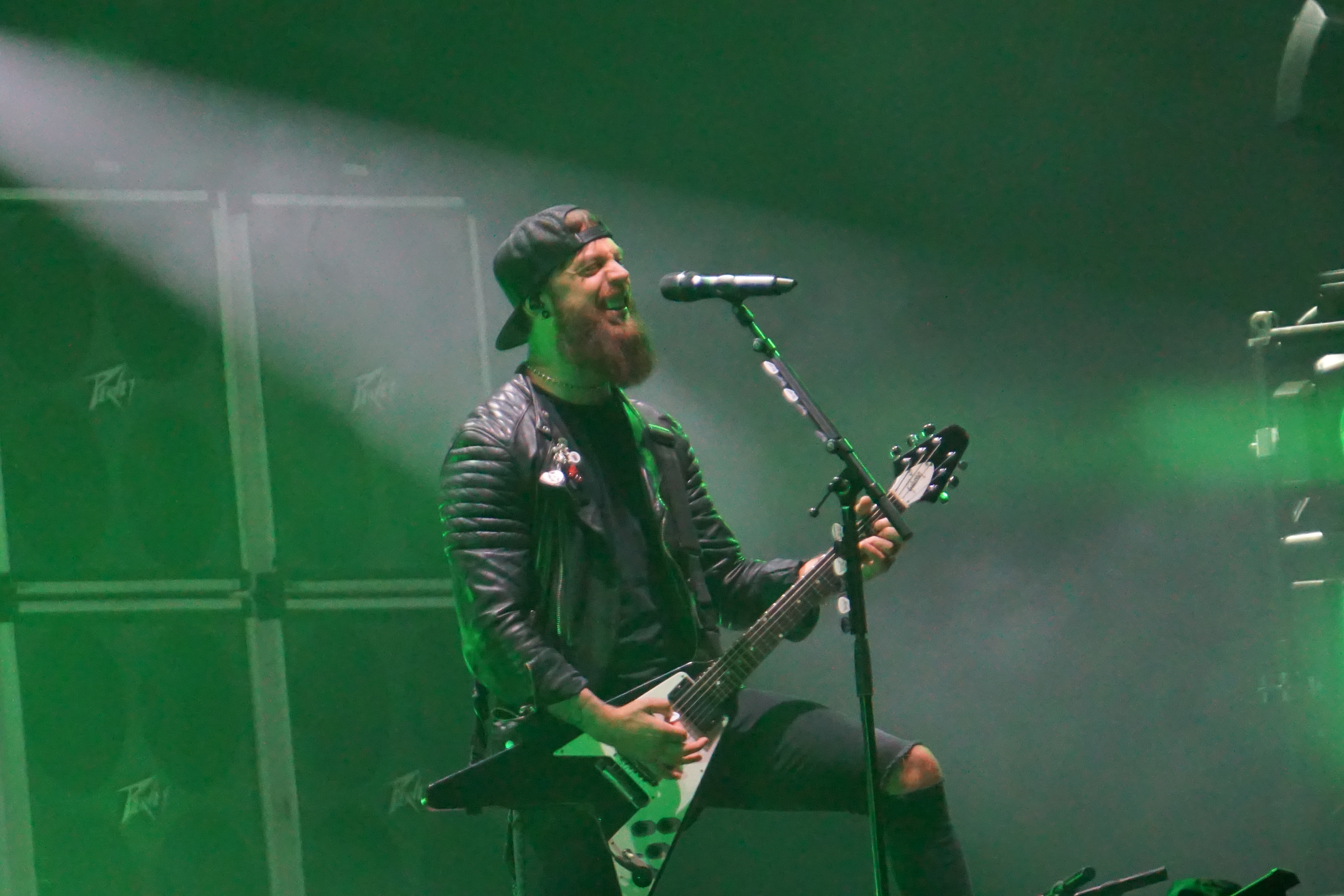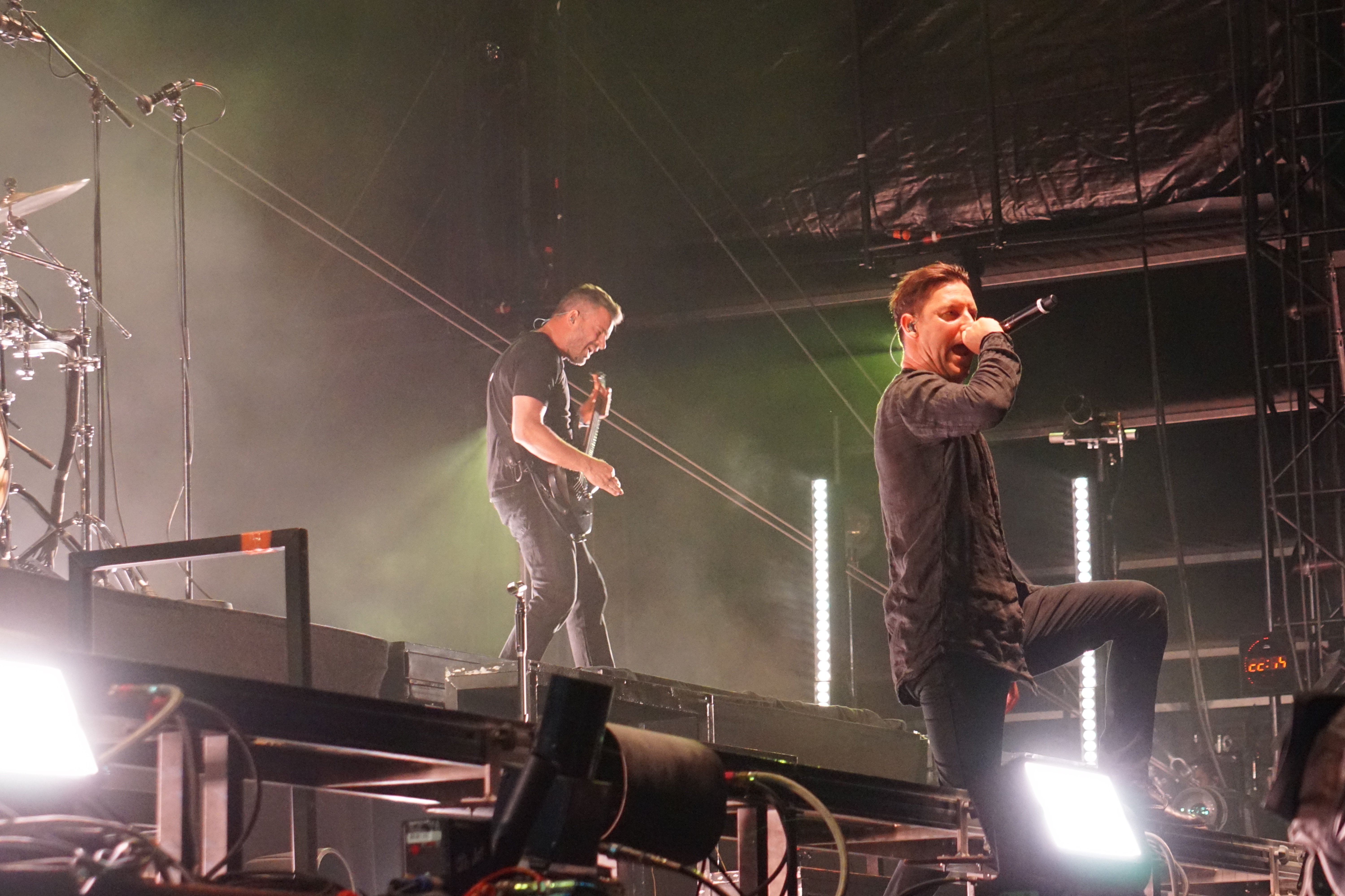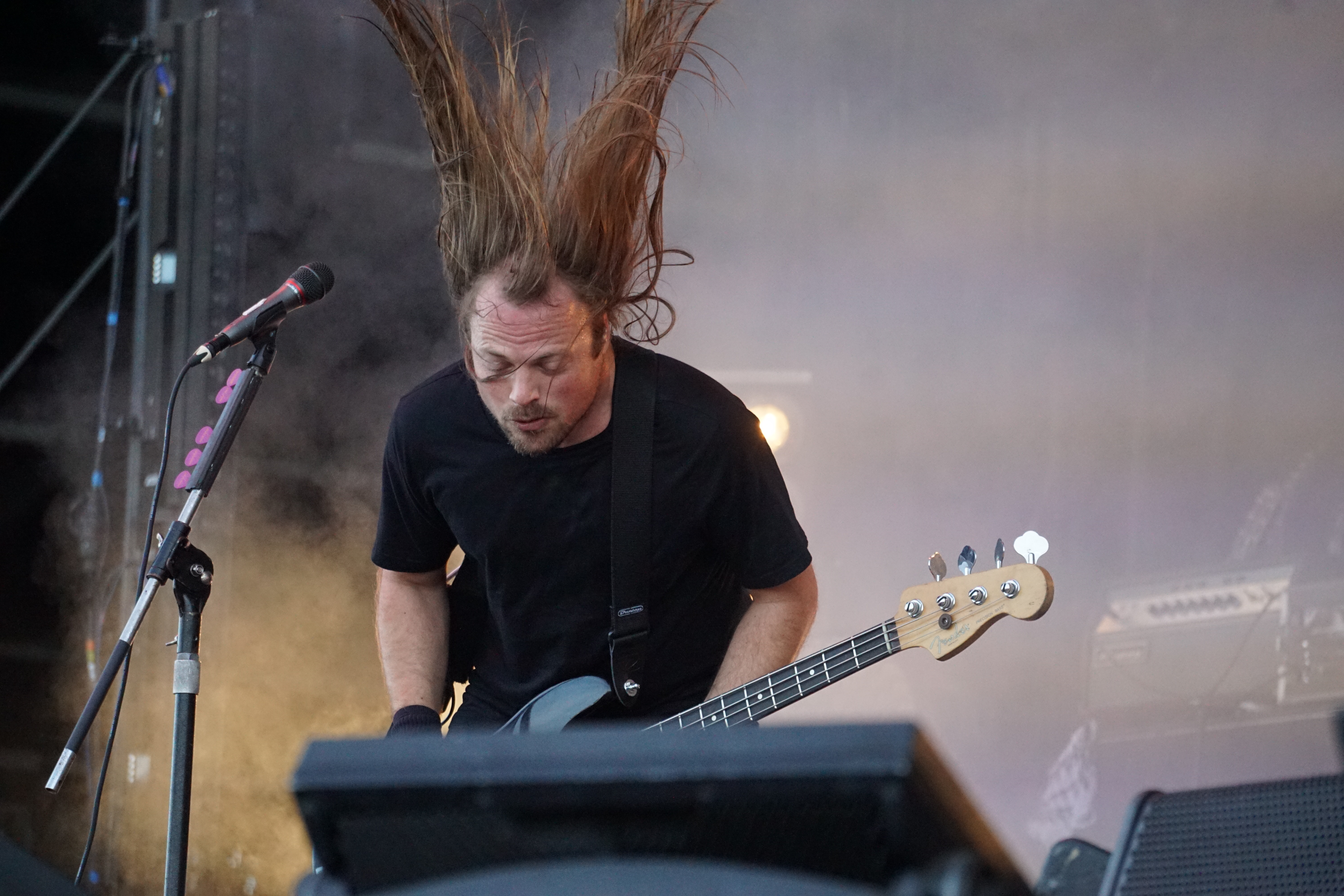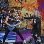 Mit BULLET FOR MY VALENTINE wartete nun unser letzter Gig des Festivals auf uns. Alleine dafür hatten wir uns entschlossen, nicht schon mittags nach Hause zu fahren. Die Waliser hatten zwar zuletzt mit “Gravity“ eine eher schwache Scheibe auf dem Markt, bei der Hitdichte, die die Band aber im Backkatalog hat, störte das wohl Niemanden. Gut man hätte jetzt nicht direkt mit zwei Tracks aus diesem Werk anfangen müssen, aber so hatte der ordentliche Auftritt der Jungs wenigstens Steigerungspotential. Als dann „Your Betrayal“ angestimmt wurde sprang dann zügig der Funke auf das Publikum, das sehr Mädelslastig war, über. Die Bewegung, die den Protagonisten auf der Bühne ein wenig fehlte, machte die nun überaus aktive Menge laut mitsingend wieder wett. Ich hatte die in ihren Anfangstagen mal gesehen, als sie noch keinen Bartwuchs hatten, da gingen die ab, wie Schmitz Katze! Jetzt trägt Matthew Tuck Bart und das Ganze wirkt ziemlich statisch...ist aber jammern auf hohem Niveau. Wie bereits erwähnt , war der Sound bisher perfekt, jedoch kam es uns heute ein wenig leise vor, störte uns aber nicht weiter, da wir weit genug vorne waren, ging aber gut ohne Ohrstöpsel. Die Lightshow wirkte überaus stimmig und war einfach schön anzuschauen. Im letzten Drittel der Show wurde dann nochmal alles raus gehauen. Die Venomtracks: “You Want a Battle? (Here's a War)“ und “No Way Out“ gefolgt vom Oberkracher “Tears Don't Fall“ brachten dann sogar Lahme zum Gehen. Mit dem IMAGINE DRAGONS Cover “Radioactive“ (vom Band) entließ man alle Anwesenden zufrieden in die Nacht. Es hat sich doch noch für uns gelohnt zu bleiben.