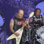 Die Füße meldeten sich wieder und verlangten nach Entlastung, mental waren wir aber noch so geflasht, dass uns noch der Sinn nach einem musikalischen Absacker stand. Vor der obligatorischen Nachtmahlzeit, genossen wir noch eine gute halbe Stunde vom HAMMERFALL Set, die ihre Sache im übrigen sehr gut machten.