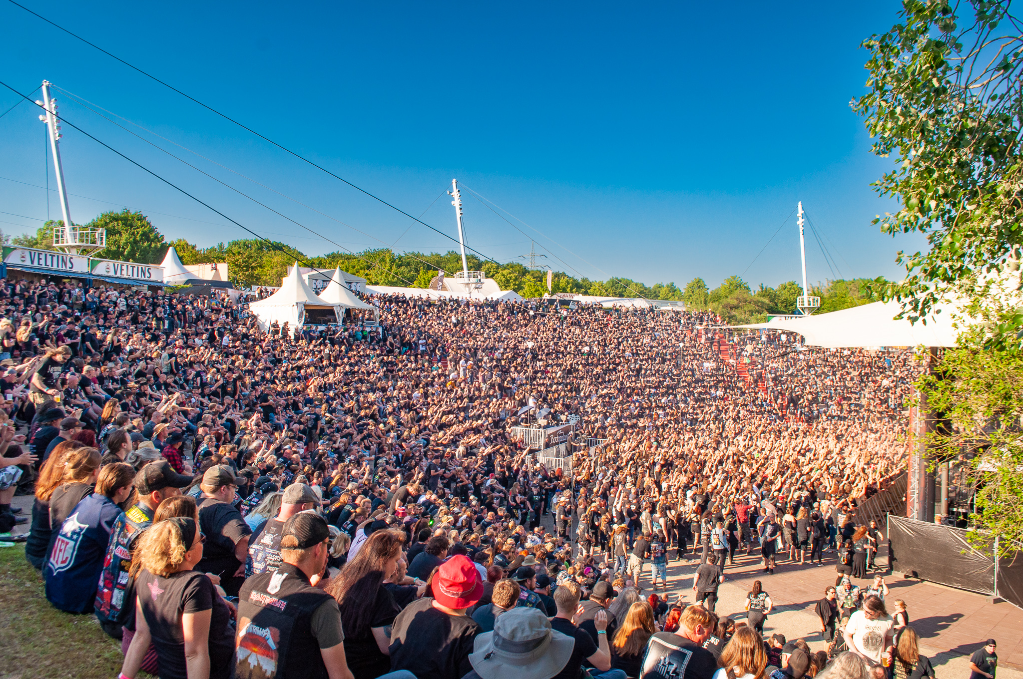 Mit Recht hat sich das Rock Hard Festival zu einer festen Größe etabliert. Jahr für Jahr pilgern Metaler an Pfingsten von weit und breit ins Ruhrgebiet und frönen hier dem gepflegten Krach. Das Publikum schätzt nicht nur das abwechslungsreiche Line-up, sondern vor allem die entspannte Atmosphäre im Gelsenkirchener Amphitheater direkt am Rhein-Herne Kanal. Nach der Corona-Zwangspause sind die Leute heiß auf Live-Musik und heiß auf die beginnende Festivalsaison. Und wo kann man den Festivalsommer besser starten, als auf dem charmanten Rock Hard Festvial: