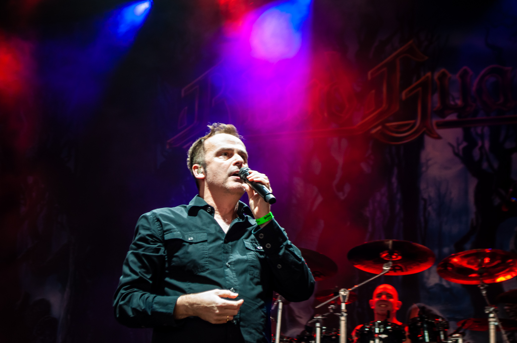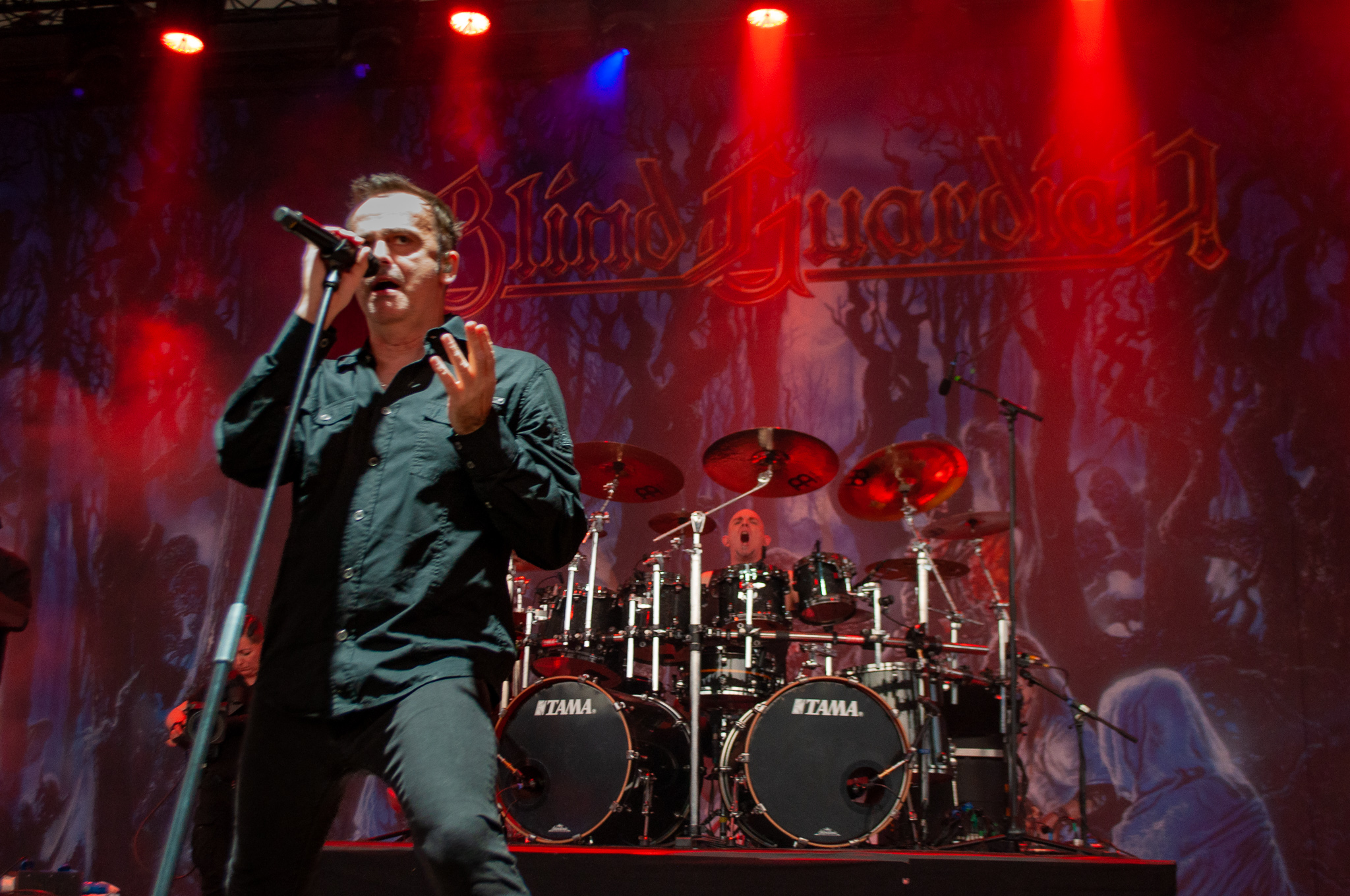 Pünktlich um 21:30 Uhr ertönt das Schlachten-Intro von „Into the Storm“: Es ist Zeit für den Samstags-Headliner BLIND GUARDIAN! Das Publikum streckt zu „Welcome to Dying“ die Fäuste empor und singt textsicher „Nightfall”. Hansi Kürsch beweist auf ein Neues seine eingeschränkten Entertainer-Qualitäten: Steif läuft er von rechts nach links und beglückt uns mit langsam gesprochenen Ansagen wie „Rock Hard – ihr seid vorbereitet und wir sind auch vorbereitet - darauf lässt sich durchaus aufbauen“. Aber Schwamm drüber! Weiter geht’s mit „Time Stands Still (At the Iron Hill)” und dann haben BLIND GUARDIAN eine Überraschung! Anlässlich des 30-Jährigen Jubiläums ihrer vierte Platte „Somewhere Far Beyond“ spielen sie das Album heute zum ersten mal komplett live. Die Jubiläumstour musste verschoben werden und steht für September auf dem Programm. Tracks wie „Time What Is Time”, „Journey Through the Dark”, “Ashes to Ashes” sind super Live-Songs, die Ballade “Black Chamber” wird zum allerersten mal live gezockt. Das Publikum dankt es der Band mit vielen „Guardian – Guardian“-Sprechchören. Natürlich wird vor allem “The Bard's Song - In the Forest” lautstark zelebriert und von Anfang bis Ende mitgesungen, bevor „Valhalla - Deliverance: Why've you ever forgotten me“ noch lange nachhallt und nach „Mirror Mirror“ schließlich Schicht im Schacht ist. In Sachen Spielfreude überzeugt vor allem Drummer Frederik Ehmke.