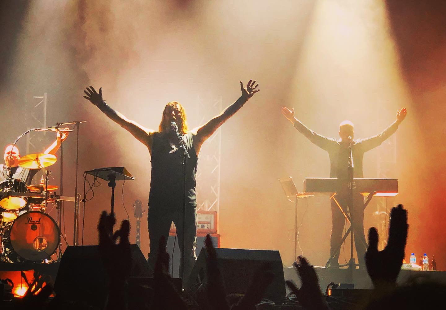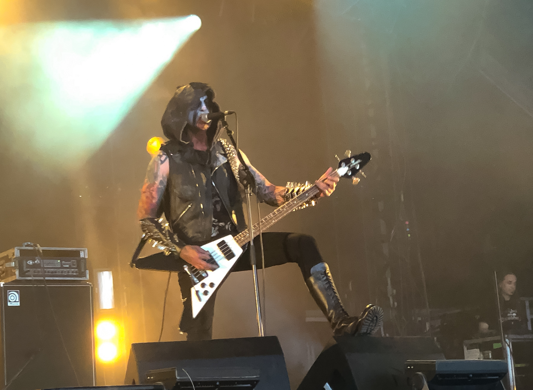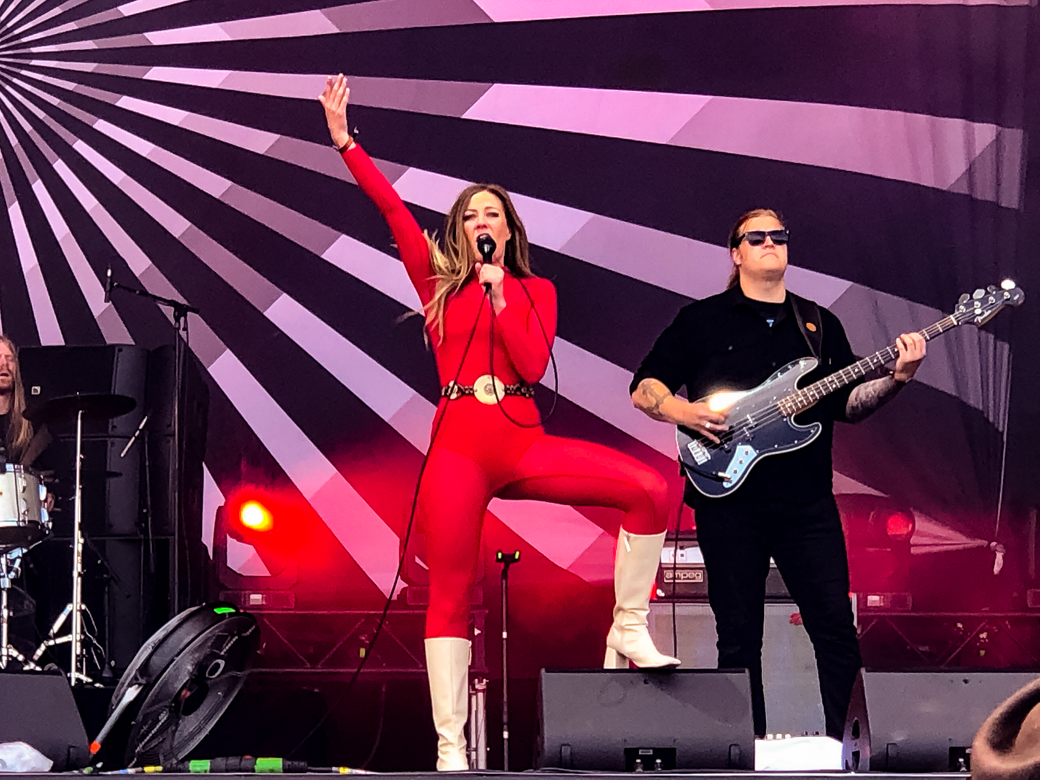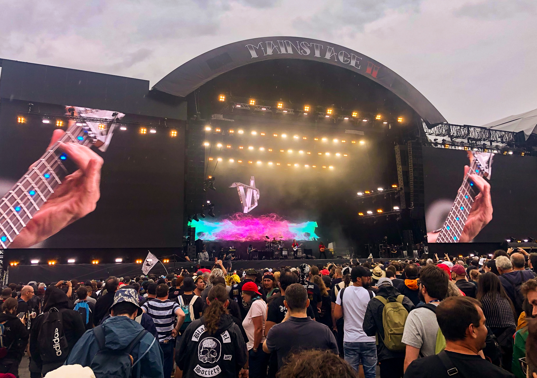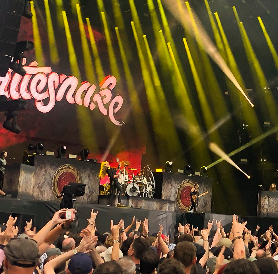 Heute wird den Leuten viel Bombast geboten: Bands der Marke NIGHTWISH mit Frauengesang und einem lieblichem Keyboardteppich stehen auf dem Programm. Gegen 16 Uhr begeistern die Schweizer Folk Metaler ELUVEITIE die zahlreichen Zuschauer vor der Mainstage 2. Acht Leute und allerhand Instrumente sind auf der Bühne und Sänger Chrigel Glanzmann (oder ist es Torsten Sträter?) führt durch das keltisch angehauchte Liedgut („A Rose of Epona“, „Làppel des Montagnes“...). Die Sonne ist zurück in Clisson und das ist gut so! Nebenan geht’s weiter mit MYLES KENNEDY. Er ist inzwischen ohne SLASH unterwegs und spielt Hardrock mit Einflüssen von Country und Singer/ Songwriter und beweist wiedermal, dass er ein guter Musiker und Sänger ist. Heute konzentriert er sich vor allem auf Songs des 2021er Albums „The Ides of March“. EPICA starten ihr Set, ich nehme reis aus und komme zu AIRBOURNE zurück: Sie sind „Ready to Rock“. Es ist herrlich mit welcher Spielfreude die Australier zu Werke gehen. Joel O’Keeffe zeigt sich gewohnt bewegungsfreudig und ist gut drauf. Die Bühne ist in Rubinrot getaucht, Bier fliegt durch die Luft und es wird geschwitzt: „“Breakin`Outta hell“, „Raise the Flag“, „Runnin`Wild“… .