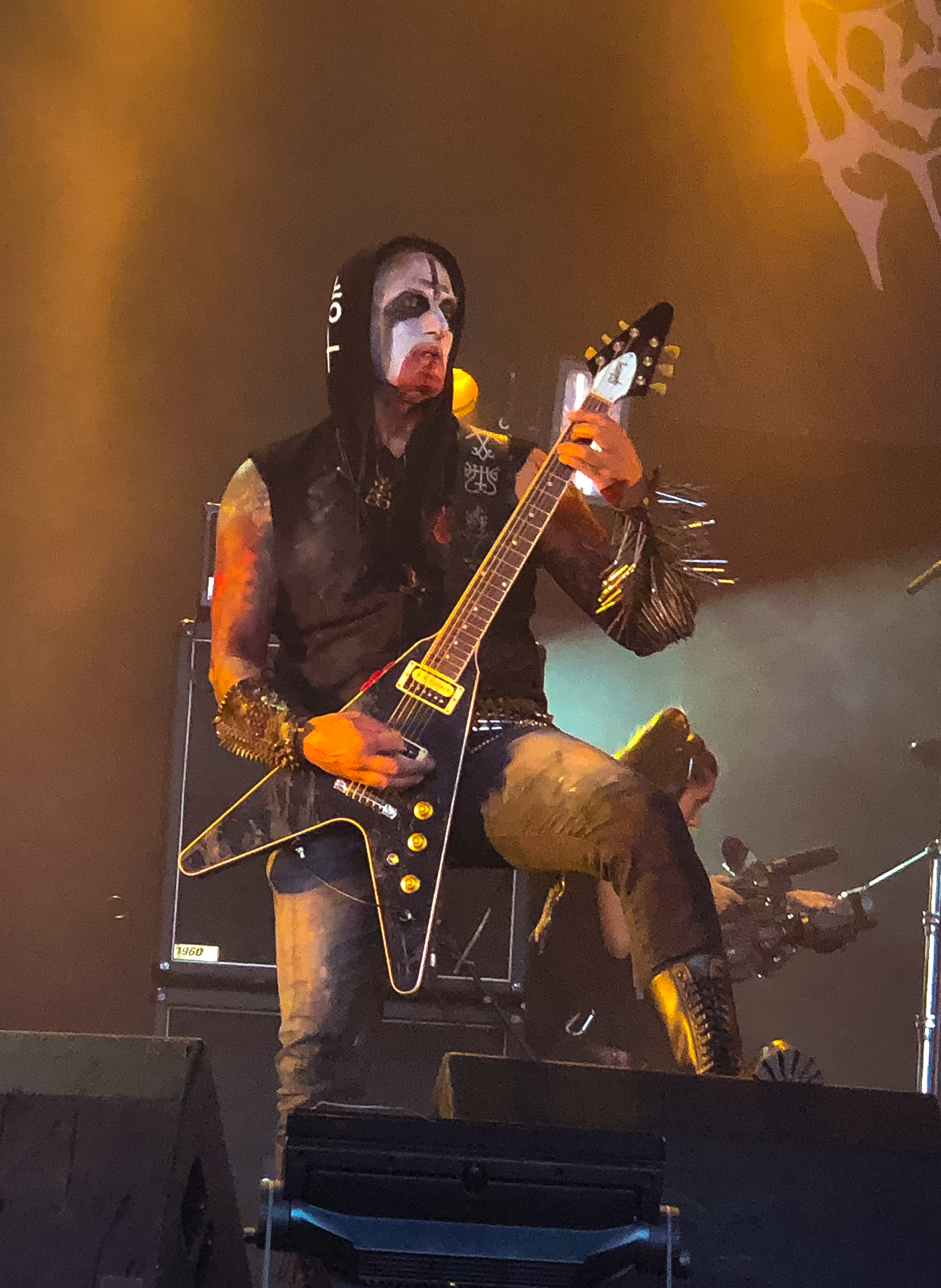 UGLY KID JOE waren für mich eine entfernte Jugenderinnerung, aber die Truppe aus Kalifornien gibt’s immer noch: gealtert aber immer noch frisch. „Cat's in the Cradle“ und „Everything About You“ kennt wahrscheinlich fast jeder, einige Songs haben Funk-Einschlag. Als letzter Song wird noch „Ace of Spades“ gecovert. BULLET FOR MY VALENTINE sind bestimmt nicht schlecht, aber ihre Mucke hat für mich persönlich zu viel Metalcore und ist zu glatt und süßlich. So eignet es sich heute eher als Hintergrundbeschallung. Viele werden das anders sehen, ihr Publikum haben Matthew Tuck, Michael Paget und Co. alle Male im Griff. Da hilft nix, es muss böser und grobschlächtiger werden und im Zelt findet sich da genau das Richtige: ARCHGOAT. Die Gebrüder Angelslayer und Ritual Butcherer reisen aus Finnland mit ihrer neuen Scheibe „All Christianity Ends“ im Gepäck an und singen nicht von Frieden und Gänseblümchen. Bei ARCHGOAT wird aber keineswegs durchgeknüppelt, sie nehmen immer wieder gekonnt das Tempo raus. Das rüpelhaft gegrowlte „Penis Perversor“, das kratzige „Rise of the Black Moon” und schließlich “Hammer of Satan” vom 2006er Album „Whore of Bethlehem“ gehen gut. Sicherlich alles etwas deftig, aber nicht verkehrt. DESTRUCTION ist eine der ältesten bis heute bestehenden deutschen Thrash Metal-Bands und ziehen auch heute Abend viele Leute an. „Schmier“ und Konsorten heizen der Meute mit Tracks wie „Curse the Gods“ und „Bestial Invasion“ ein. Nun ist Zeit für die Gruppe mit Kapuzen: MGLA entern die Bühne. Ihr Black Metal ist zwar klassisch und roh, aber trotzdem melodiös gehalten. Es ist wirklich beeindruckend wie MGLA mit geringen Mitteln tolle Melodien erzeugen und die Moll-Gitarrenleads Atmosphäre aufkommen lassen. „Age of Excuse“ und „Exercises in Futility“ bestimmen das Set der Polen. Ihr Auftreten ist puristisch reduziert und bewusst statisch. Gestern bei GUNS`N`ROSES war es voll, heute bei METALLICA ist es sehr voll! Also heißt es: Durchdrängeln vor Mainstage 1, die für METALLICA umgebaut wurde und seitlich auf Mainstage 2 SABATON ansehen. Die Schweden erhalten viel Applaus. Ich würde ihr Songmaterial wie „Carolus Rex“, „Swedish Pagans“ oder „Ghost Division“ vorsichtig als Kriegs-Schlager Metal bezeichnen, aber auf einem Festival kann man sich das schon mal reinziehen. Um 23:05 Uhr ist es soweit und METALLICA legen mit „Whiplash” los, guter Start: geiler Nackenbrecher. “Creeping Death“, „Enter Sandman“ und die ersten richtigen Überraschungen: „Harvester of Sorrow“, „Wherever I May Roam” und „No Leaf Clover“ von Klassik-Album „S&M“. Das muss man Hetfield, Ulrich, Hammett und Trujillo lassen: sie stellen ihre Setlist immer wieder um. Alles was Rang und Namen hat wird rausgeholt: „For Whom the Bell Tolls”, „Seek & Destroy“…. Der Zugabenblock wird mit „Damage, Inc.“ eingeleitet und die Amis schließen mit „One“ und „Master of Puppets”. Ein cooler Auftritt, es war jedoch ein extremes Gequetsche vor der Bühne. Es folgt ein großes Feuerwerk und morgen geht’s Heimwärts. Ein tolles Festival mit entspanntem Klientel, wo die Musik im Mittelpunkt steht! Merci Hellfest, c'était formidable!