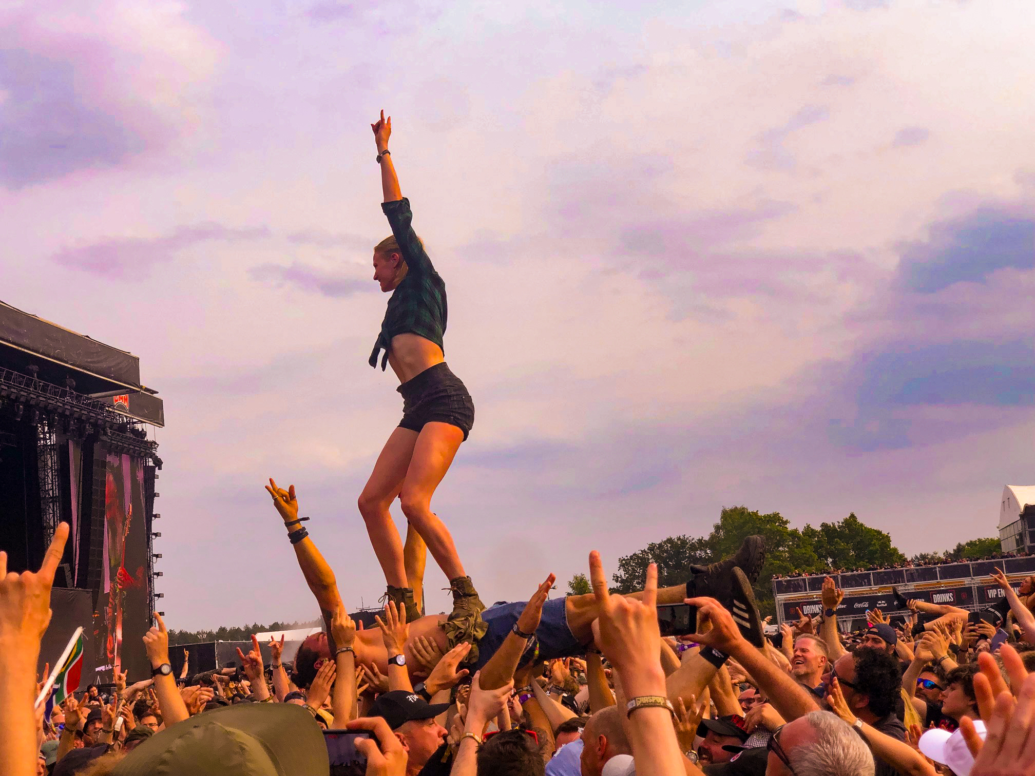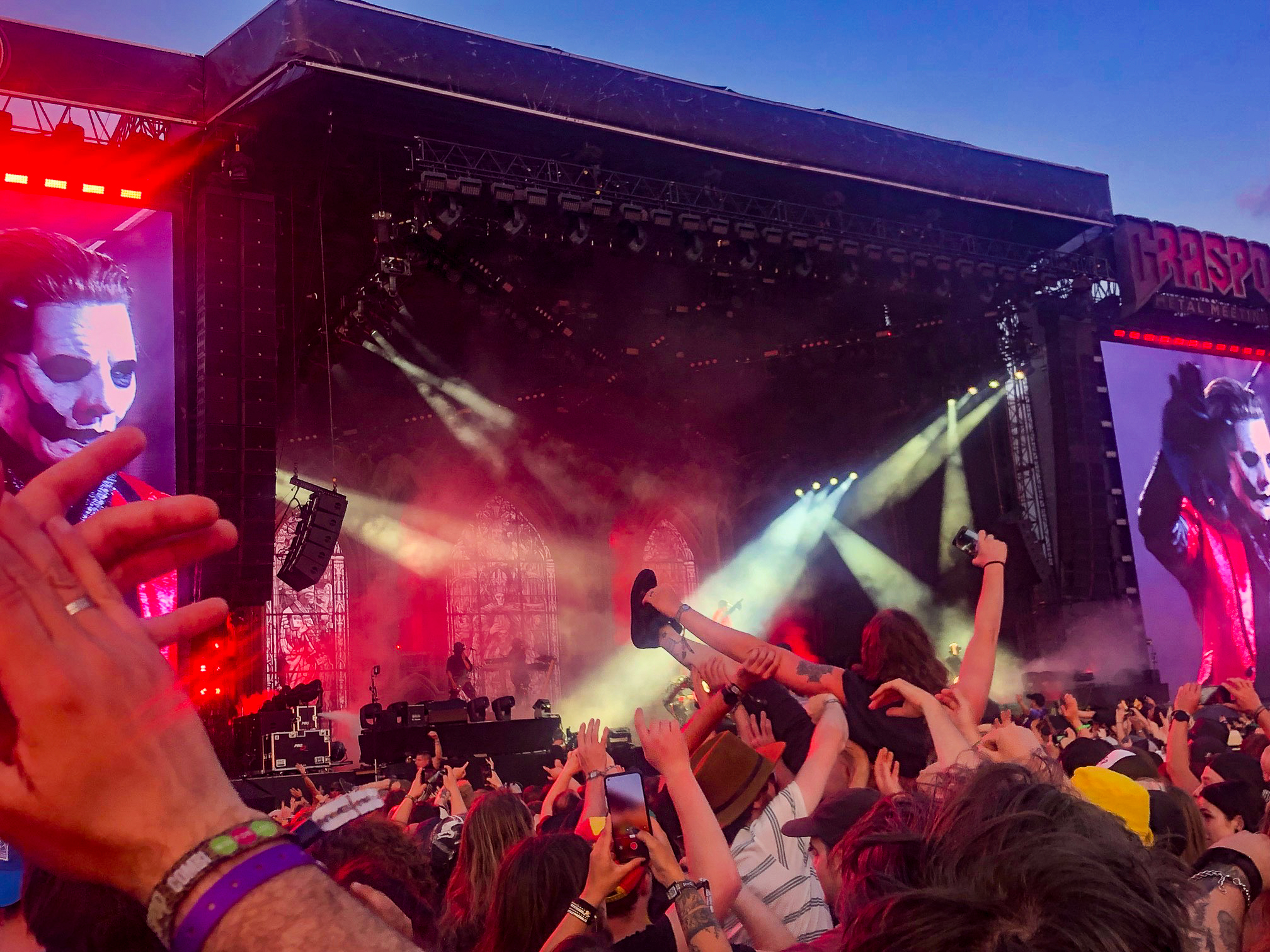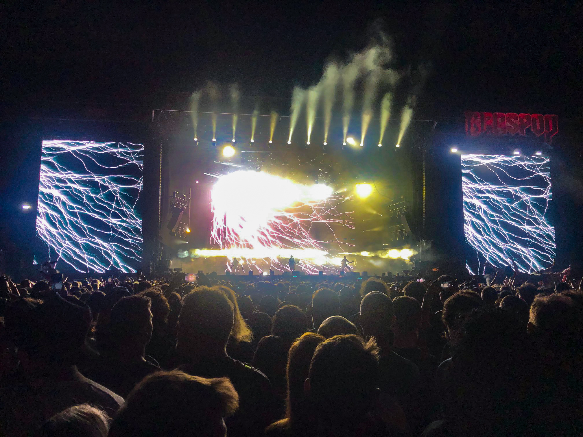Eigentlich wollte ich zu SOLSTAFIR, entscheide mich aber kurzfristig dem PARKWAY DRIVE-Gig beizuwohnen. Die Australier sind eine der führenden Größen der Metalcore-Szene und haben heute Abend in Dessel Headliner-Status. „Prey“, „Vice Grip“, „Bottom Feeder“: Partytaugliche Mucke für ein großes breites Publikum. Zu „Idols and Anchors“ nimmt Frontmann Winston McCall ein Bad in der Menge. Die Show ist sehr auf den Sänger zugeschnitten, mitunter wirkt das etwas selbstverliebt. Aber was solls, es ist ein unterhaltsames kurzweiliges Konzert! Um 0 Uhr folgen SLIPKNOT, beim Opener „The Blister Exists“ schwimmt der Sound arg, aber das kriegen die Soundleute bald in den Griff. Percussion-Clown Shawn Crahan ist nicht mit dabei, er pflegt seine erkrankte Frau. Corey Taylor und Co. haben massenweise Hits am Start: „Psychosocial“, „The Devil in I“, „People = Shit”, “Wait and bleed”. Das Schlagzeug scheppert ordentlich! Ich kann die ganze Action nicht genügend wertschätzen: es ist nach 1 Uhr, der Tag war lang und hängt mir in den Knochen. Zwischenzeitlich nehme ich sogar auf der Tribüne Platz, die hinter dem Publikum der South Stage aufgebaut ist (spätestens jetzt fühle ich mich alt). Nach „Duality“ und „Spit It Out“ ist Ende im Gelände und die Massen strömen Richtung Campingplatz und Parkplatz. Für mich heißt es am Sonntag-Morgen Abschied nehmen und abreisen. Den Festivalbesuchers wird aber auch heute wieder viel geboten: AVATAR, INSOMNIUM, THE HALO EFFECT, HELMUT LOTTI (Uups), HOLLYWODD VAMPIRES, KREATOR, MÖTLEY CRÜE, DEF LEPPARD und und und. Insgesamt spielten über 150 Acts beim diesjährigen Graspop.