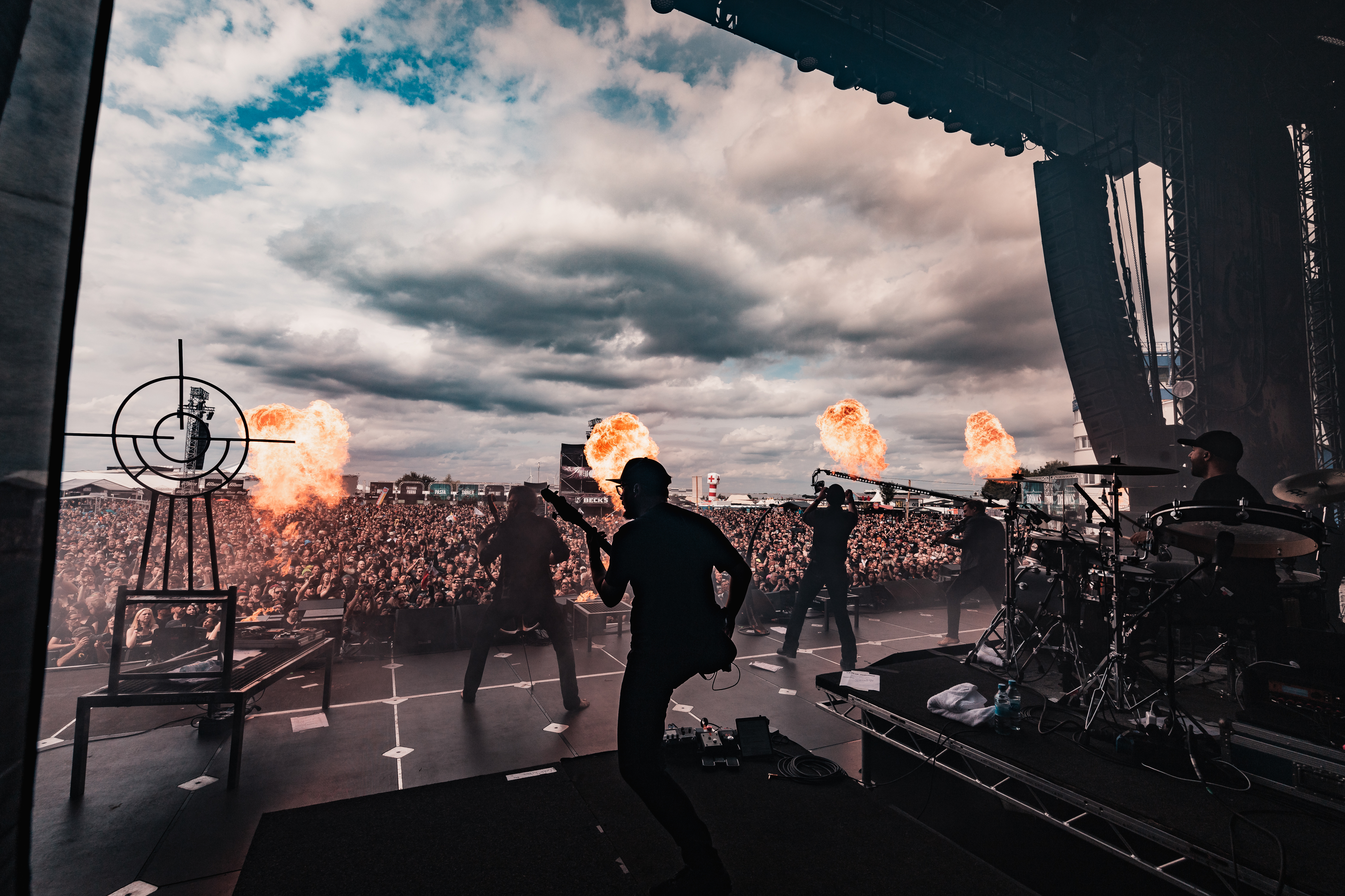Allmählich begannen sich zunehmende Verschleißerscheinungen zu zeigen, sowohl auf dem Infield als auch auf dem Mittelaltermarkt saßen zunehmen mehr Leute auf den freien Flächen verteilt am Boden, darum bemüht, in der Umbaupause noch einmal Energie für den Festival-Endspurt zu sammeln. Um 21 Uhr schließlich fiel er Startschuss für WITHIN TEMPTATION. Sharon den Adels glockenklare Stimme, die druckvollen Gitarren und die begleitende Pyrotechnik schufen ein beeindruckendes Klang – und Bühnenbild, dass die meisten Besucher dann doch noch ein Mal auf die Füße brachte. Die Niederländer nutzten die Gelegenheit, um sich beim Song „Raise Your Banners“ Flagge schwingend mit dem Freiheitskampf der Ukraine solidarisch zu erklären und rockten sich durch ein tolles Set von „Our Solemn Hour“ über „Stand My Ground“, „The Reckoning“ und „Angels“ bis zu „Mother Earth“ als krönendem Abschluss. Ein klasse Finale, dessen einziger Wermutstropfen daraus bestand, dass das M ´era Luna damit für dieses Jahr schon wieder vorbei war.