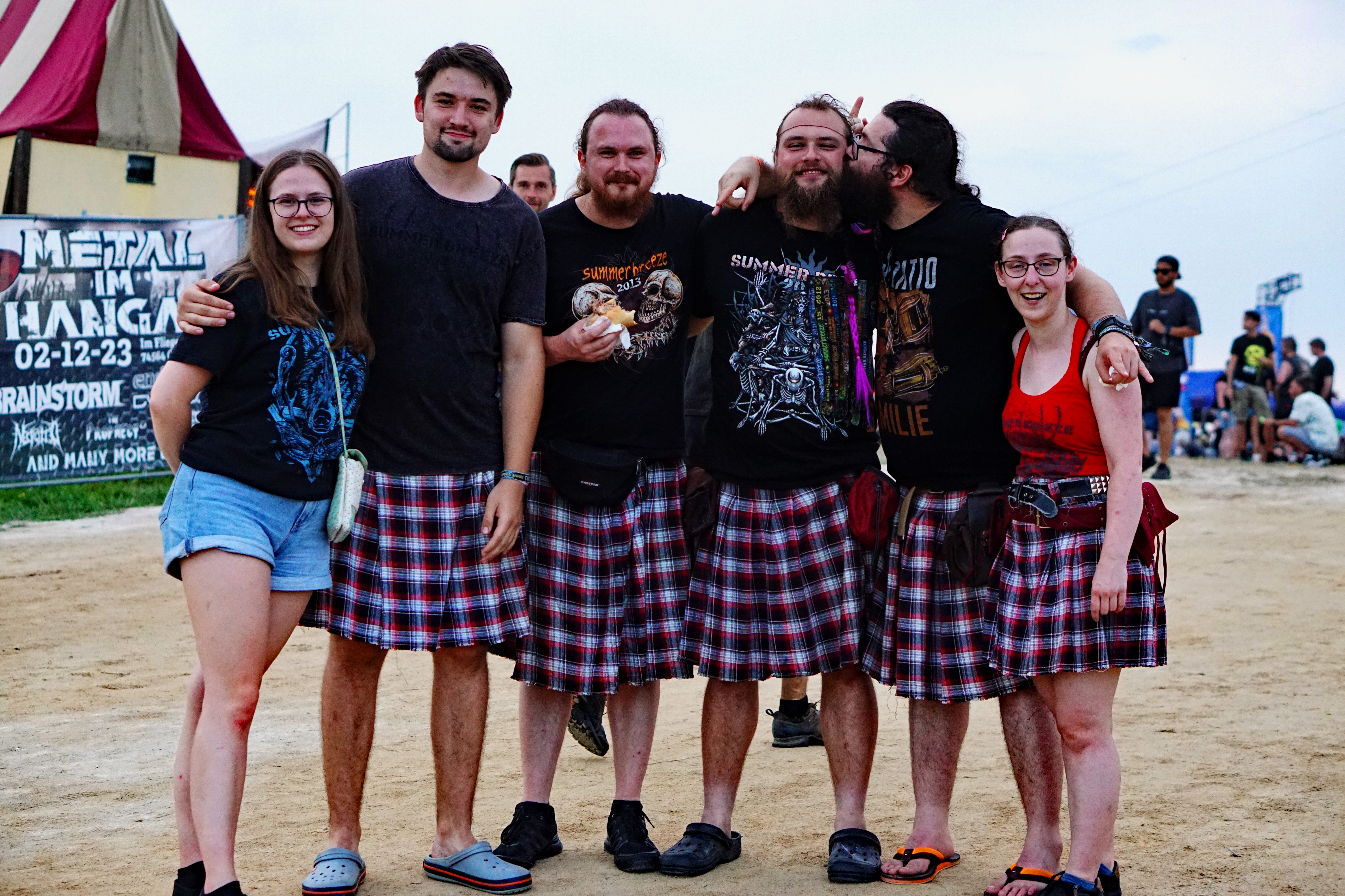 Die ersten drei Tage vergingen wieder einmal wie im Flug und heute ist schon Abreisetag, folglich hieß es nach dem Frühstück erst mal in Ruhe abbauen und einpacken. Da wir für heute, wie bereits erwähnt, eine Einladung an diversen Ständen auf dem Gelände hatten, wurde alles vergrillt, was noch in der Kühlbox war. Beim Blick auf die Running Order realisierten wir, daß heute kein Metal Yoga angeboten wurde, wo wir es doch gerade jetzt so nötig gehabt hätten. Apropos nötig: Duschen wäre auch mal eine gute Idee. Allerdings war das mit der Wassertemperatur bisher nicht gerade ein Spaß. Das Wasser in den Duschen war in den vergangenen drei Tagen nämlich so heiß, daß es nur den aller härtesten unter uns möglich war, sich auf diese Weise zu reinigen. Bei Temperaturen oberhalb der 30°C hätten die meisten wohl auch eine kalte Dusche akzeptiert.