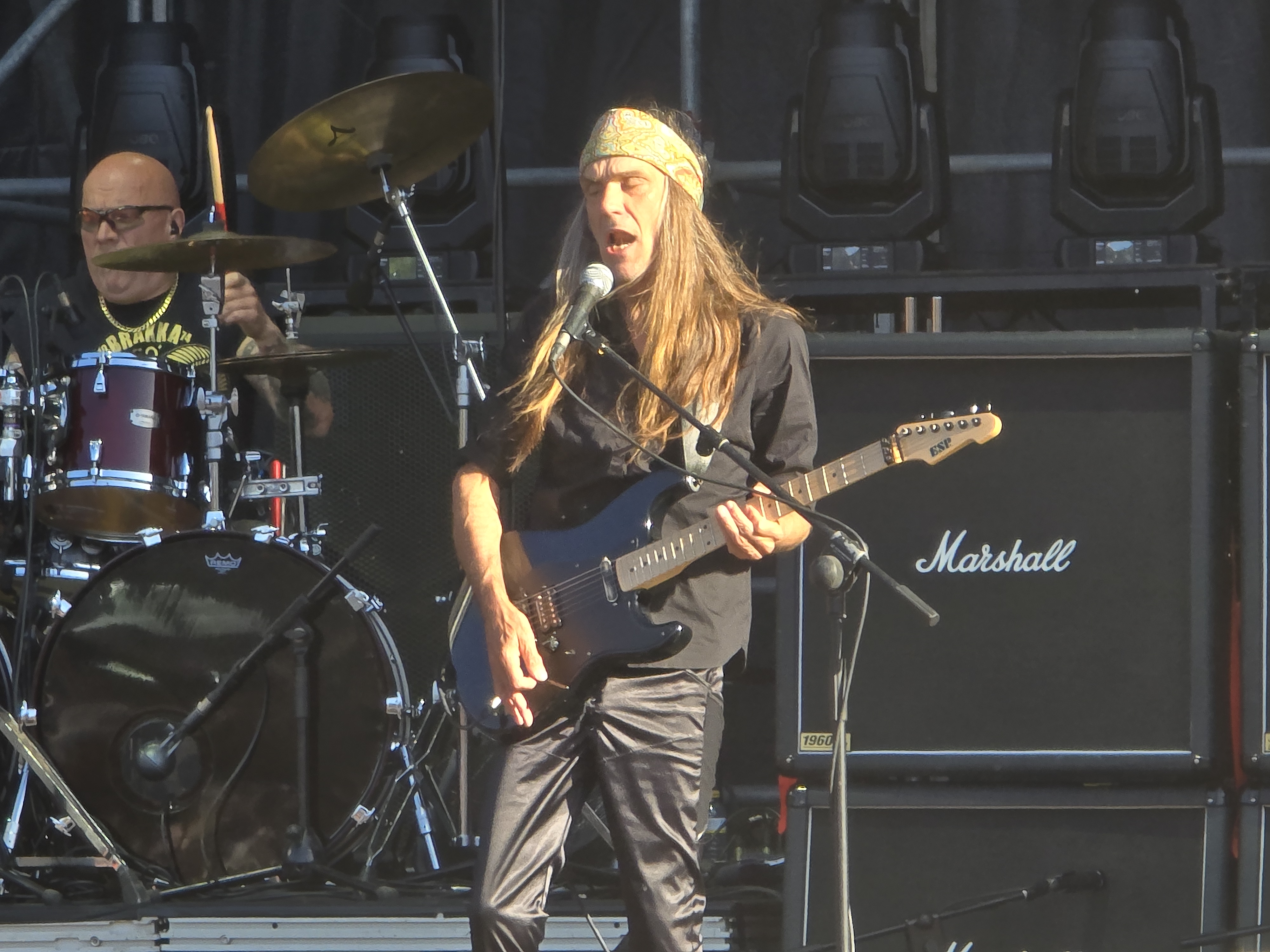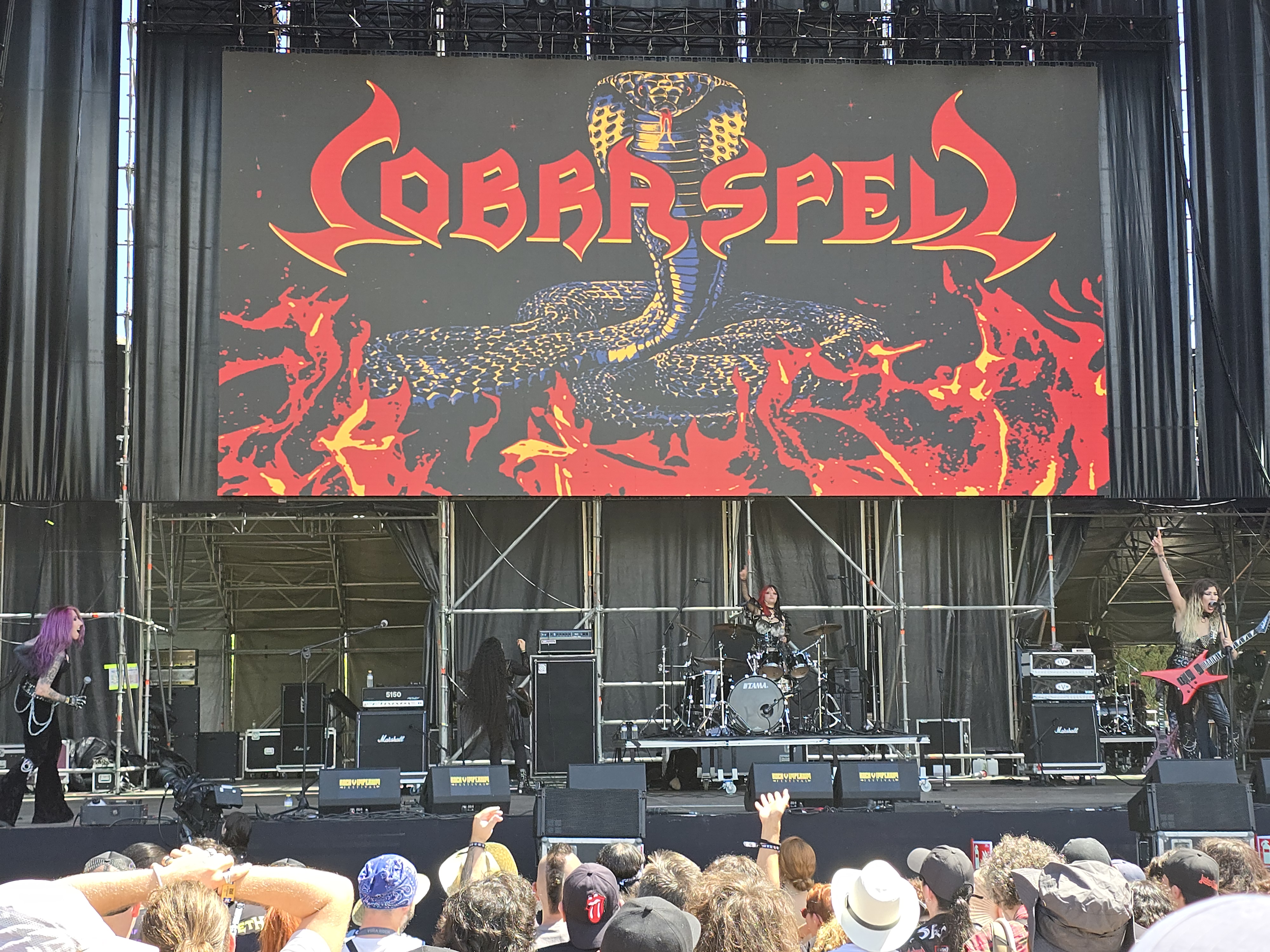Auf zur letzten Runde. Tag 4 beginnt mit den Ladies von COBRA SPELL. Es freut mich, dass die anfänglichen Widrigkeiten mit den vielen Line-Up Wechseln nun wohl endgültig der Vergangenheit angehören und Sonia mit ihrer Truppe immer enger zusammenwächst. Der partytaugliche Hard Rock an der Grenze zum Meldic Metal ist natürlich wie gemacht für ein Open Air und die Mädels sind ständig in Bewegung und machen viel Alarm. Dass die Texte manchmal ein bisschen Fremdscham hervorrufen, sei an dieser Stelle verziehen, denn live macht das einfach extrem gute Laune. Mit dem EP Hit „Addicted To The Night“ verabschiedet man sich standesgemäß.