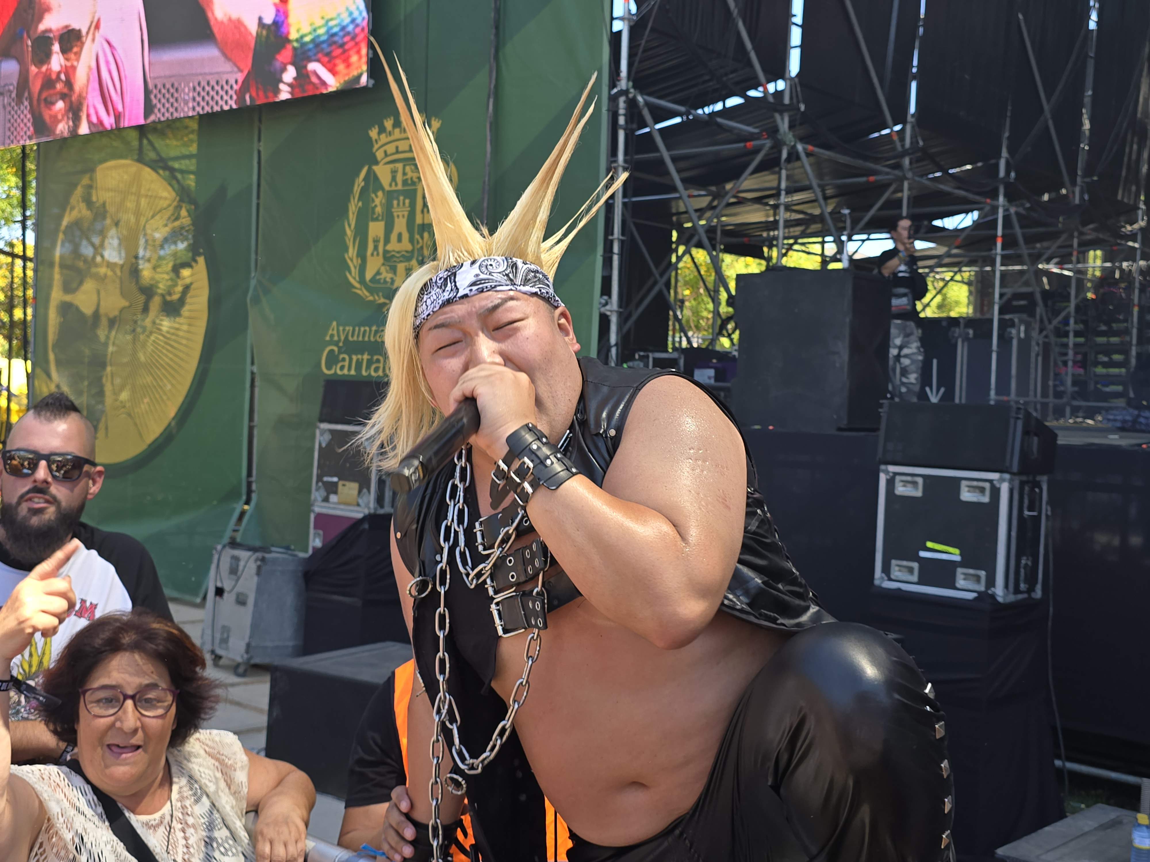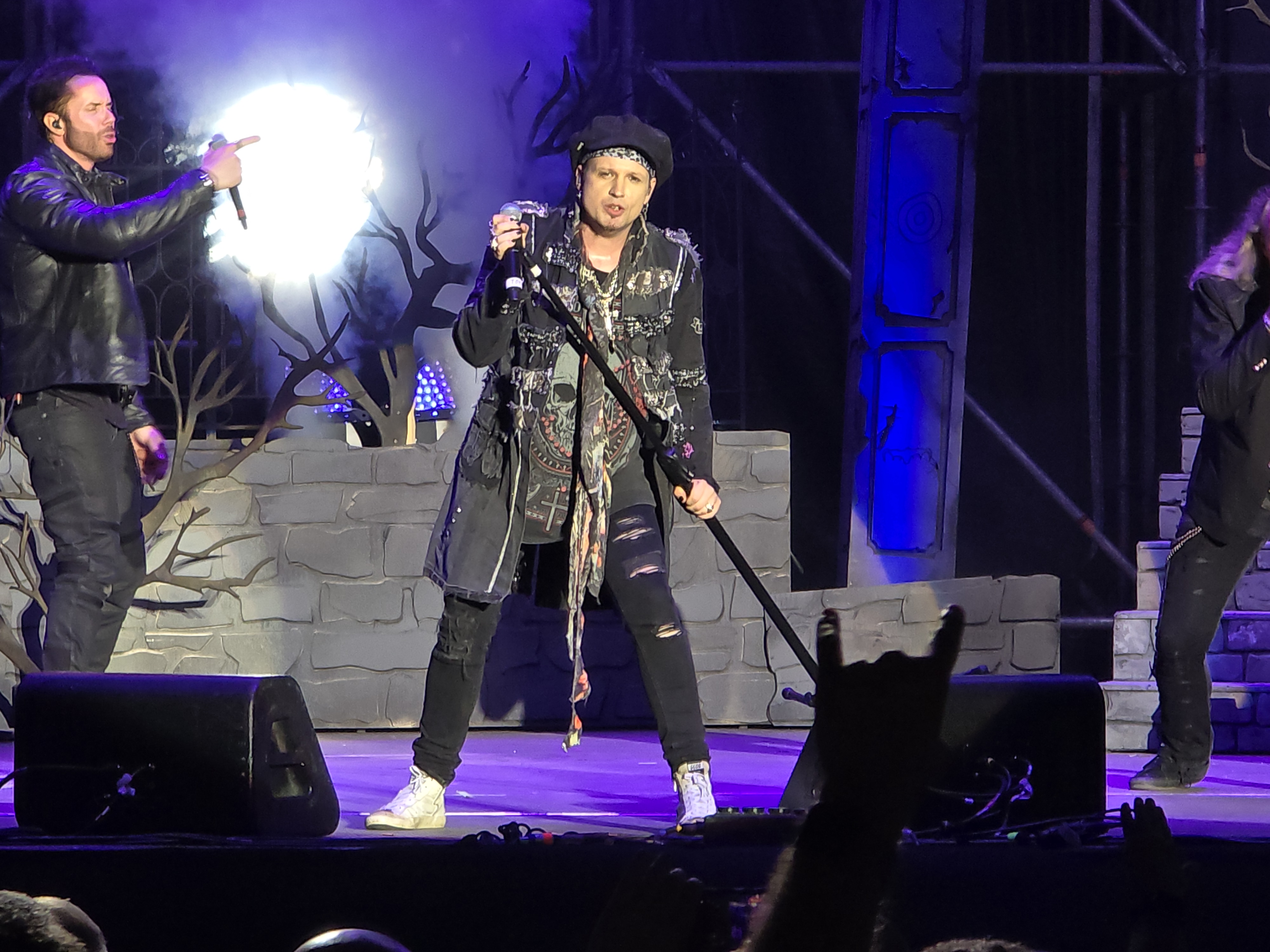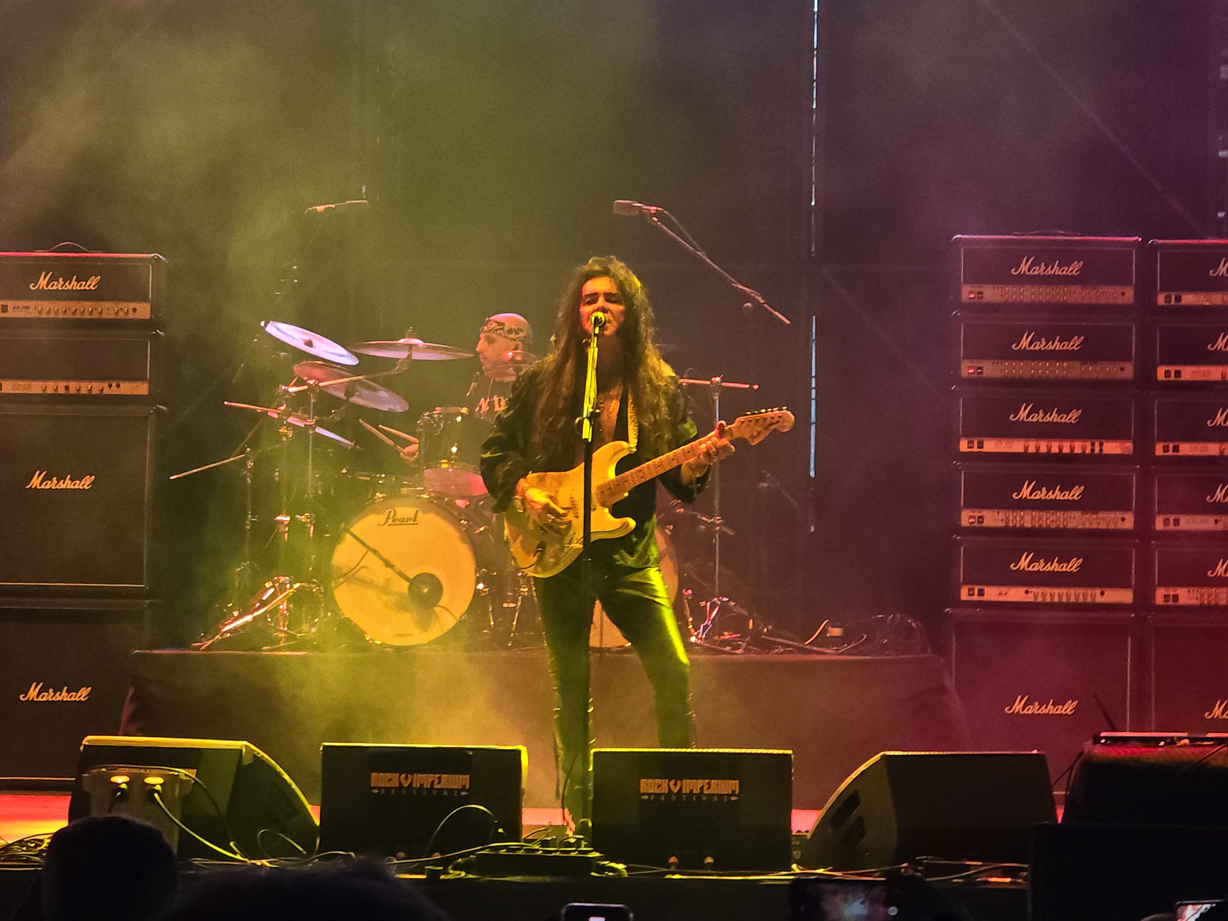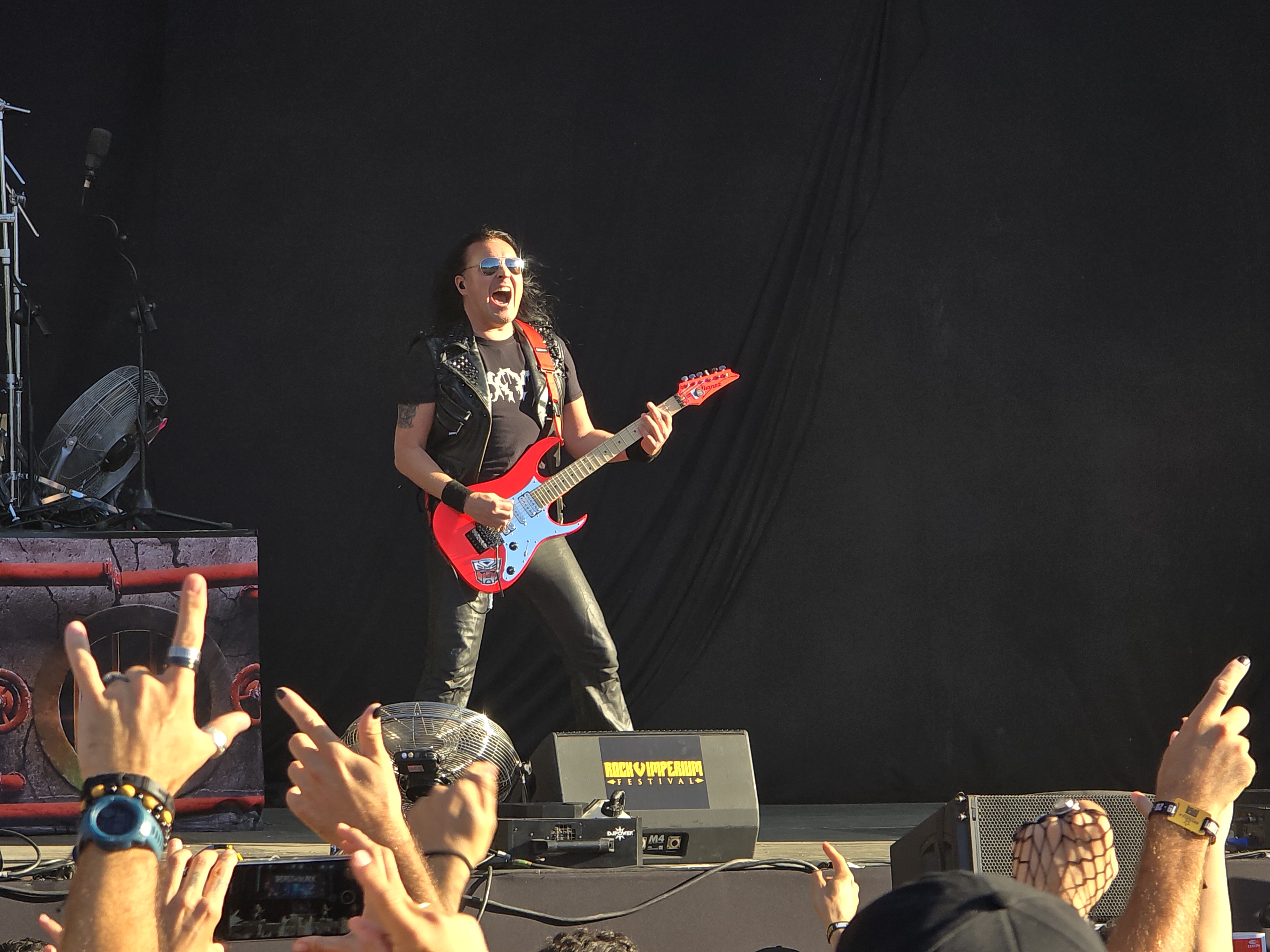 Vom die spanische Szene spaltenden TETE NOVOA bekomme ich das letzte Drittel mit. Der aktuelle SARATOGA Frontmann verbindet Hard Rock / Heavy Metal mit einer poppigen Darbietung. So gibt es Tänzerinnen, eine Choreo und ein ausgefeiltes Bühnenbild. Das kann man jetzt als Verrat am Metal sehen oder als das Verlassen ausgetretener Pfade. Ich finde es unterhaltsam und freue mich besonders über das ÁNGELES DEL INFIERNO Cover „Maldito Sea Tu Nombre“