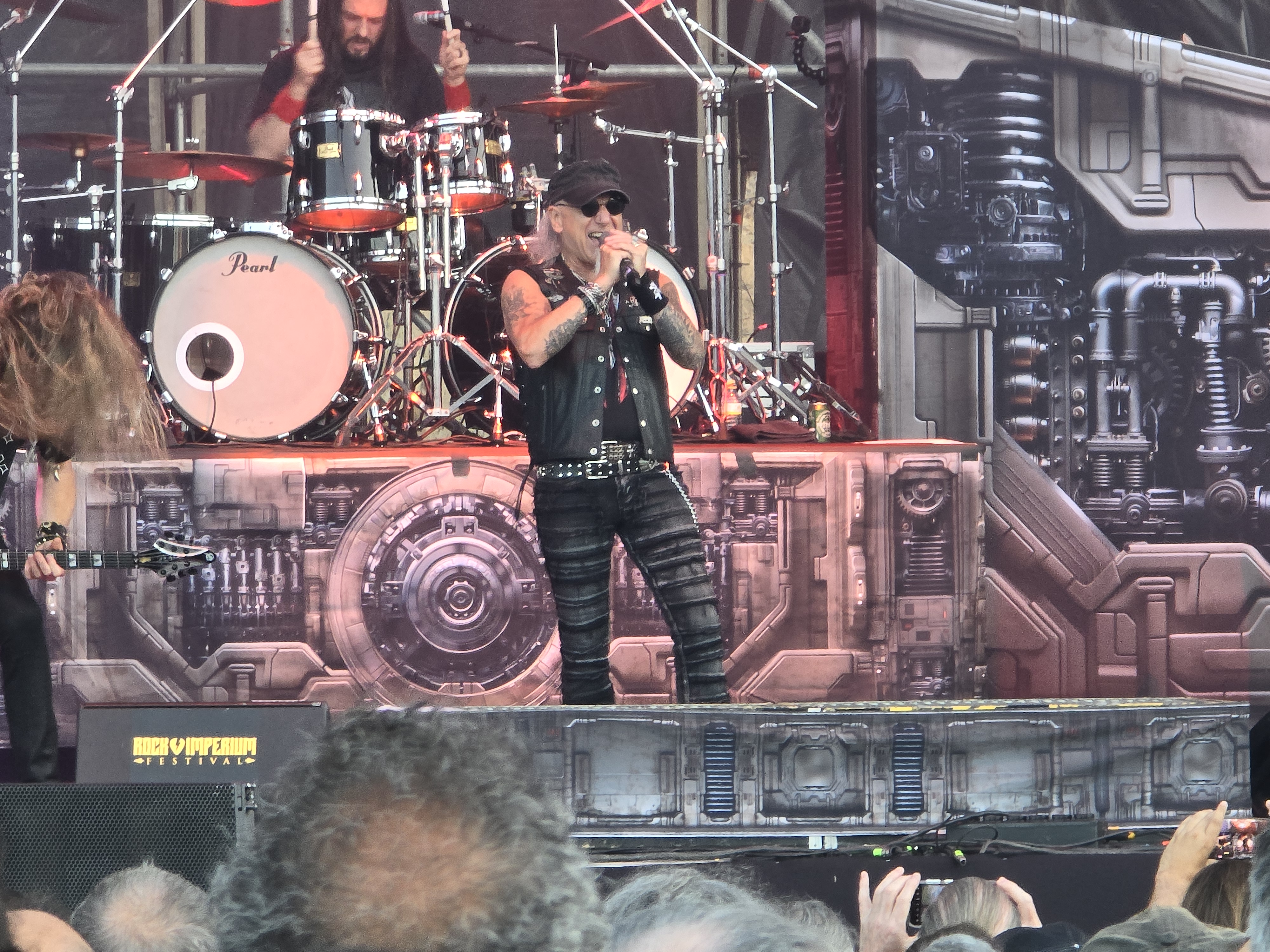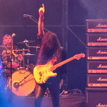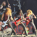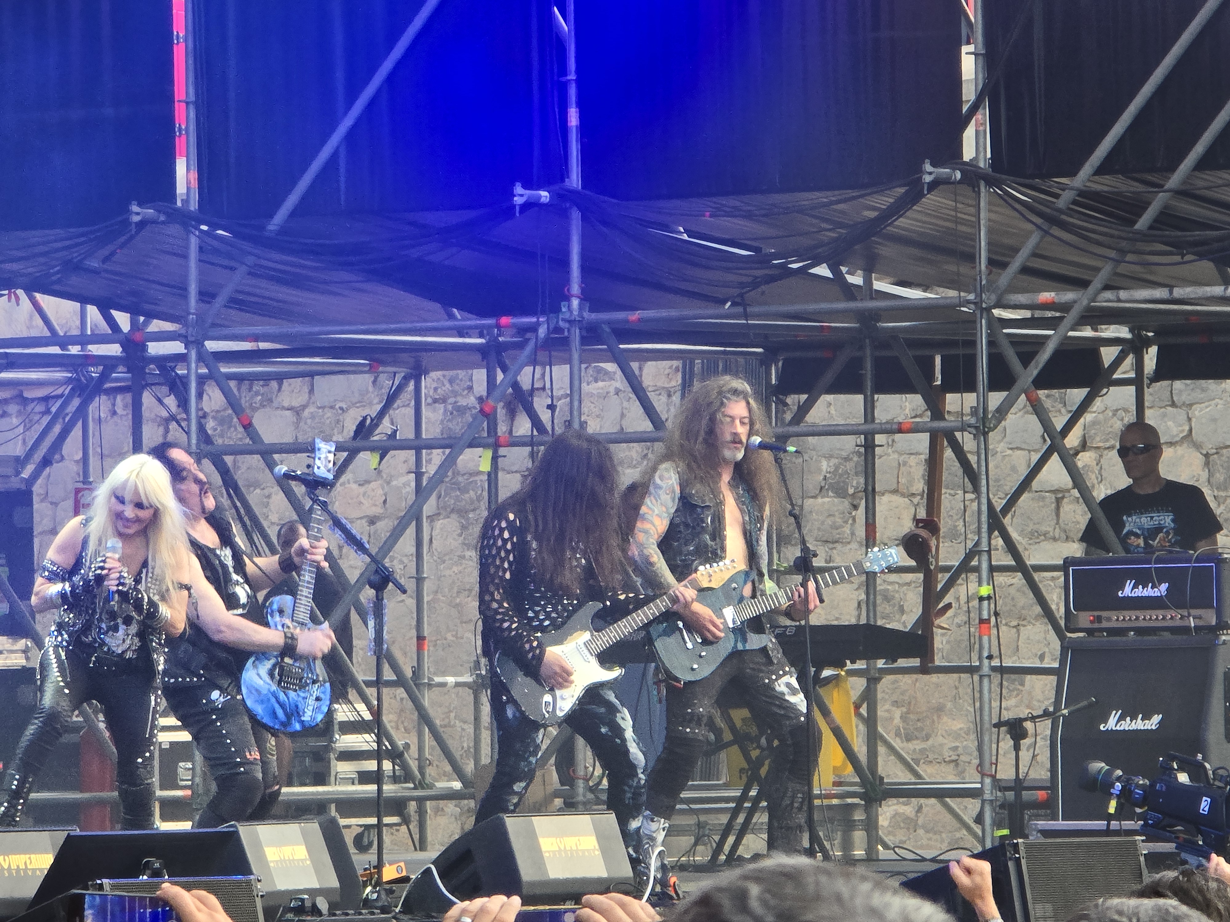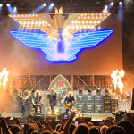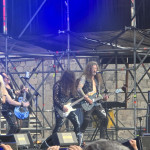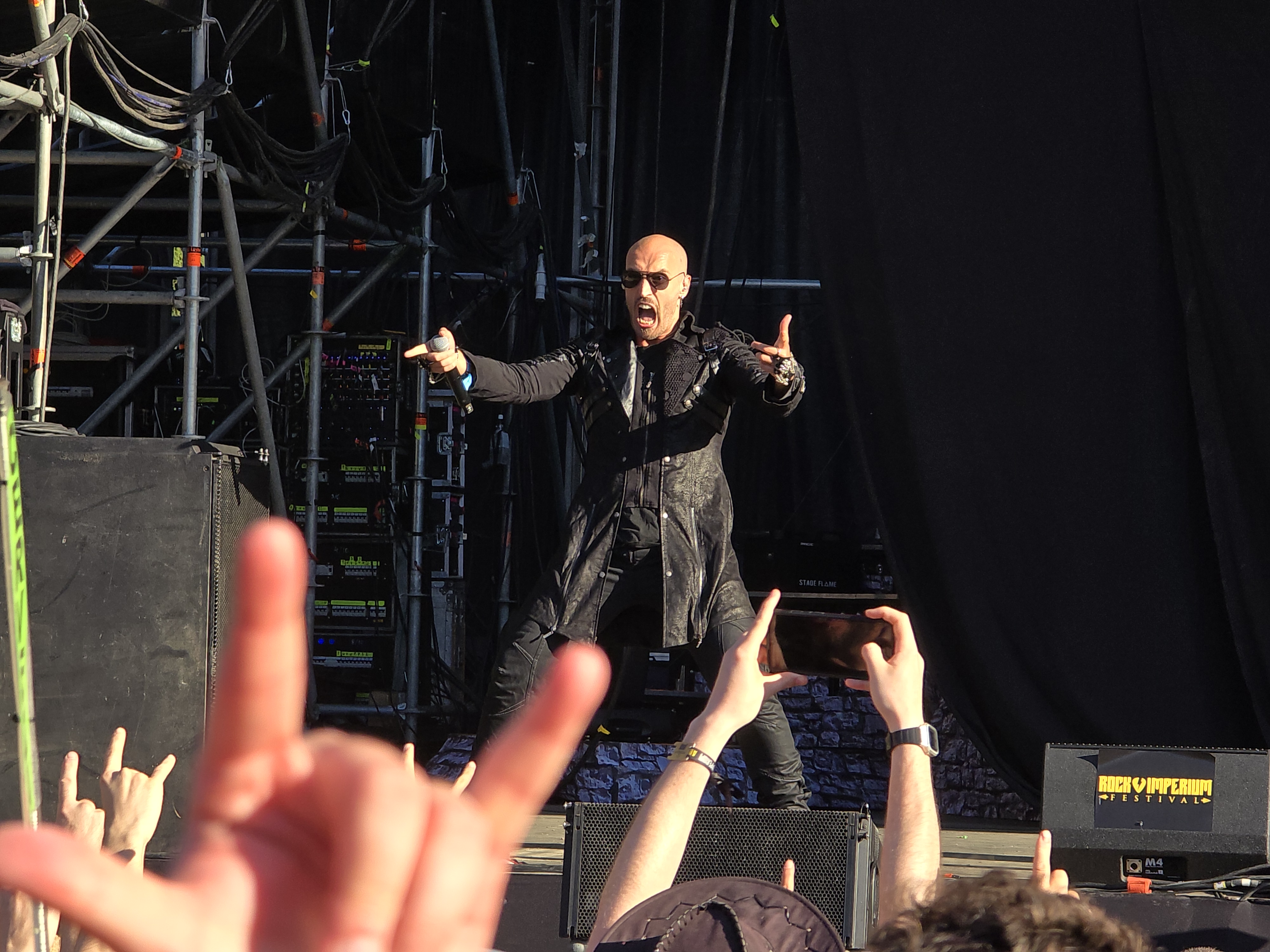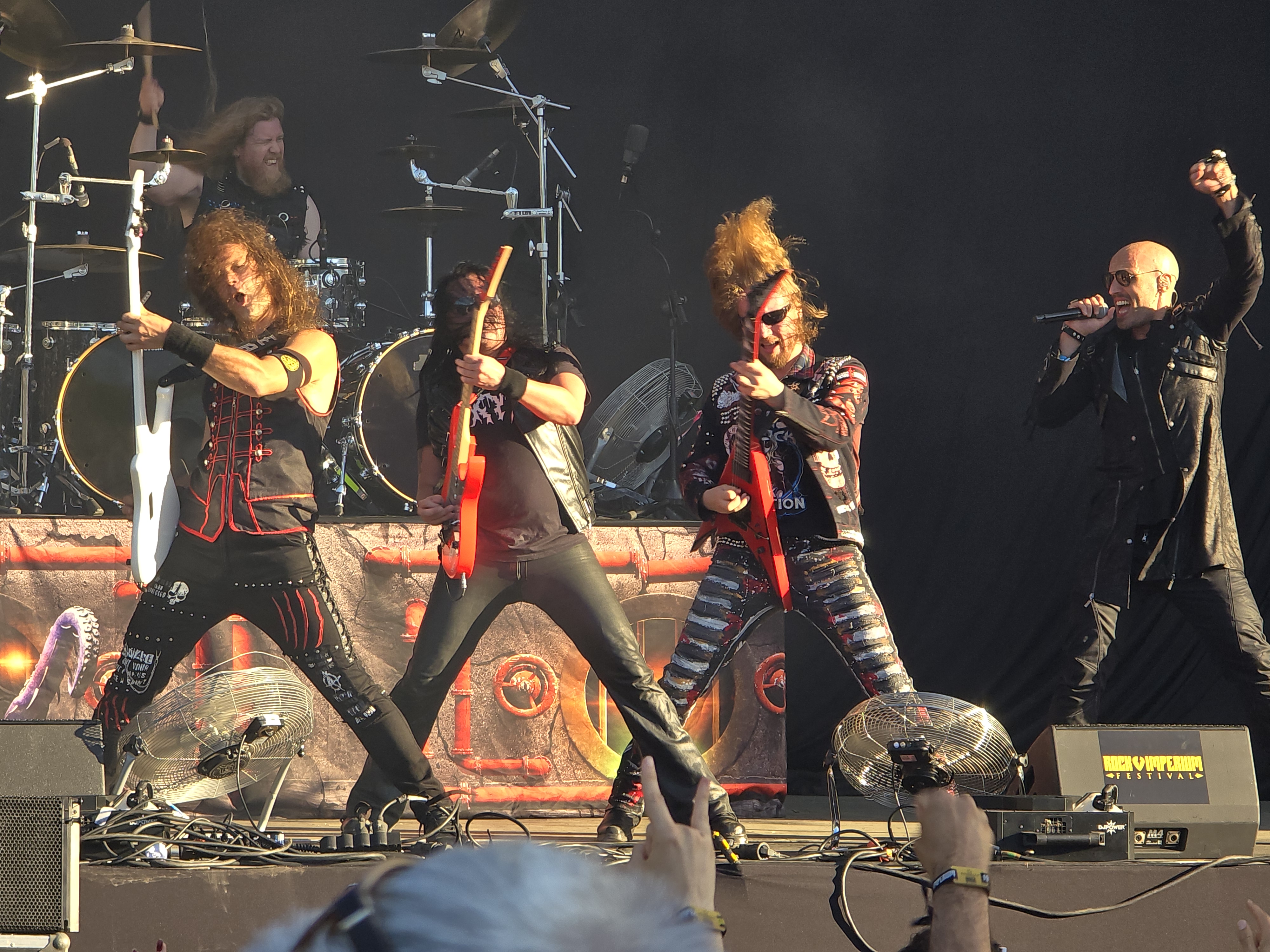 Auch wenn BEAST IN BLACK schon mit elegantem Synchronposing punkten konnten, erfunden haben es andere: ACCEPT. Phil Shouse fill-in Joel Hoekstra wirkt wie ein vollwertiges Bandmitglied und macht von den ersten Klängen an mächtig Alarm. ACCEPT starten mit dem neuen „The Reckoning“ und irgendwie werde ich das Gefühl nicht los, dass es sich aktuell viel mehr nach Band anfühlt als die Jahre zuvor. Klar, ist Wolf der Chef aber immerhin haben alle drei Gitarristen in den ersten drei Songs schon ihre Solospots und neben Joel und Wolf kommt auch Uwe immer mal wieder an den Bühnenrand. Es ist schön zu sehen, dass die Verantwortlichkeiten wohl besser aufgeteilt werden. Auch Mark Tornillo ist gut drauf und kreischt sich kompetent durch neu und alt. Ich bin zwar kein großer Freund von Medleys, aber bei einem solch langen Backkatalog ist das wohl die einzige Chance und so gibt es „Demon’s Night / Starlight / Losers And Winners / Flash Rockin‘ Man“ heute in der Kurzversion. Mit „Shadow Soldiers“ oder „Dying Breed“ beweisen ACCEPT dass sie aber auch im aktuellen Drittel ihrer Karriere noch tolle Songs schreiben können. Dennoch sind es natürlich „Princess Of The Dawn“, „Balls To The Wall“ und „Fast As A Shark”, welche die besten Reaktionen hervorrufen. Ein starker und eigentlich headlinerwürdiger Gig, wenn da nicht noch…