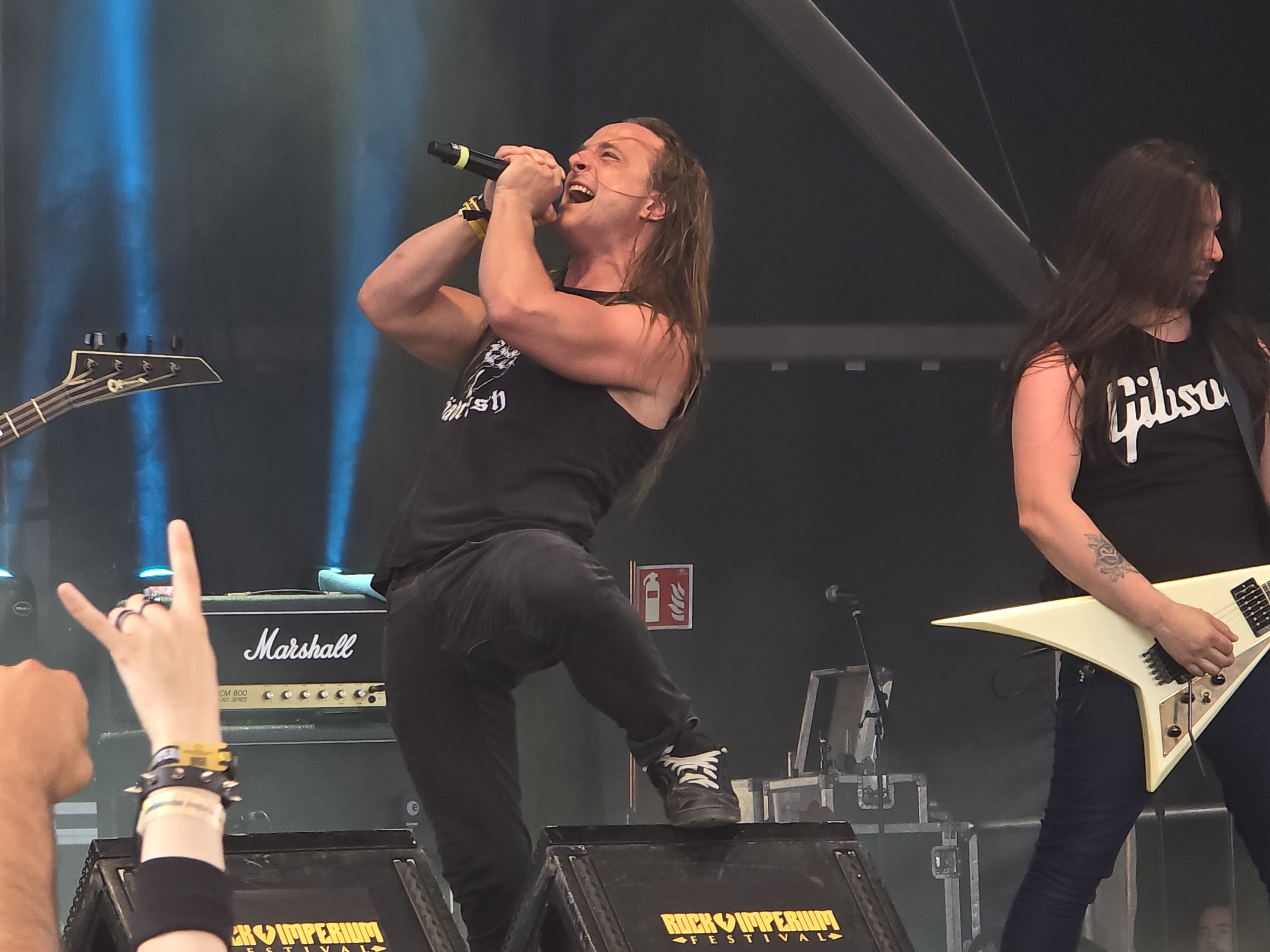 Der Freitag beginnt mit totalem Wahnsinn aus Japan. PHANTOM EXCALIVER verwandeln das Rock Imperium in einen Hexenkessel und der exaltierte Frontman Kacchang schafft es alle im Handumdrehen mitzureißen. Mann muss gesehen haben, wie der sympathische Kerl mit Unfrisur über die Bühne tobt und Nummern wie die den Anime Song „Cha La Head Cha La“ oder „Metal Never Betrays Us“ brüllt. Sagte ich auf der Bühne? Das Stimmt nicht so ganz, denn beim abschließenden „The Rebellion“ klettert er über die Absperrung und zettelt selbst singenderweise einen Circelpit an. Totaler Wahnsinn und Entertainment pur. Musikalisch bewegt man sich zwischen speedigem Power Metal und trunkenem nordischem Partyfolk Metal. Kanpai!
