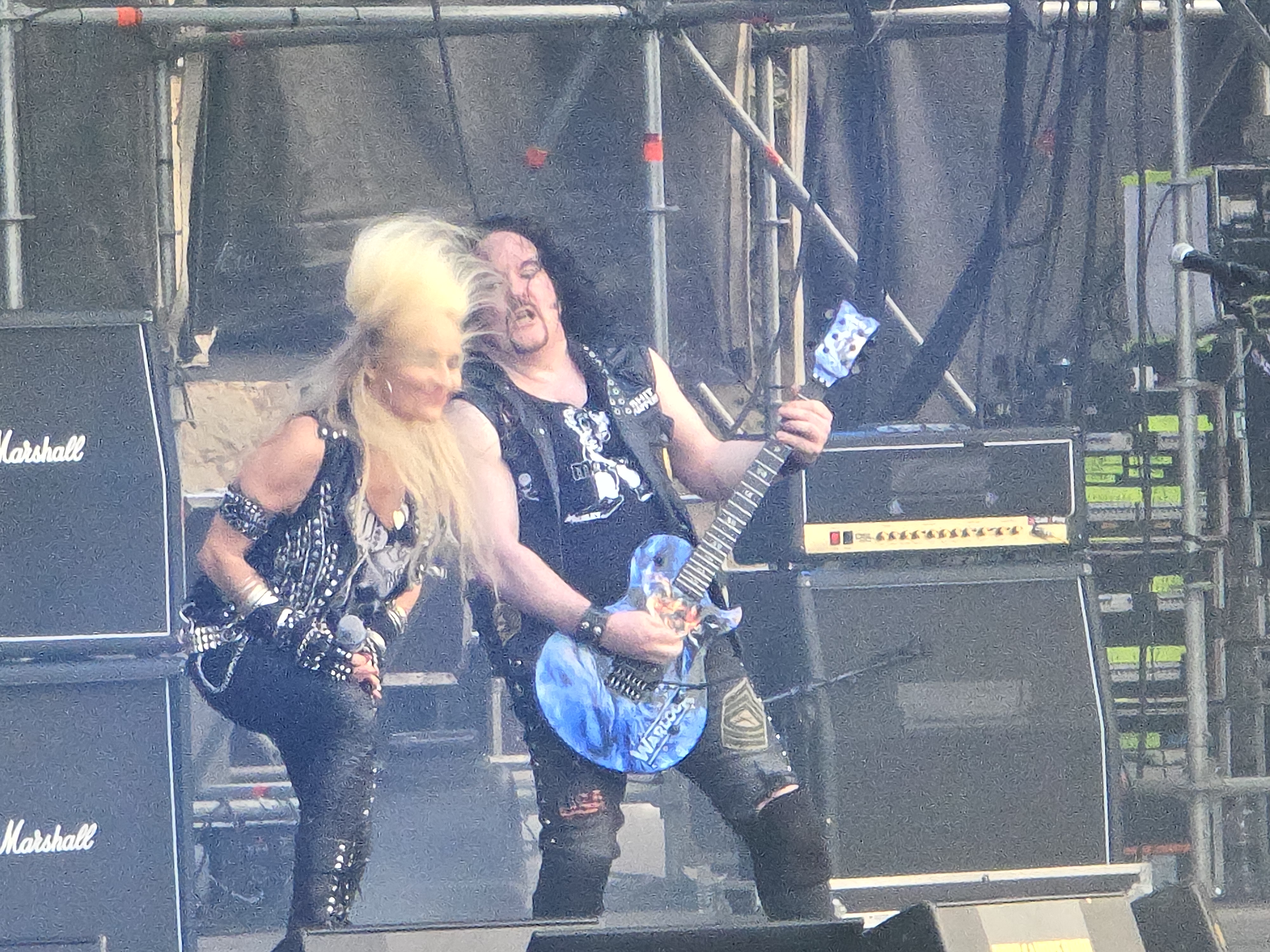 Und weil ich Sport so sehr liebe geht es auch postwendend wieder runter zu DORO, welche einen reinen (na gut…fast) WARLOCK Set präsentiert. Ihre Band ist hochmotiviert. Tommy Bolan vielleicht ein bisschen zu sehr, aber lieber ein bisschen drüber als nur Standfussball. Und die bestens aufgelegte Metal Queen schmettert Hit auf Hit ins weite Rund. „Burning The Witches“, True As Steel“, „Three Minute Warning“, Earthshaker Rock” und sogar die B-Seite “Evil”. Da verzeiht man ihr auch das eher unnötige Cover von “Breaking The Law“. In dieser Form hoffe ich, dass uns die kleine Düsseldorferin noch lange erhalten bleibt.