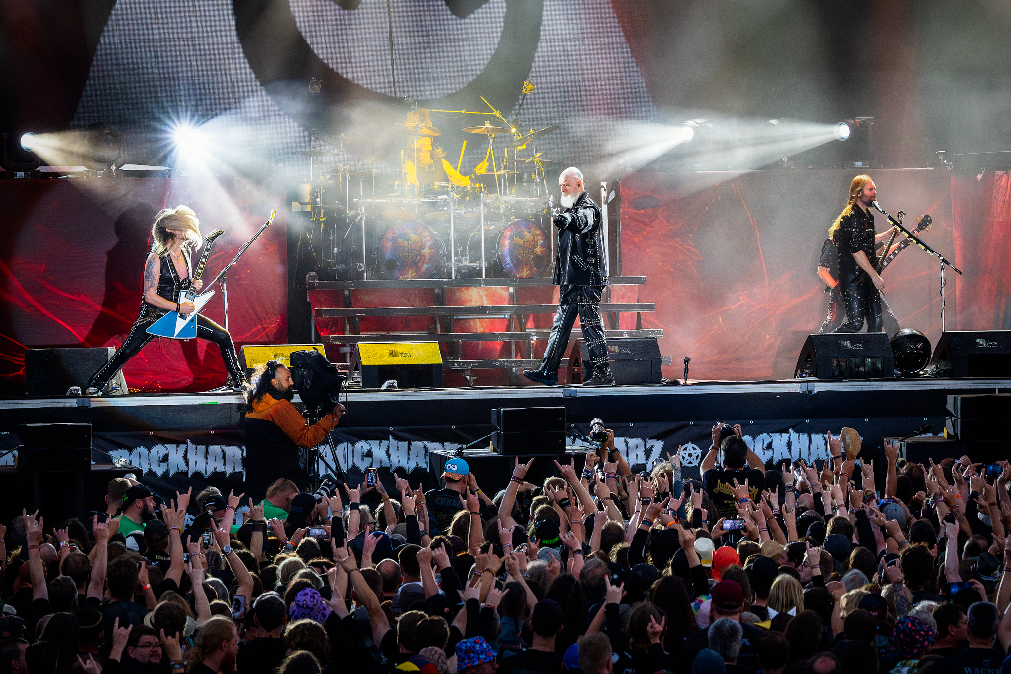 Die Legende ruft – und alle kommen! Auf JUDAS PRIEST können sich alle Anwesenden einigen und auf dem gesamten Gelände wartet die Menge auf den Metal God! „War Pigs“ von BLACK SABBATH lässt eine Gänsehaut entstehen und nach dem Intro beginnt die musikalische Reise mit„Panic Attack“ aus dem aktuellen Album. Nach „You´ve Got Another Thing Comin´“ ist klar, dass PRIEST einen denkwürdigen Abend vorbereitet haben und mit „Rapid Fire“ und „Breaking The Law“ bekommt das Publikum genau die Dosis Heavy Metal, die sie verdient. Die riesige Videoleinwand verstärkt visuell das Erlebnis, wobei der Blickfang natürlich Rob Halford ist, der die Bühne für sich einnimmt und regelmäßig mit den begeisterten Fans kommuniziert. Der Meister erreicht ungeahnte Tonhöhen und sogar der extrem anspruchsvolle „Painkiller“ kommt ohne stimmliche Schwächen aus den Boxen. Ob hier nachgeholfen wurde oder ob Rob wirklich gut bei Stimme ist, kann ich nicht beurteilen, aber im Endeffekt ist dies auch egal, da sensationell angeliefert wurde. Nach einer Stunde verlässt die Band die Bühne, um mit „Hellion/Electric Eye“ auf die Bühne zurückzukehren und der Menge das zu geben, was sie verlangt. Natürlich lässt sich Halford nicht lumpen und Motorengeräusche kündigen den Auftritt der obligatorischen Harley an, die auf der Bühne geparkt wird. „Hell Bent For Leather“ und „Living After Midnight“ beenden den großartigen Auftritt und die letzten Worte sind hoffentlich ein Versprechen: „We are fucking JUDAS PRIEST – we will be back“!!!