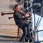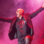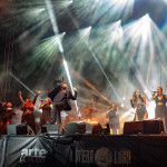 Während auf der Club Stage SHE PAST AWAY noch am musikalischen Vermächtnis von THE CURE feilten, gab sich auf der Main Stage ein waschechtes Szeneurgestein die Ehre: DEINE LAKAIEN spielten auf und präsentierten in getragenen Klängen altes und weniger altes Material von „Dark Star“ bis „Ulysses“. Wem das zu ruhig war, der kam hinterher bei SALTATIO MORTIS auf seine Kosten: the artists formerly known as Mittelalter-Rockband haben mittlerweile auch optisch jeden Hinweis auf ihr einstiges musikalisches Revier restlos getilgt: mit auf modern getrimmtem, schnörkellosem Schriftzug und vergleichsweise schlichten schwarzen Klamotten statt Gewandung wurde auch optisch unterstrichen, dass der Mittelalter-Rock endgültig Geschichte ist, was dem Set dann auch anzuhören war. Nicht einmal der alte Überhit "Prometheus" hatte es noch ins Set geschafft, einzig der "Spielmannsschwur" war noch übrig, wirkte aber ohne passende Spielleute und entsprechendes Drumherum nur noch wie ein blasser Abklatsch seiner selbst. Stattdessen trat man das Gaspedal voll durch und setzte auf hardrockige bis Metal-lastigere neue Songs wie „Finsterwacht“ und „We Might Be Giants“, bei denen der Dudelsack gefühlt nur noch als der Gewohnheit geschuldetes, sporadisch schmückendes Beiwerk fungierte. Der größere Teil des Publikums schien sich um die neue Ausrichtung nicht groß zu scheren und feierte die Band gewaltig- mangelnden Einsatz konnte man ihr auch wirklich nicht attestieren: Sänger Alea ließ sich selbst durch aus einer mutmaßlichen Platzwunde an der Schläfe rinnendes Blut nicht aus dem Konzept bringen, sondern zog sein Ding ohne Unterbrechung durch.