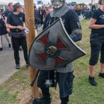 Es ist August, es ist Sommer, der Regen zieht ab- was fehlt da noch? Das M'era Luna natürlich! Und warum geht man da hin? Na, zum Festival-Merch-Kaufen! Diesen Eindruck konnte jedenfalls gewinnen, wer am Freitagabend, also eigentlich noch vor dem offiziellen Festivalbeginn, einen ersten Bummel über das Gelände unternahm. Der Campingplatz platzte schon nachmittags aus allen Nähten, die Zelte dicht an dicht gepackt wie Sardinen in der Dose, und wer es geschafft hatte, sich einen Platz und damit eine Bleibe für die Nacht zu sichern, der kannte offenbar nur ein Ziel: den offiziellen M'era Luna-Merch-Stand. Dabei sein ist eben doch nicht alles, man muss es hinterher ja auch zeigen können und will ein Souvenir haben - Zeit, sich zwischen den feilgebotenen Waren zu entscheiden gab es bei über einer Stunde Wartezeit in der Schlange jedenfalls reichlich. Wer weniger an Textil und mehr an Kulinarik interessiert war, konnte sich derweil auf dem Mittelaltermarkt und dem am späten Nachmittag eröffneten Festivalgelände den Magen mit einer Vielzahl verschiedener Speisen aus aller Herren Länder vollschlagen. Und um 17:30 fiel mit dem Tanz auf dem Markt ja auch der Startschuss für das Rahmenprogramm. Wer es weniger bewegungsintensiv bevorzugte, konnte sich ab 18:30h entspannt dem Crypt Talk mit Chris Harms oder den anschließenden Lesungen widmen, Feierwütige zog es die Nacht über in den Disco-Hangar oder auch an die Feuer und Schänken des Mittelaltermarktes. Kurzum: die Stimmung war schon vor dem eigentlichen Beginn am Samstag prächtig. Da taten auch gelegentliche leichte Schauer der Sache keinen Abbruch.