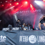 Danach wurde die musikalische Gangart härter: die DEATHSTARS standen auf dem Programm. Die Schweden traten das Gaspedal von Anfang an voll durch und lieferten mit Songs wie „Death Dies Hard", „Tongues", „Everything Destroys You" und „Blitzkrieg" eine druckvolle Show ab. Während auf der Club Stage im Anschluss WELLE:ERDBALL übernahmen, wurden die Töne auf der Main Stage danach zumindest etwas leiser, in der Luft lag gespannte Erwartung auf den Auftritt von SCHANDMAUL. Nachdem die Band letztes Jahr aufgrund der schweren Erkrankung von Thomas Lindner alle noch bestehenden Konzerte hatte absagen müssen, hatte man nun einige erste Auftritte mit Gastsängern absolviert, bei denen Lindner, dessen Stimme noch unter den Folgen seiner Rachenkarzinom-Behandlung leidet, an Keyboard und Gitarre stand, und in die sich nun auch das M'era Luna einreihen sollte. Entsprechend groß war der Applaus, als der von seiner Erkrankung sichtbar gezeichnete Fronter die Bühne betrat. Die Band legte mit Gastsänger Georgij von RUSSKAJA und dem Titel „Krieger“ los, bevor Thomas Lindner kurz ans Mikrofon trat: „Leute, hätte man mich vor einem Jahr gefragt, ob wir uns hier nochmal sehen... Ich hatte kein schönes Jahr. Bin aufgeschnitten worden. Bestrahlt. Aber was soll ich sagen: hier stehe ich, und es scheint soweit OK! Nur eins ist quasi noch ein Kollateralschaden - ihr hört es: meine Stimme. Daher bin umso dankbarer dafür, dass ich so einen tollen Freund hier habe, der das übernimmt: Georgij!" Der Applaus wollte kein Ende nehmen, das Gelände vor der Main Stage war mittlerweile proppevoll - alle wollten dem wiedererstandenen Sänger ihre Aufwartung machen, ein fast schon leiser Moment des Respekts, der Anteilnahme und der Solidarität im bunten und lauten Festivaltrubel, der auch die Band rührte. Und ein Moment, der letztendlich auch bezeichnend ist für das M´era Luna, das wie kein anderes Festival für Rücksichtnahme, Respekt und ein friedliches Miteinander steht. Doch SCHANDMAUL wären nicht SCHANDMAUL, wenn sie bei aller Nachdenklichkeit nicht trotzdem noch für Feierlaune gesorgt und dem Publikum Songs wie „Walpurgisnacht“ und das hymnische „Dein Anblick“ zum Abschluss kredenzt hätten.