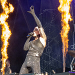 Das M'era Luna bezeichnet sich nicht umsonst als großes Familientreffen der Schwarzen Szene: man kennt sich, mag sich und selbst wenn die Sympathien mal nicht gar zu groß ausfallen, sieht man höflich über die gefühlten Unzulänglichkeiten des anderen hinweg. All das macht das Ganze zu so einer angenehmen und friedlichen Veranstaltung, die trotz der Menge an Leuten so ruhig vonstattengeht, dass selbst die Polizei es sich erlauben kann, den einen oder anderen Verkaufsstand genauer in Augenschein zu nehmen, während sie entspannt über das Gelände patrouilliert. Entsprechend verflog auch die Zeit wie im Flug, der Sonntagabend nahte heran und mit ihm die letzten Bands. Um 19 Uhr waren EPICA dran, mit denen das Programm des zweiten Tages langsam auf seinen Höhepunkt zusteuerte. Die Niederländer um Sängerin Simone Simons starteten mit „Abyss of Time – Countdown To Singularity“ und legten einen energiegeladenen Auftritt hin, bei dem geheadbangt wurde, was das Zeug hielt. Neben der Präsentation von Songs wie „Victims Of Contingency“ und „Cry For The Moon“ kündigten sie auch gleich ihr neues Album an und luden alle Anwesenden zur zugehörigen bevorstehenden Tour ein. Aber auch das Publikum wurde in die Pflicht genommen: eine „big wall of death“ solle man beim letzten Song doch bitte bilden und diesem Wunsch wurde auch auf durchaus beeindruckende Weise entsprochen.