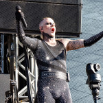 Sehr viel lauter ging es später auf der Club Stage weiter, wo COMBICHRIST mit ihrem Old School Set die Menge zum Tanzen und dadurch noch mehr zum Glühen brachten, als die sommerlichen Temperaturen es ohnehin schon taten. Wohl dem, der eine Kopfbedeckung oder einen (natürlich schwarzen) Schirm sein Eigen nannte, der Rest behalf sich mit wassergetränkten Schals oder Tüchern. Hat eigentlich schon mal ein Sonnencreme-Hersteller darüber nachgedacht, einen Stand auf dem M'era Luna zu eröffnen, vielleicht noch mit einer Limited-Festival-Edition in schwarzen Flaschen? Die Kraft der Sonneneinstrahlung bekamen jedenfalls auch LORD OF THE LOST zu spüren, die sich mit reichlich Pyrotechnik und Bewegung auf der Bühne auch noch zusätzlich selbst einheizten. In eine Art Discokugel zum Anziehen gehüllt und mit einer guten Portion Selbstironie ausgestattet („Mann, ist das heiß hier! Dabei wollte ich doch eigentlich hinterher noch eine Runde Eiskunstlauf machen - deshalb sehe ich auch so aus!") führte Sänger Chris Harms durchs Programm und angesichts der jubelnden Menge war die (ungerechtfertigte) Klatsche beim letztjährigen ESC für die Band sicherlich gut zu verschmerzen. Der zugehörige Song „Blood And Glitter“ durfte natürlich auch nicht fehlen.