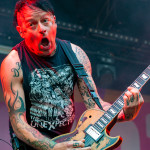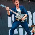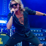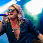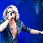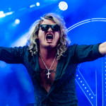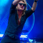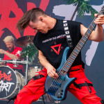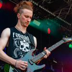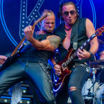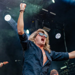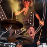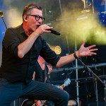 Der Abend bricht an und weiteres Festival-Highlight kündigt sich an: KISSIN’ DYNAMITE. Die Schwaben fahren mächtig auf, die Bühne wird mit beleuchteten Treppenstufen und dem glitzernden Bandemblem bestückt und gleich zu Beginn gibt es Konfetti-Regen: Breitbeiniger Glam Metal mit Stadionrock- und 80er-Jahre-Attitüde. Das Publikum feiert die Songs und die Truppe um die Brüder Hannes und Ande Braun sind gut aufgelegt. KISSIN`DYNAMITE karikieren den Glamrock nicht nur, sie nehmen ihn auch ernst. Voller Party-Pathos und schillernder Power werden „I've Got the Fire“, „The Devil Is a Woman“ und der 2012er Hit “Six Feet Under” dargeboten. Zu "You're Not Alone" lässt sich Sänger Hannes, der die blonden Haare in schönster Welle geföhnt hat, im Schlauchboot über die Köpfe der Zuschauer treiben. Im Fotograben macht das Ablichten dieser Kapelle besonderen Spaß: Es wird gepost was das Zeug hält. Mit eindringlicher Vitalität entern die DONOTS mit „Auf sie mit Gebrüll“ die Bühne. Und den Titel nimmt die Punkband wörtlich: explosiv mit großer Energie und Leidenschaft spielen sie auf. Ingo Knollmann und Co sorgen mit Gassenhauern wie “Stop the Clocks“ und „Calling“ für so manch einen wüsten Circle Pit. Das Moshpit wirbelt ordentlich Staub auf. Guido Knollmann schrammelt wild auf seine Gitarre ein. Das Publikum grölt “Whatever Happened to the 80s” so laut, dass sich der Wolf im Wald sicherlich am lecker Rothirsch verschluckt. Nach “We´re Not Gonna Take It” und “So long” ist Schicht im Schacht. Sänger Ingo ist hoch des Lobes für das Festival und den gemeinnützigen Verein, der es organisiert. Dem möchte ich mich gerne anschließen: Chapeau! Den Rausschmeißer machen die FIVE FINGER SKULL CRUSHERS, die FIVE FINGER DEATH PUNCH-Coverband aus Italien. Ein tolltes Festivalwochenende endet mit hart groovenden Gitarrenriffs.