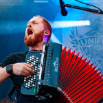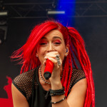 Um 14 Uhr öffnet das Bühnengelände und erfreulicher Weise kommen wir direkt in den Genuss regionaler Spezialitäten: Bitburger Pils und Cramer Obergärig (Kölsch). Manfred Lennartz des Vereins "TOLLROCK e.V.", der das Festival komplett ehrenamtlich organisiert, begrüßt die Besucher. LOST SANITY eröffnen das Bühnenprogramm mit Metalcore. Das Gelände fällt zur Bühne hin leicht ab, sodass man von nahezu überall einen guten Blick zum Geschehen auf der Bühne hat. Die Band aus dem Aachener Umland wird immer dann besonders gut, wenn sie das Tempo reduziert und Sänger Julian Froese dem Publikum mit tiefen animalischen Growls entgegentritt. Ihrem Sound wohnen auch Elemente von Melodic Death Metal inne. LOST SANITY veröffentlichten kürzlich die neue EP „Asylum“, heute haben sie die oft unliebsame Aufgabe als erste Band zu spielen. Aber der Bereich vor der Bühne füllt sich allmählich und die Combo meistert die Aufgabe gut. Auf der Fressmeile kann sich der hungrige Festivalbesucher die Wampe vollschlagen. Eine Currywurst-Schale und Pizza später hat sich eine gute Grundlage für den Tag geschaffen und weiter geht’s mit APRIL ART. „Welcome to the rodeo": Die hessische Truppe versprüht wirklich enormen Enthusiasmus, der ansteckend ist. Insbesondere die auffällige Frontfrau Lisa-Marie Watz, die das Publikum zur sportlichen Betätigung anpeitscht, entpuppt sich als hyperaktiver Derwisch. Musikalisch geht’s bei der in rot gekleideten Band in Richtung Nu Metal mit fetten Riffs. Tracks wie „Not Sorry“, „Karma is a Beach“ und „Break Out” zünden direkt; Rockröhre Lisa-Marie und ihren Jungs merkt man Bühnenerfahrung und Spielfreude an. Das kurz eingestreute "Master Of Puppets" erfreut zudem das Metaller-Herz. Es folgen EMIL BULLS, die es in der Tat schon seit 1995 gibt. Die Münchener Alternative Metaler starten mit „The Ninth Wave“ und haben viele Menschen vor die Bühne gezogen. Es ist rappelvoll, die Nebelkanonen arbeiten auf Hochtouren und es werden „Love Will Fix It“, „Hearteater“ und der große Hit „The Jaws of Oblivion“ geboten. Sänger Christ von Freydorf sendet ein lautes „Fuck You“ an die Security-Kraft, die ihn nicht mit seinem Becher Kamille-Tee reingelassen hat. Ob das nun auf die Bühne gehört, ist allerdings Geschmackssache. Da reagierte „Randy“ Blythe (LAMB OF GOD) einst souveräner, als er am Bühnenaufgang nicht erkannt wurde. Es ist 19:30 Uhr – Zeit zum Fiedeln! Seit der Gründung 1990 haben sich „FIDDLERS GREEN“ den Status als eine der beliebtesten Formationen innerhalb der Folk Rock-Szene erarbeitet. „The Green Machine“ heißt die aktuelle Scheibe, Irish Speedfolk made in Erlangen. „Shanghaied in Portsmouth“, “I Need a Volunteer”, “Victor and His Demons”: Das Publikum geht gut mit, der Moshpit bebt und der Auftritt hat quasi komplette Konzertlänge. Passend zur Mucke lassen wir uns zwischendurch an der Whiskybar sehen. Stefan Klugs Akkordeon und „Der grüne Geiger“ Tobi Heindl machen Stimmung, der eingängige tanzbare Folklore-Sound trifft den Geschmack des Eifler Publikums. Die Musik ist gespickt von Offbeats, auch Ska- und Punkelemente sind rauszuhören. Mit „Wild Rover” wirds zum Ende traditionell. Hab` ich da den ein oder anderen „An der Nordseeküste“ mitsingen hören? Um ehrlich zu sein, ist die Musik von SKINDRED keine, die ich mir zu Hause oder im Auto anhören würde. Der abenteuerliche Mix aus Reggae, Rap, Metal und elektronischen Samples kann mitunter anstrengend werden. Live klappt das aber wirklich sehr gut! Die Band harmoniert und Sänger Benji Webbe heizt dem Publikum in herrlichen Outfits hervorragend ein.