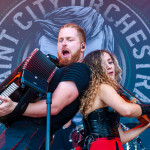 Der zweite Festivaltag startet verhältnismäßig früh und schon mittags kann man am Meet&Greet-Bereich die DONOTS treffen, bevor die Band am See eine Runde joggen geht.. Um 12:30 Uhr ist Zeit für den TOLLROCK-Bandcontest. Über 100 Bands haben sich beworben und heute spielen drei auserwählte Kapellen. Den Auftakt macht die 5-köpfige Punkrockband THE TASTY TRASHPANDAS aus Aachen und bietet melodischen Punk für die Skatehalle. Vor kurzem erschien ihr erster Longplayer „Hope for better“. Weiter geht’s mit BLACK REMAINS. Die rifflastige Rockmusik des Trios überzeugt; die Band kann mit Songs wie „Hey Now“ und „Rock`n`Roll Dancers“ den Contest für sich entscheiden. Die dritte Formation im Wettbewerb heißt UNCROOK und zockt Hard Rock. 2019 haben sie das Album „Years gone by“ rausgebracht. MOON SHOT aus Finnland machen treibenden Alternative Rock mit guten Melodien. Der Bassist Henkka Seppälä war übrigens bei CHILDREN OF BODOM. Die Mucke hat allerdings rein gar nichts mit CIB zu tun, erinnert eher an BIFFY CLYRO oder MUSE. Mich können die Jungs durchaus überzeugen, Songs wie „Yes“ oder "The Power" bleiben echt im Ohr und Sänger Ville Malja agiert auf der Bühne durchaus ausdrucksstark. Obwohl die Mucke ansich gar nicht meinem Beuteschema entsprechen dürfte, läuft seit dem Auftritt MOON SHOTs aktuelle Scheibe nonstop in meinem Auto. Auch die Bands, die am Nachmittag spielen, erhalten auf dem TOLLROCK eine amtliche Spielzeit; die Kvenen spielen beispielsweise grob 70 Minuten. Nervöse 25 Minuten-Slots großer Festivals gibt’s hier nicht. Das SAINT CITY ORCHETRA spielen punkigen Irish Folk und haben gute Laune, eigene Lieder und Cover-Songs wie „Rose Tattoo“ von den DROPKICK MURPHYS im Gepäck. Musikalisch ist die Band aus der Schweiz also ähnlich ausgerichtet, wie FIDDLERS GREEN ab Vortag. Ich will nicht meckern, aber vielleicht wäre bezüglich des Billings eher eine Metal Band passend gewesen (gern auch Death Metal). Aber was solls: SAINT CITY ORCHESTRA, insbesondere die Geigerin Mélodie und Akkordeon-Spieler Gabriel, geben Gas und sind viel in Bewegung. Die Zuhörerschaft schwingt fleißig das Tanzbein.