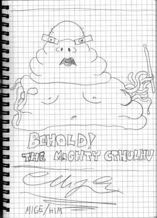 Mag der Lovecraft auch? (Anm.d.Red. Der in freier Anlehnung von Migé gezeichnete "mighty Cthulhu" ist einer der Götter im H.P.Lovecraft-Kosmos).