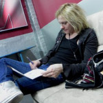 Larry (von der Zeichnung aufsehend): So, bin gleich fertig.