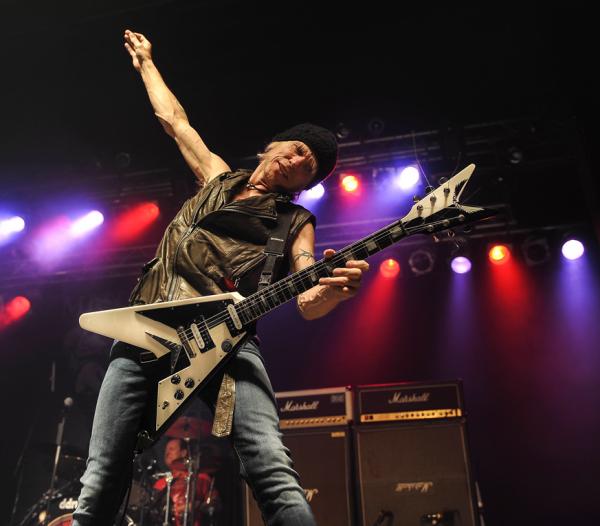 "Ja, das ist eine lange Geschichte. Also eine Sache führte zur nächsten, das ging im Grunde genommen schon los 2011. Ich habe mit Herman Rarebell und Pete Way (Anm. Redaktion: Bassist von UFO) zusammen gejamt und da sind wir auf die Idee gekommen, das auch mal live auf die Bühne zu bringen. Fast zur gleichen Zeit bin ich ins Studio und habe bei Michael Voss ein Demo gemacht. Dabei habe ich festgestellt, dass er singen kann und ihm vorgeschlagen, dass er den Gesang zum Album übernehmen kann. Diese Aufnahme hab ich dann Herman und Pete vorgespielt, die waren von dem Gehörten total begeistert und wollten die Rythm Section sein. Und als wir dann die Platte fertig hatten (Anm. Redaktion: "Temple of Rock") und auf Tour gehen wollten, da hat Michael Voss ein Solo-Ding unterschrieben, und ich konnte erst mal nicht mit ihm als Sänger touren. Da musste ich mir überlegen, wie es jetzt weitergeht. Mir kam die Idee, mit den beiden anderen Sängern, die ich auf der Platte hatte (Anm. Redaktion: Robin McAuley und Doogie White), irgendwie was hinzukriegen, also dass ich mit zwei bzw. drei verschiedenen Line-ups spiele: Robin für Amerika, Michael Voss für Japan und Doogie White für Europa. So, dann habe ich das über die Bühne gekriegt und als es dann soweit war, dass die Europa-Tour anfangen sollte (mit Doogie White), da war der Pete nicht mehr so gut drauf (Anm. Redaktion: Rückfall Alkoholsucht und jüngst Krebserkrankung) und da hab ich Herman Rarebell gebeten, er soll mal Francis Buchholz fragen, was der gerade macht. Denn wir spielen live gerade so viele SCORPIONS-Sachen, das würde doch super passen, wenn Francis dabei wäre. Das wäre so eine Art "Love Drive"-Reunion (Anm. Redaktion: "Love Drive" SCORPIONS-Platte mit Michael). Der Francis war voll dabei, und das ging gleich beim Üben schon richtig gut los, uns war klar: das wird bombastisch. Und dann die ersten Auftritte! Die Leute gingen richtig gut mit und hatten Spaß. Es gab eine richtig gute Chemistry! Das war alles so gut, dass ich mir dachte: "Mensch Kinder, auf der Tour waren wir so erfolgreich, da mach' ich am besten noch eine DVD daraus, bevor noch irgendwas passiert, dass wir das wenigstens auf Film haben". Und dann habe ich das schnell organisiert, und wir haben die DVD "Live in Europe" gemacht. Wir haben dann noch zusätzliche Angebote bekommen - so viele, dass wir noch eine zweite Europa-Tour anbauen mussten, die dann weiterging im April 2013; der erste Teil der Europa-Tour hörte September 2012 auf.
