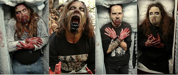 Dirk Rogers und Caleb Schneide (BAD ACID TRIP) haben das gemacht; beide arbeiten auch noch als SFX-Typen in Hollywood. Sie haben das Make-Up gemacht und sich um Location und Ausrüstung gekümmert. Viele der Gedärme und so was kommen von der „The Walking Dead“-Serie. Sawa Remetch hat die Fotos geschossen und einen tollen Job gemacht, sie hat uns alle dazu gebracht, total verrückt zu sein. Orion hat dann bei Relapse alles zusammengebracht und das Layout mit Photoshop bearbeitet.