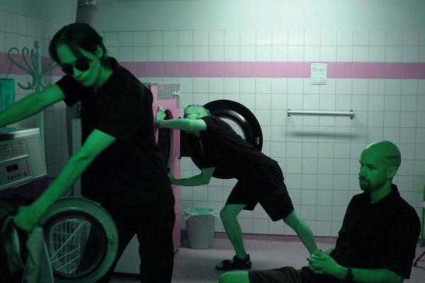 Ihr seid nur zu dritt, wer spielt denn den Bass? Besonders, wenn ihr live auftretet?