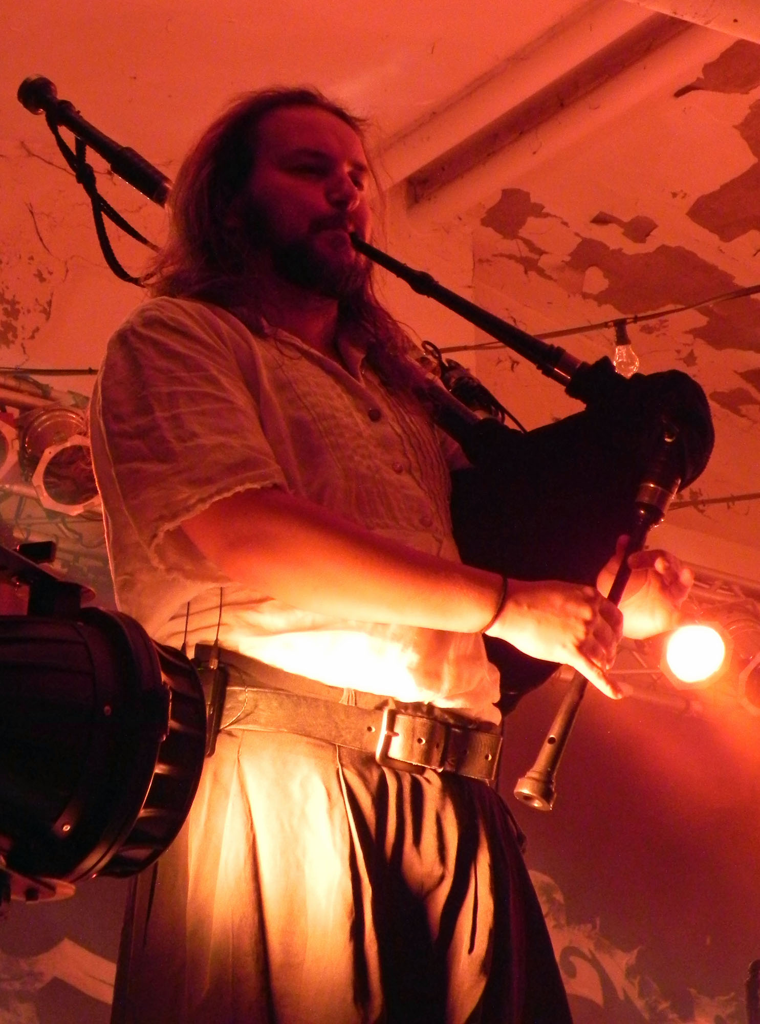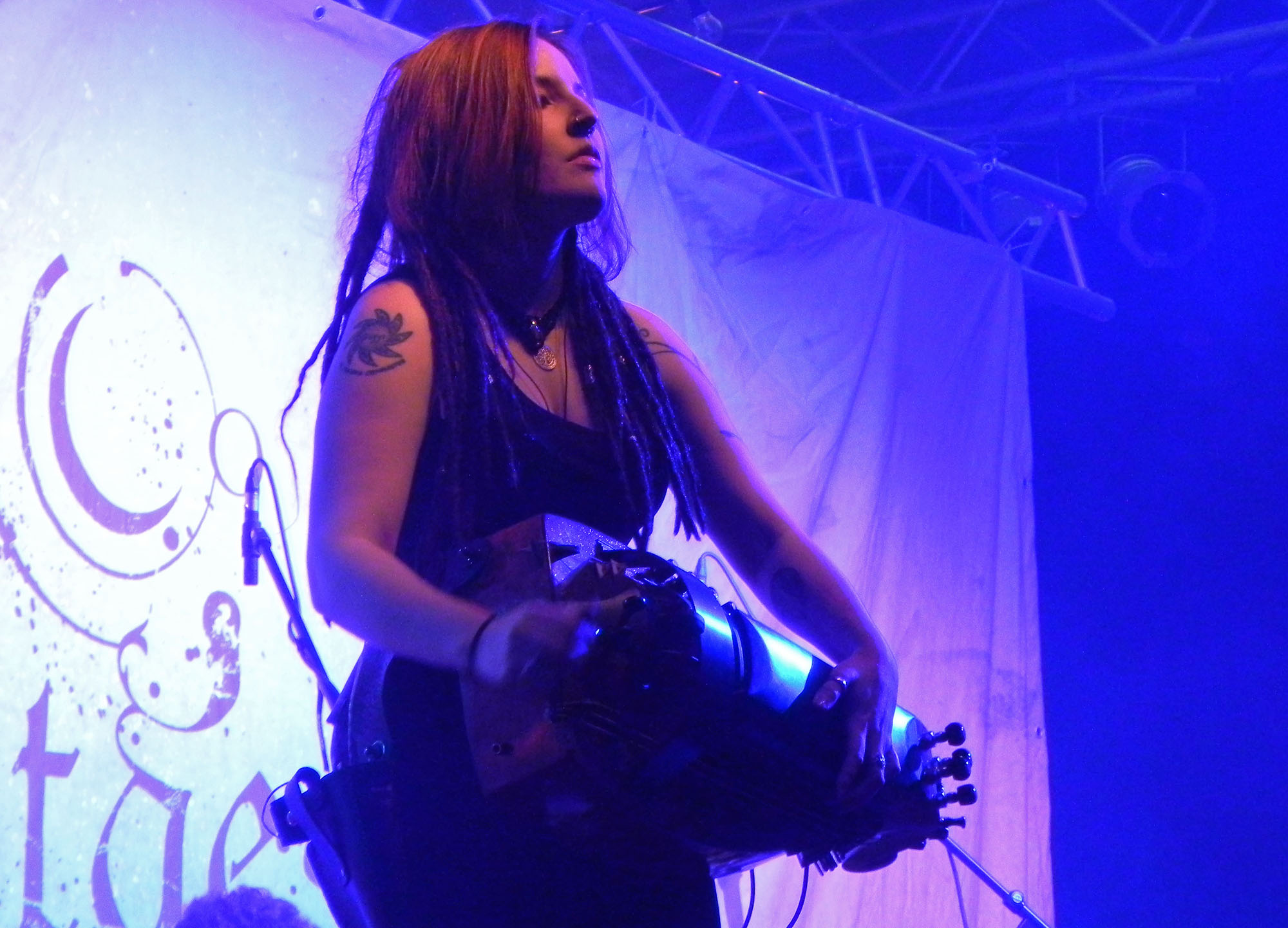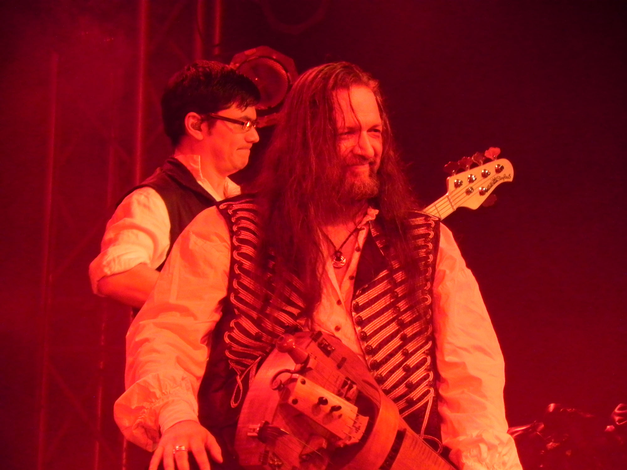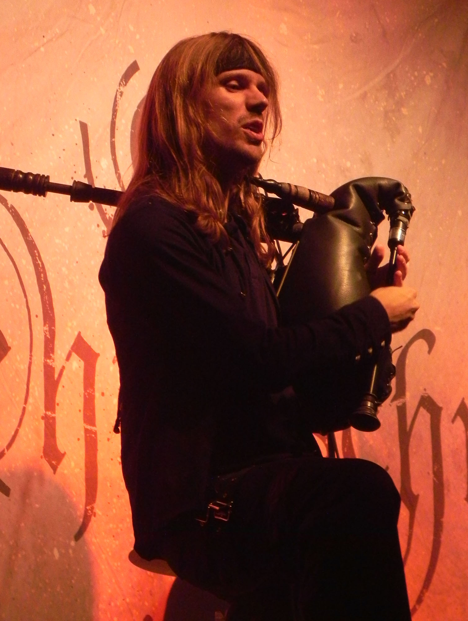 Doch zunächst einmal war es Zeit für den Support in Form von NACHTGESCHREI, die um 19:30 Uhr die Bühne enterten und gut gelaunt loslegten. Mit mittelalterlich-rockigen bis metallischen Klängen ging es druckvoll zur Sache und die Band durfte sich darüber freuen, auch durchaus den einen oder anderen eigenen Jünger im Publikum vorzufinden. Überhaupt kam die Kombo gut an und Songs wie „Monster“, „Das Nichts“ und „An Mein Ende“ wurden rückhaltlos gefeiert. Auch neues Material hatten die Frankfurter am Start, wurde doch mit „Der Letzte Tag“ ein neuer Song vorgestellt. Und das alles mit einem Ersatzmann am Start: da Drummer Stefan ausgefallen war, musste ein neuer Mann am Schlagzeug heldenhaft in die Bresche springen, der sich wacker schlug und mit einem entsprechenden Applaus von Seiten des Publikums gewürdigt wurde. Nach einer Spielzeit von 45 Minuten endete das Set mit „Schlaflos“, nicht ohne ein gewisses Bedauern, denn sowohl Band als auch Publikum hätten durchaus Gefallen an einer Zugabe gehabt, die der straffe Zeitplan jedoch nicht gestattete.