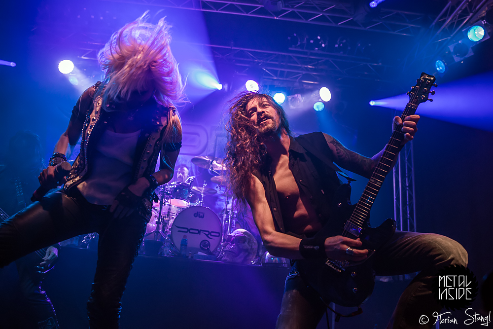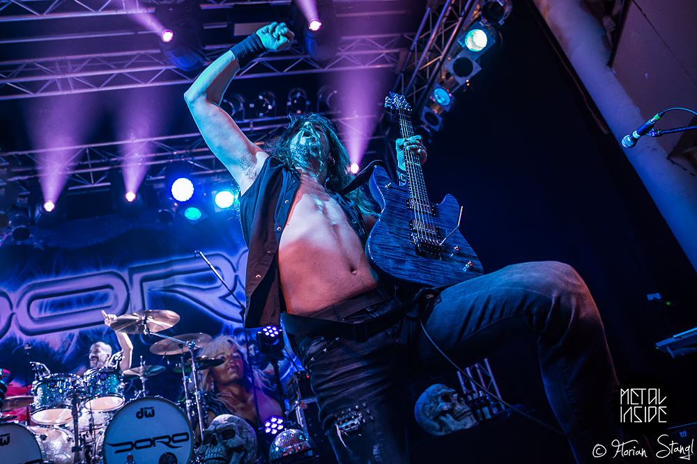 DORO selbst genoss schon Minuten vor dem Auftritt die Rufe ihrer Fans, als sie hinter dem Bühnenvorhang hervorstrahlte. Die Düsseldorferin legte dann erwartungsgemäß los wie die sprichwörtliche Feuerwehr und hatte sichtlich Spaß an ihrem Auftritt. Die Fans feierten die Band auch standesgemäß, ganz egal ob es sich um alte Klassiker aus lägst vergangenen WARLOCK-Tagen oder um neuere Songs handelte. Doro und ihre Band gaben den Jubel der Menge laufend zurück, wirbelten über die Bühne, suchten die Nähe der Metalheads im Löwensaal und ließen am Ende ein ausgepowertes, mehr als zufriedenes Publikum zurück. DORO ist eine zeitlose Erscheinung, das hat Frau Pesch an diesem Abend wieder eindrucksvoll unter Beweis gestellt.
