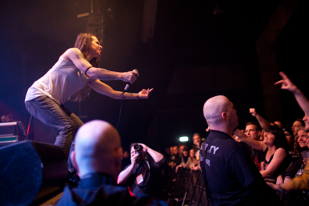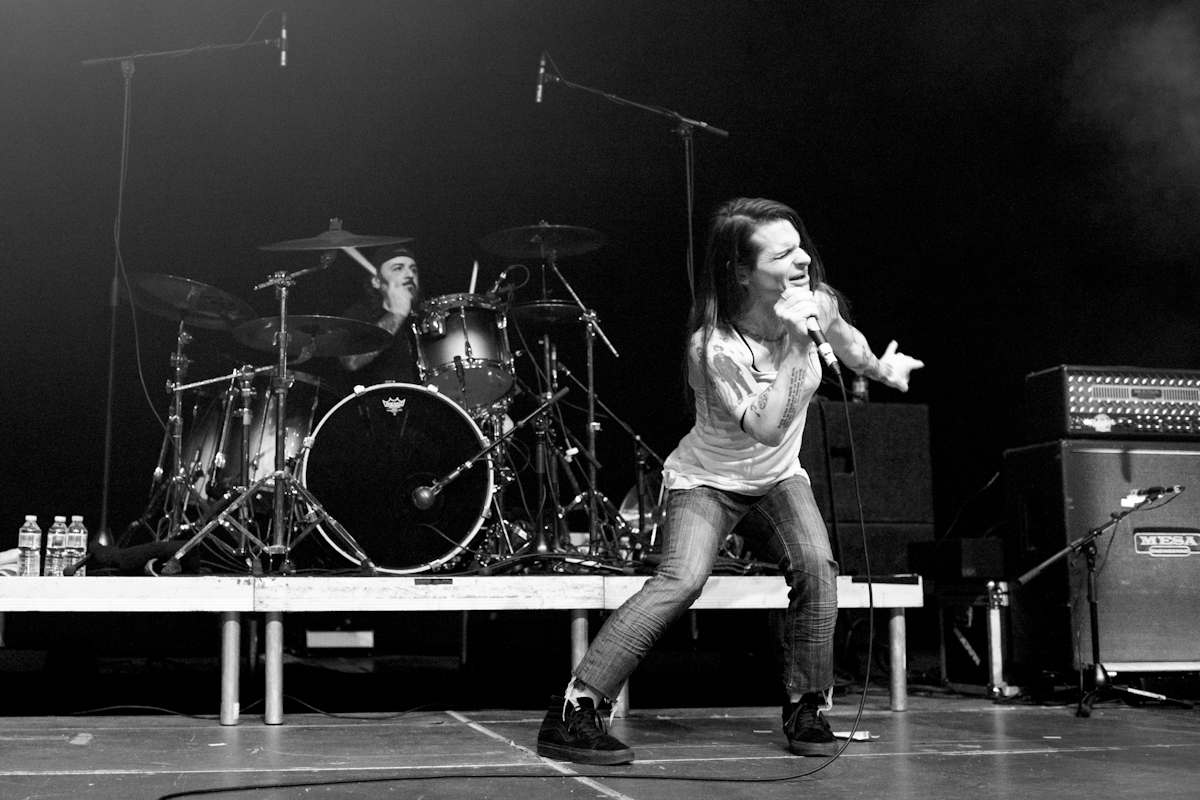 Nach 20 Minuten Umbauphase, wobei man sich darauf beschränkte, die Instrumente und das Schlagzeug vorzubereiten (auf ein Hintergrundbanner oder ähnliches wurde verzichtet), kamen unter dem Getöse der Halle Mina Caputo, Sal Abruscato, Alan Robert und Joe Z. auf die Bühne. Mit "The River Runs Red" gab es direkt eine klare Ansage für den Abend zu den Roots. Ob nun Keith oder Mina Caputo, den Zuschauern war es egal, denn die Band hat nach wie vor ihrem Charme nicht verloren. Im Gegenteil, an dem Abend liebte der Saal wohl Mina Caputo noch mehr als Keith, denn sie steht durch ihren Lebensweg und ihre Verwandlung nun noch mehr als zuvor für die Kämpfe, die man im Leben austragen muss und Schwierigkeit der eigenen Identität, was die Band schon immer ausmachte.