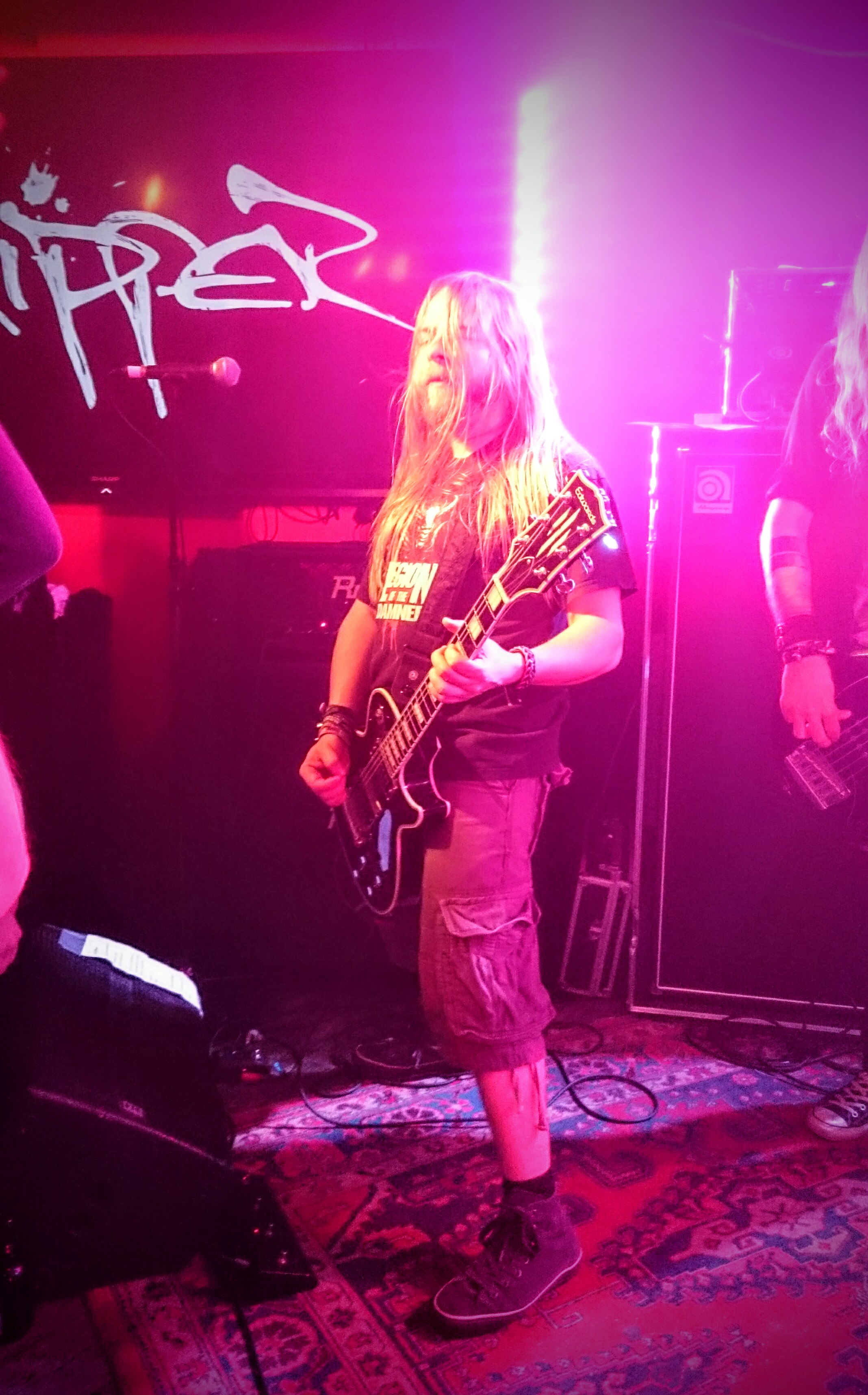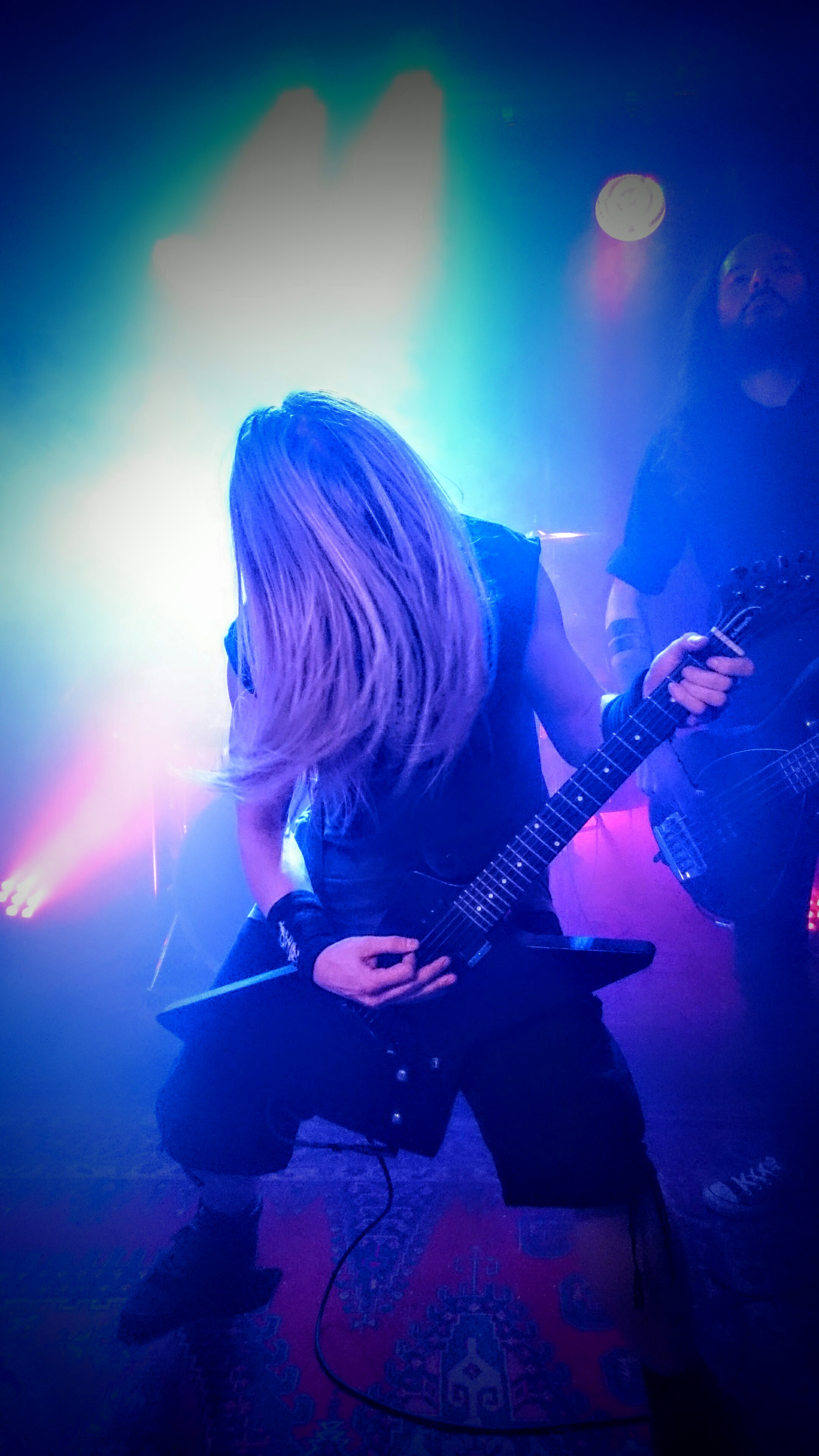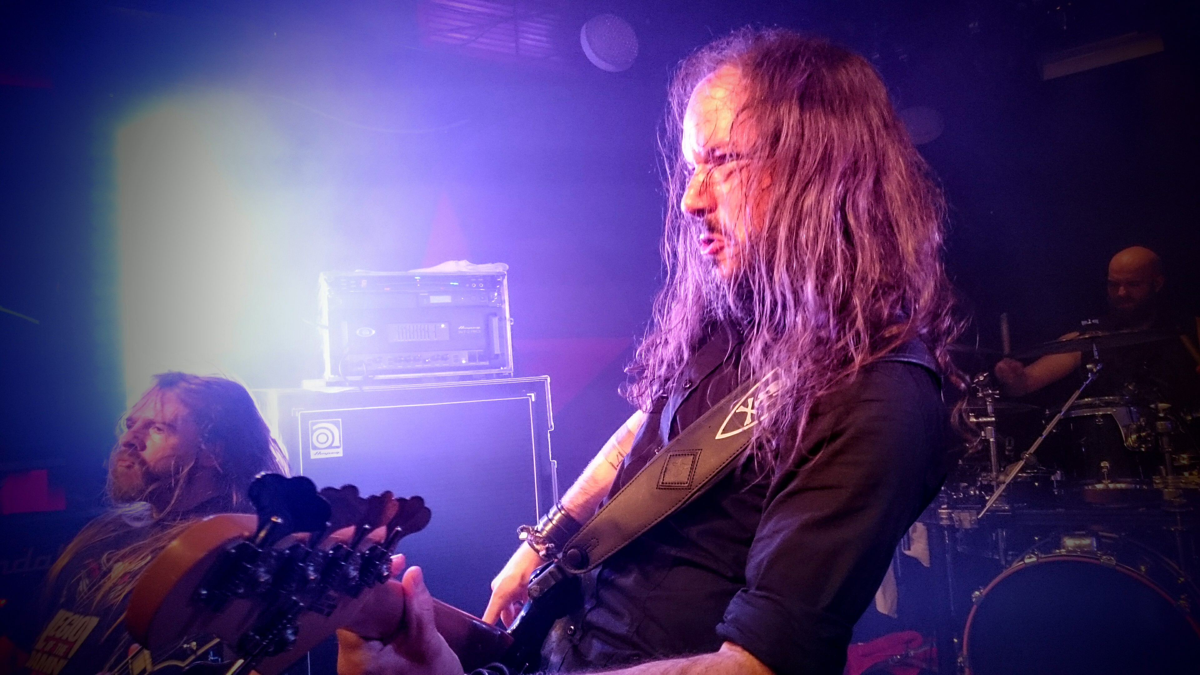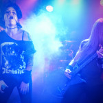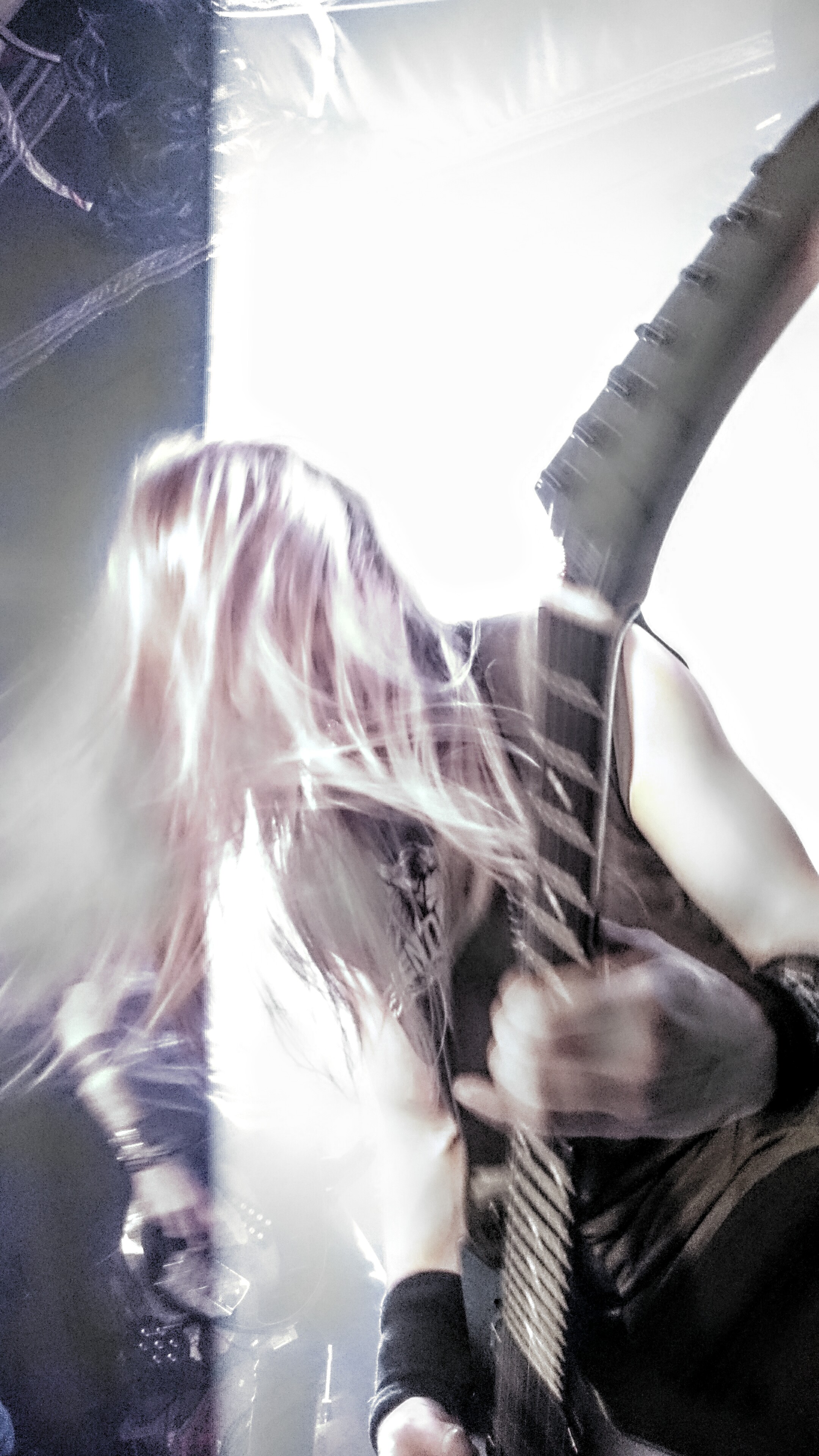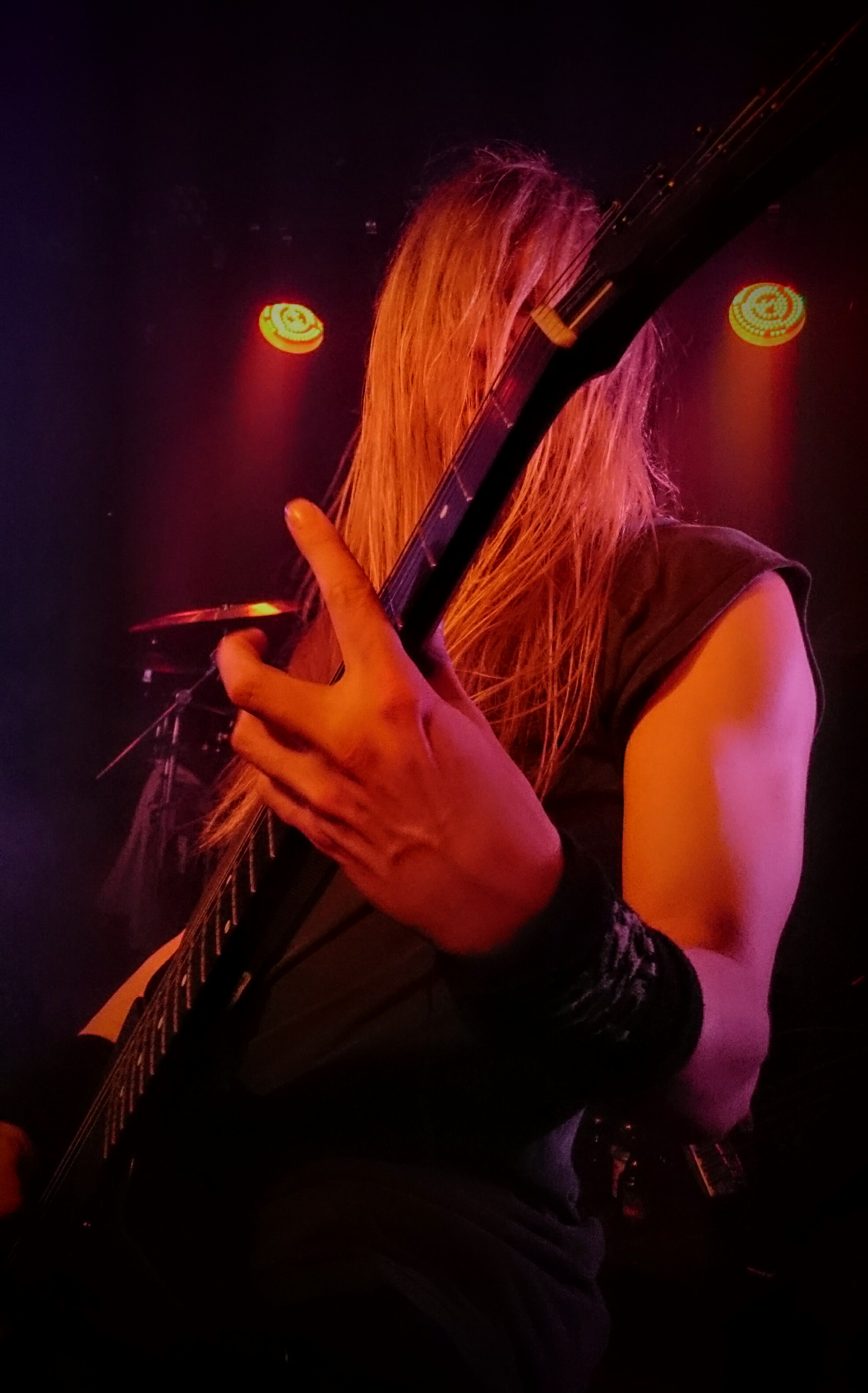 Bei der „Chefin“ handelt es sich um CRIPPER-Sängerin Britta Görtz, welche überraschenderweise auch gerade durch die Tür kommt. Gut gelaunt gibt sie zu Protokoll, dass es etwas später anfangen wird, da die Vorband technische Probleme hat. Mit leichter Verzögerung geht es dann für den Support SYNDEMIC los. Die Hamburger spielen modernen Death Metal und machen trotz abgerauchtem Amp und gerissener Saite das Beste aus der Situation und bringen so ihr Set solide hinter sich. Gegen 22:15 ist Schluss und ein etwas längerer Umbau beginnt.