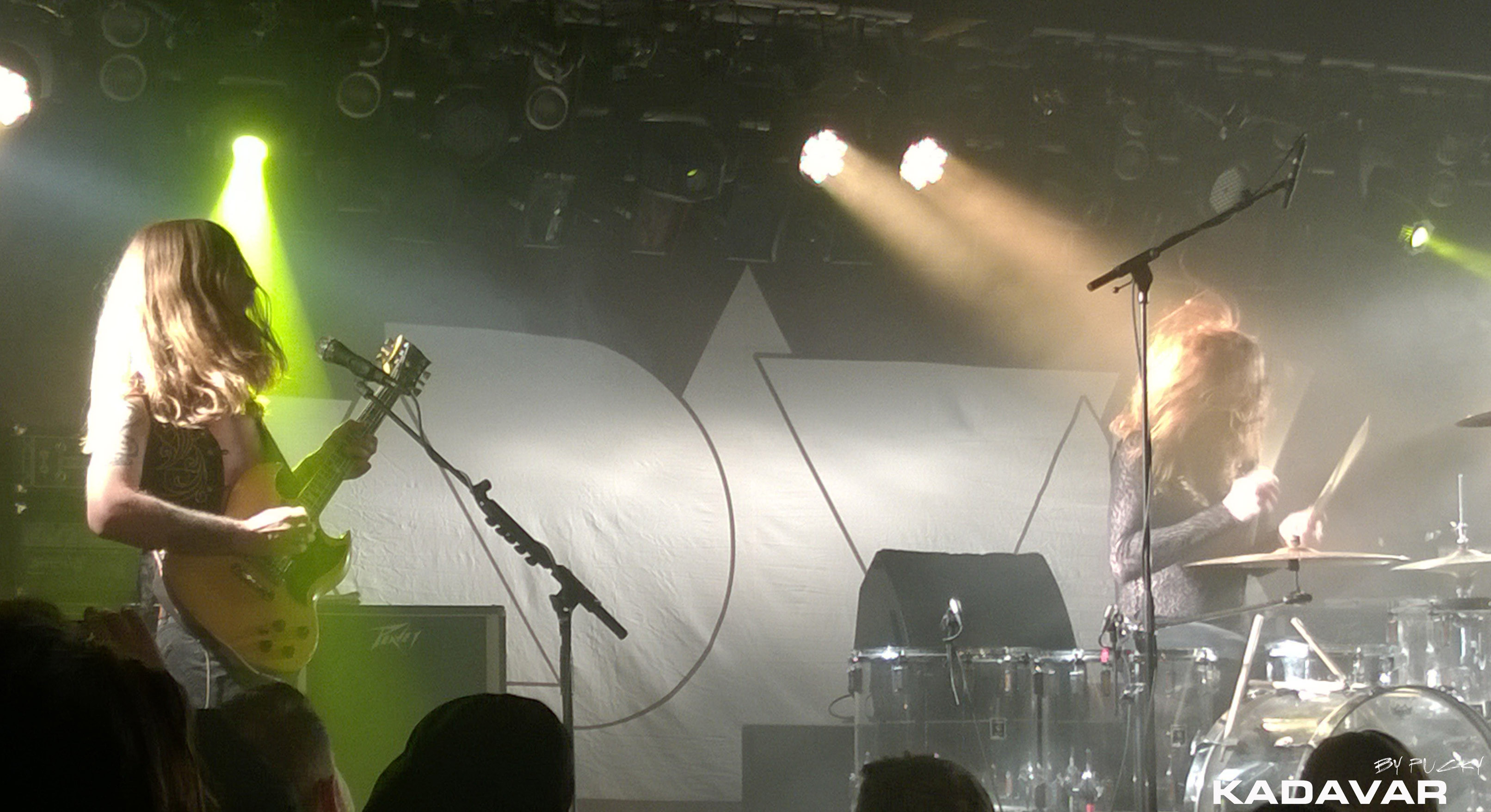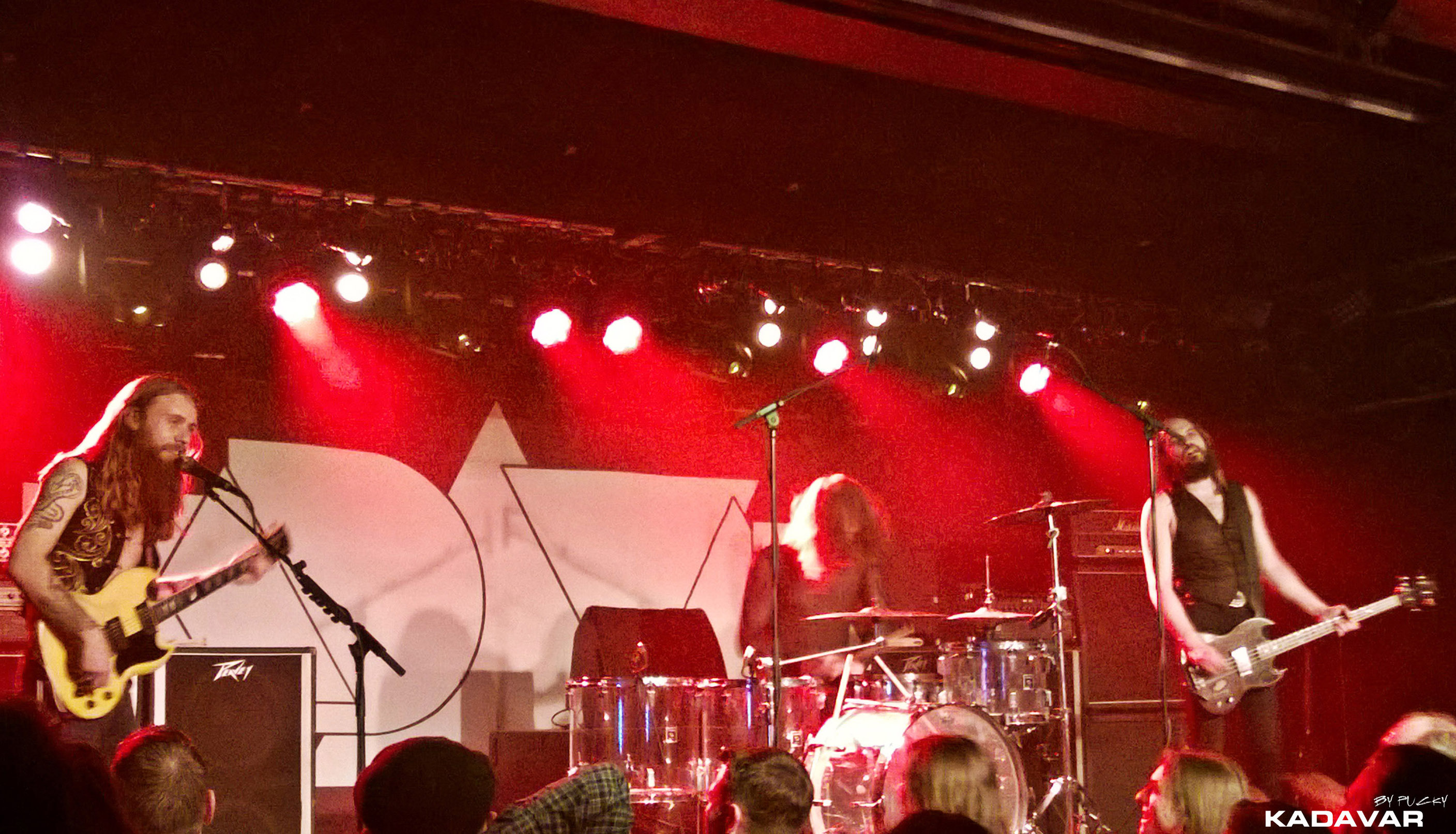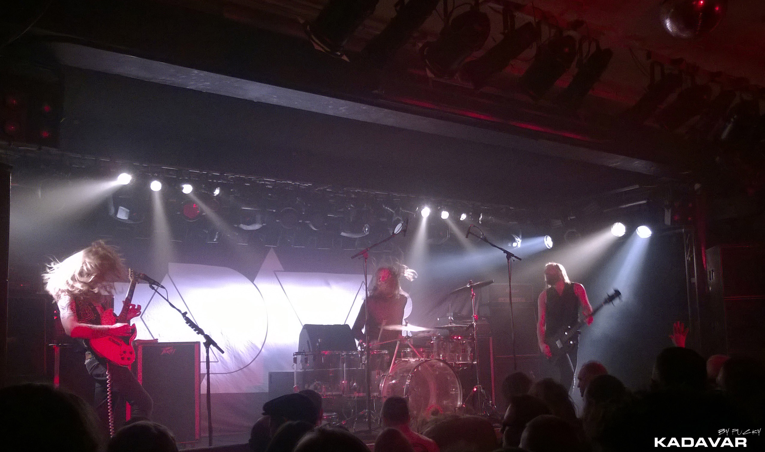 Wir haben Sonntag, Ende April und die Berliner Band KADAVAR schlägt in meinem Revier auf. Ist klar, dass ich mir die Drei zu Gemüte führen werde. Aber zuerst starten DEATH ALLEY mit punkigem Rock`n´Roll das Aschaffenburger House. Die Band um den früheren THE DEVIL´S BLOOD-Gitarristen erinnert, allen voran die schrillen Vocals, ein wenig an WARRIOR SOUL. Richtig überzeugend ist der Gig nicht, aber mit dem quirligen Sänger an der Front kommt dennoch keine Langeweile auf. Und dann wird es mörder abgefahren im gut gefüllten Colos-Saal: KADAVAR donnern mit "Lord of the Sky" los, und das im wahrsten Sinne des Wortes. Ich habe selten ein so lautes Konzert erlebt - und Freunde, ich war schon auf MOTÖRHEAD und MANOWAR. Der Sound ist trotzdem klasse, immer noch differenziert und klar. Die Bühne ist quasi in drei Teile aufgeteilt: links Sänger und Gitarrist Christoph “Lupus” Lindeman, in der Mitte und relativ weit vorne an der Bühne Christoph “Tiger” Bartelts Schlagzeug und rechts darf Tieftöner Simon “Dragon” Bouteloup sich abmühen. Sollte man den Eindruck gewonnen haben, die Band werde dominiert von Haupt-Songwriter, Gitarrist und Sänger "Lupus", so relativiert sich das. Der Schlagzeug-Hüne "Tiger" ist mindestens gleichwertig von seiner Präsenz, und auch der Bassist ist live keine Randfigur. Dieser Eindruck wird noch durch die eher zurückhaltenden, fast schüchtern wirkenden Ansagen des kleinen Gitarristen unterstrichen. Aber nur, wenn er nicht gerade das Micro und seinen sechssaitigen Donnerbalken malträtiert.