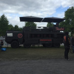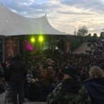 In jedem Falle, erst einmal hieß es nun etwas Merch bestaunen. Also zurück vom Platz und die wenigen, aber gut besuchten Stände analysieren. Neben einigen Patches der üblichen Farcon fand sich aber tatsächlich auch ein Stand der Gitarren-, Bass- und AMP-Schmiede Fender. Dort konnten wir mit Kopfhörern, Gitarre und einem Fender DSP AMP ausgestattet ungeachtet der meist alkoholgeschwängerten und wenig Staubfreien Natur von Metal-Festivals eine Runde Gitarren und AMP abchecken und mit ENSIFERUMs „Twilight Tavern“ und BLACK SABBATHs „Falling Of The Edge Of The World“ austesten. Coole Abwechslung.