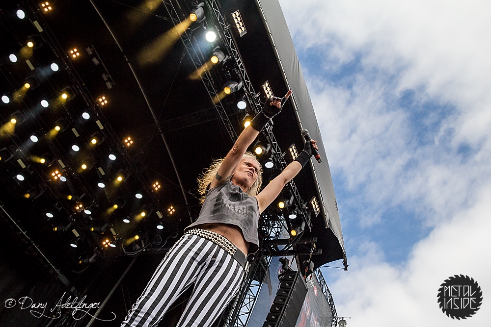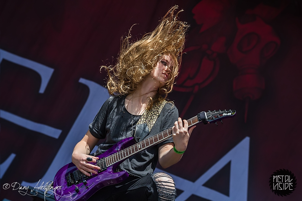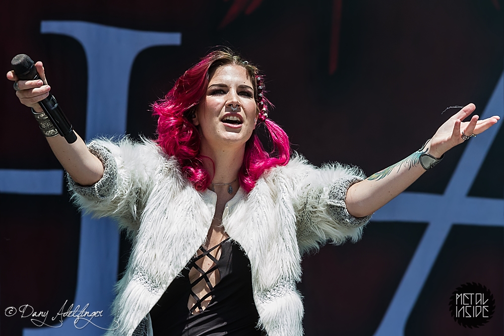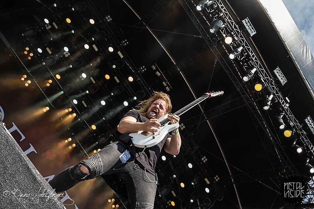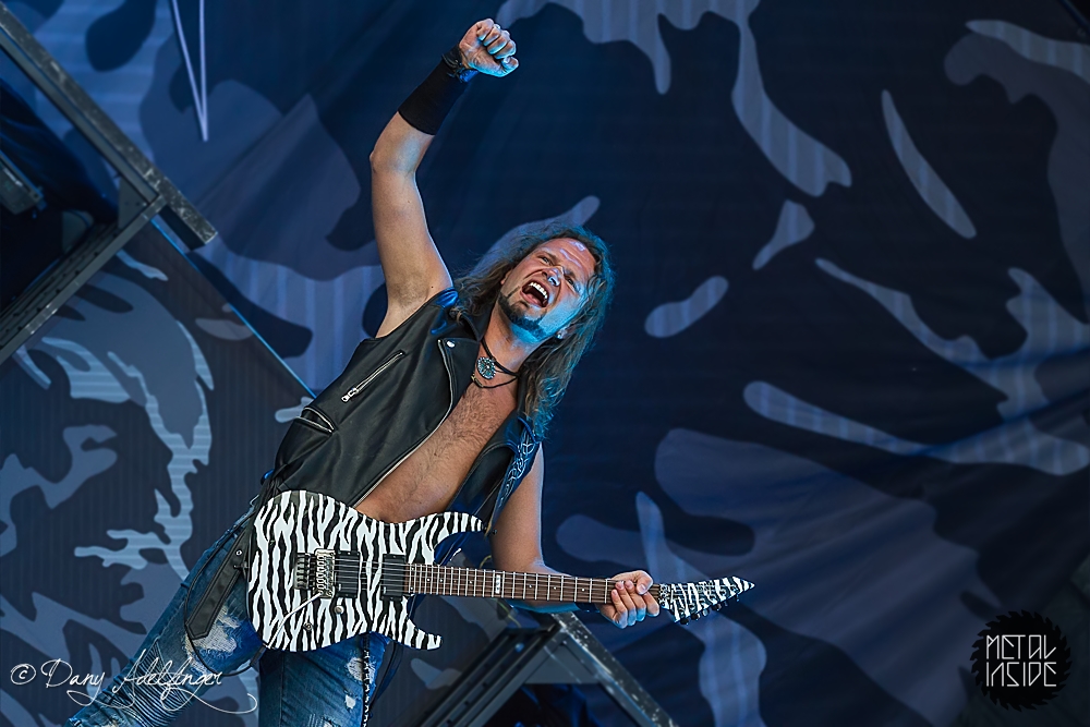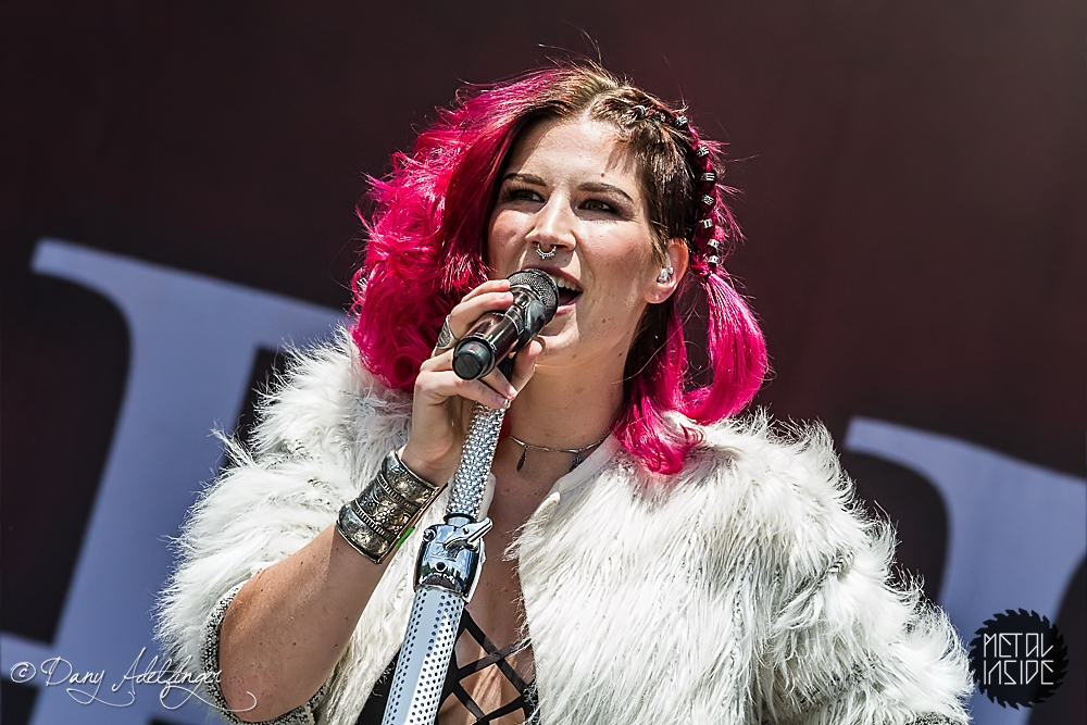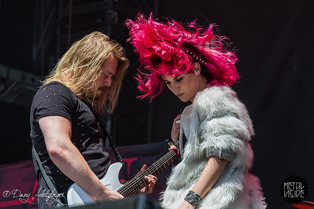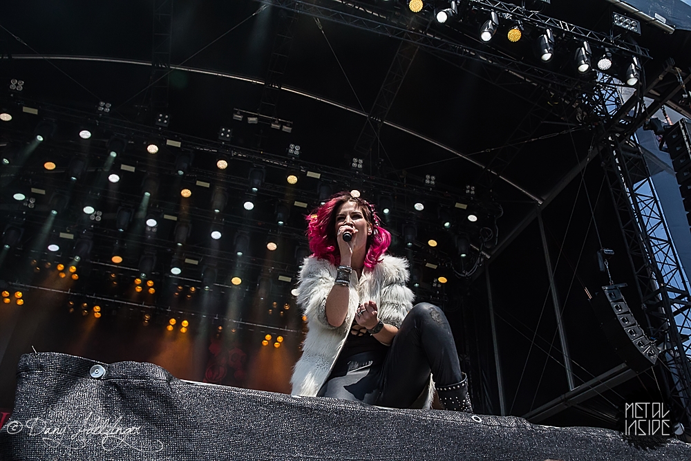 Mit DELAIN kam dann anschließend Female Fronted Metal der neuen Generation zum Zuge. Und im Falle DELAIN’s ist dieser ungleich poppiger. Obwohl die Sonne in Balingen zum ersten Mal so richtig ihre Kraft zeigte, hüpfte Charlotte Wessels die ganze Show über in einem weißen, an einen Yeti gemahnenden, Kunstpelz durch die Gegend. Da schwitzte man ja vom Zusehen. DELAIN’s Musik ist melodisch, eingängig, gefällig aber auch wenig metallisch. Da reichen ein paar harte Gitarren nicht aus. Trotz der vordergründigen Eingängigkeit bleibt da leider wenig hängen. Ausnahme der Regel: der „Hit“ „We Are The Others“. Selbiger frisst sich unbarmherzig in die Gehörgänge und verbleibt dort auch. Alles in allem ein solider Auftritt, dem die Langzeitwirkung etwas abging.