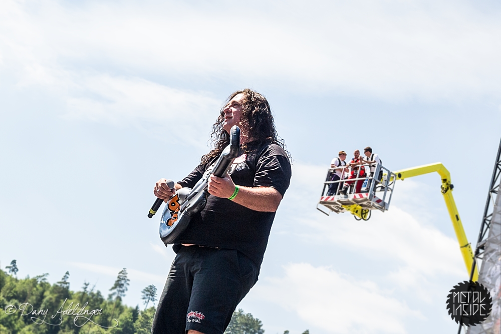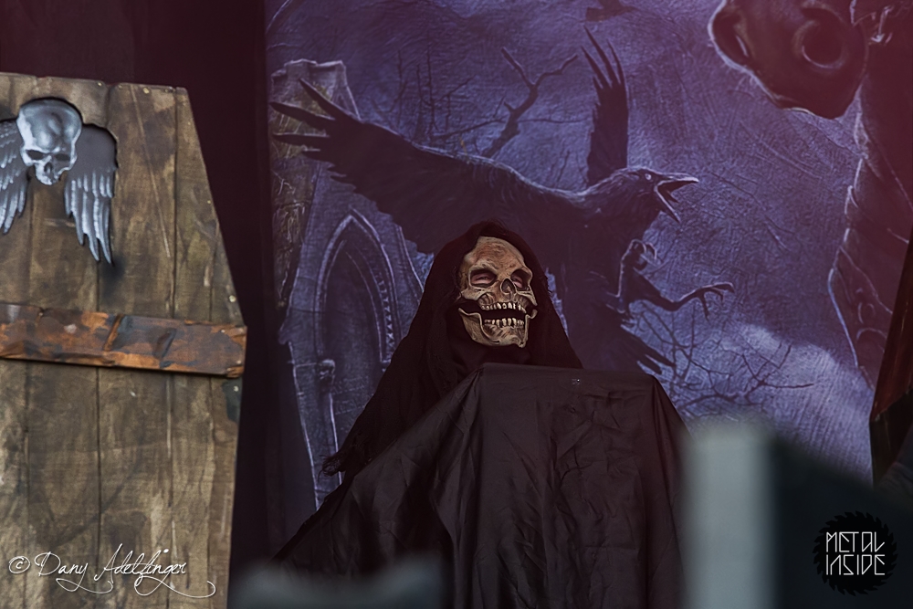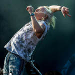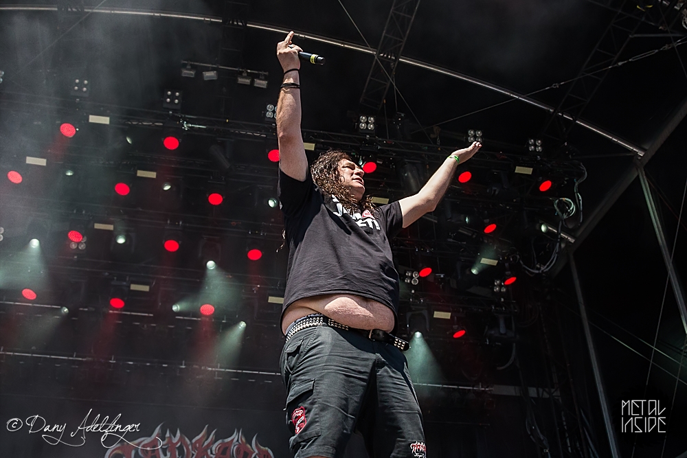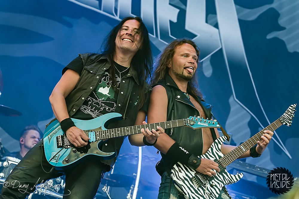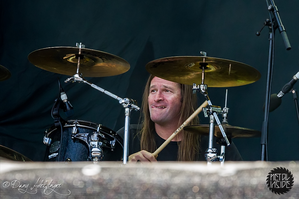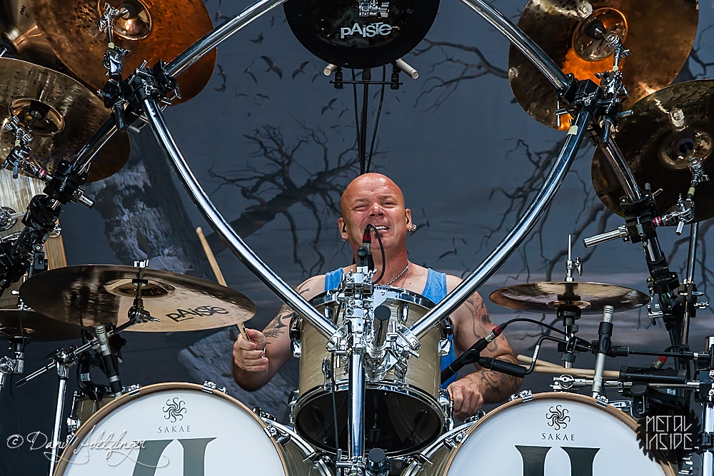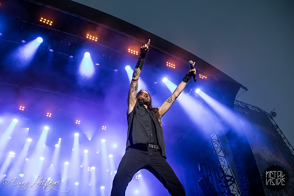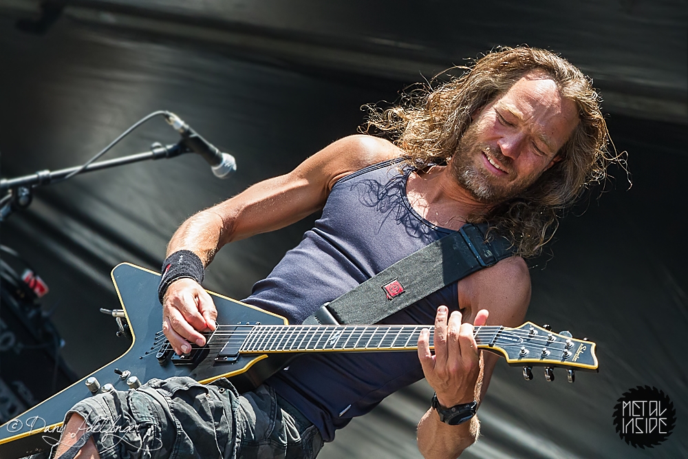 Mit DELAIN kam dann anschließend Female Fronted Metal der neuen Generation zum Zuge. Und im Falle DELAIN’s ist dieser ungleich poppiger. Obwohl die Sonne in Balingen zum ersten Mal so richtig ihre Kraft zeigte, hüpfte Charlotte Wessels die ganze Show über in einem weißen, an einen Yeti gemahnenden, Kunstpelz durch die Gegend. Da schwitzte man ja vom Zusehen. DELAIN’s Musik ist melodisch, eingängig, gefällig aber auch wenig metallisch. Da reichen ein paar harte Gitarren nicht aus. Trotz der vordergründigen Eingängigkeit bleibt da leider wenig hängen. Ausnahme der Regel: der „Hit“ „We Are The Others“. Selbiger frisst sich unbarmherzig in die Gehörgänge und verbleibt dort auch. Alles in allem ein solider Auftritt, dem die Langzeitwirkung etwas abging.