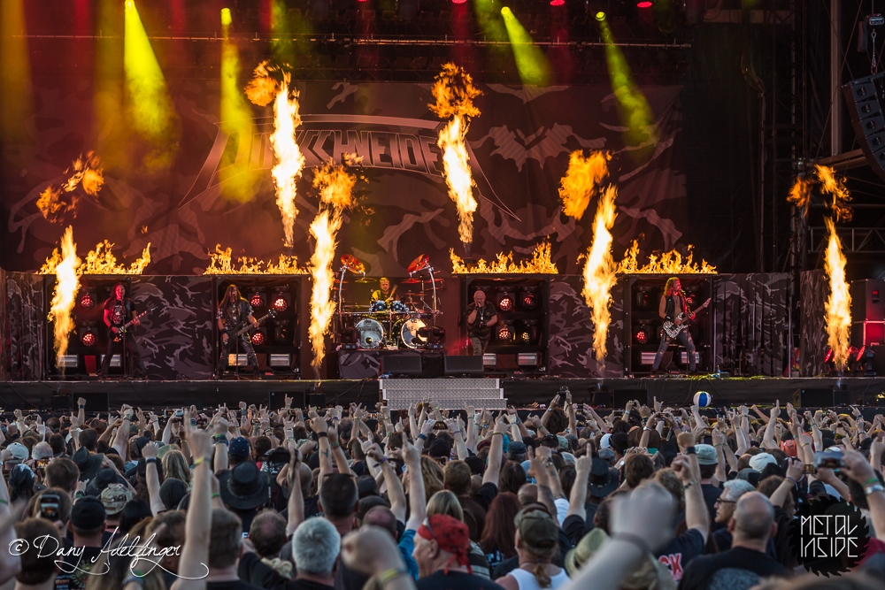 Uns Udo verabschiedet sich von seiner ACCEPT Vergangenheit. Das tut er nun schon einige Monate auf Tour sehr erfolgreich und es ist auch noch kein Ende abzusehen. In Balingen trat er naturgemäß mit einem gekürzten Set auf, denn für sein 2-stündiges Mammutprogramm, was er normalerweise abruft, war heute kein Platz. Umso komprimierter kam das alles nochmal herüber. Angefangen bei „Starlight“, über „Midnight Mover“ und „Princess Of The Dawn“ hin zu „Fast As A Shark“ und „Balls To The Wall“ gab es NUR Hits, welche die Menge begeistert mitsang. Udo selbst ist topfit und gut bei Stimme und dirigiert souverän durch sein ACCEPT-Vermächtnis. Seine U.D.O. Hintermannschaft hat augenscheinlich auch richtig Bock und so lieferten DIRKSCHNEIDER perfektes Metal-Entertainment mit Gänsehautgarantie. Wirklich Wahnsinn, wie viele unsterbliche Klassiker ACCEPT in den Jahren 80-84 geschrieben haben. Hätte sogar als Headliner gut funktioniert.