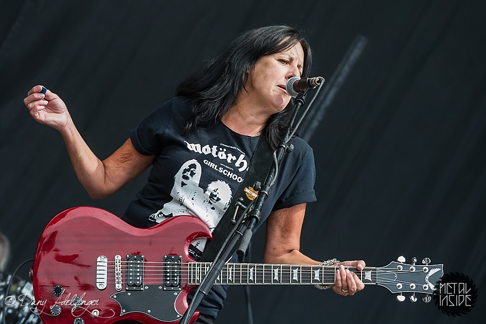 Am Samstag ging es für uns mit GIRLSCHOOL los. Man muss sagen, dass die „weiblichen MOTÖRHEAD“ trotz der frühen Mittagsstunde gut ankamen und mit ihren Klassikern „Hit And Run“ oder „C‘me On, Let’s Go“ so einige zu motivieren wussten. Leider hatte ich auch hier wieder das gleiche Problem, welches ich schon seit Jahren mit GIRLSCHOOL habe: Einerseits sind mir die Ladys zu punkig simpel und andererseits zu zahm, um das durch Wildheit auszugleichen. Sie haben meinen vollsten Respekt für das, was sie in ihrer langen Karriere geleistet haben, und Fans hatten sicherlich auch heute wieder ihren Spaß, selbiger werde ich jedoch nicht mehr werden.