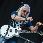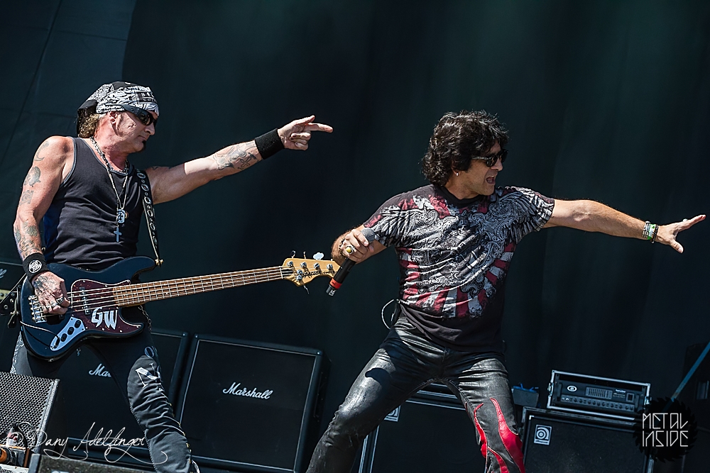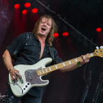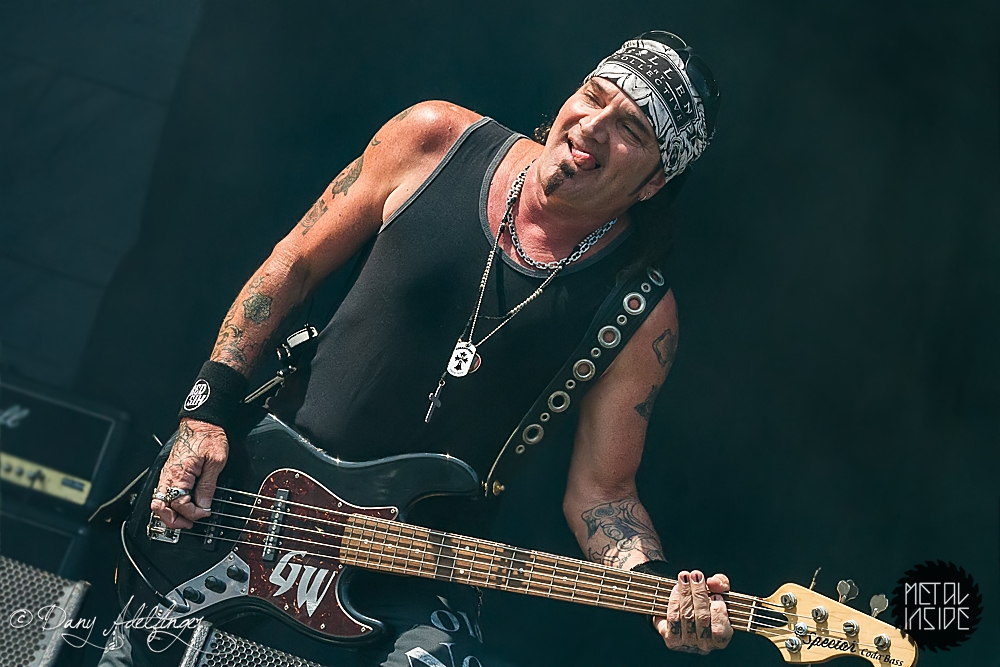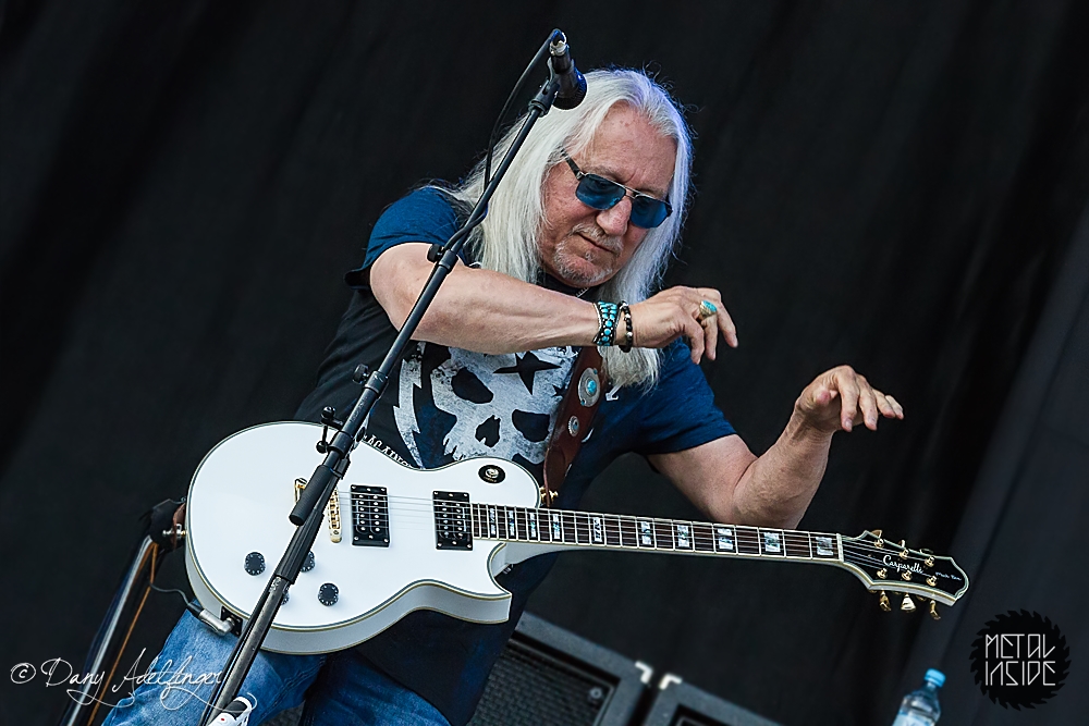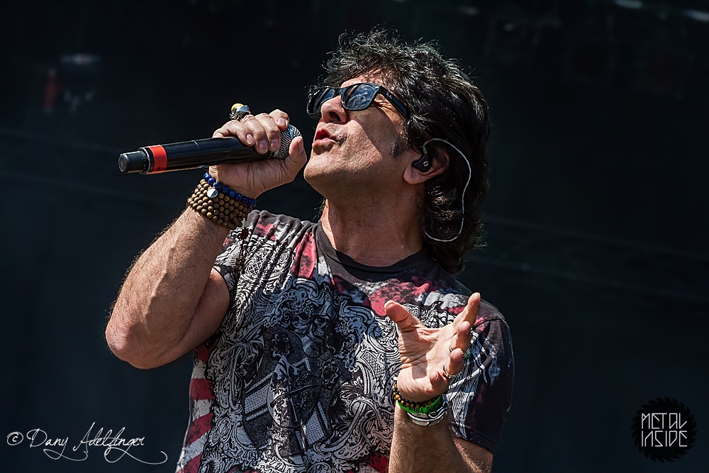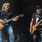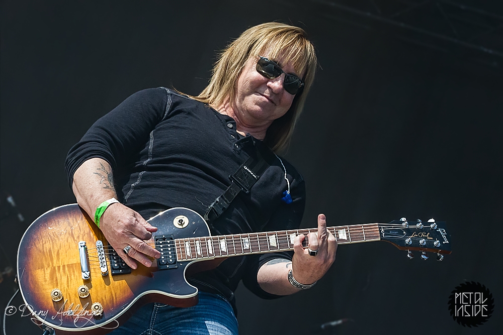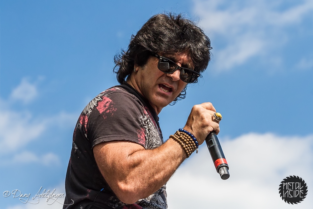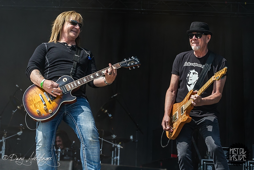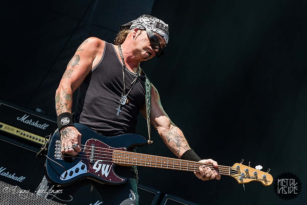 Mit den Ami Hard Rockern GREAT WHITE folgte ein weiteres Mal ein krasser Kontrast. Aber in Balingen scheinen diese Brüche immer wieder wunderbar zu funktionieren. Es scheint ja im Moment stark in Mode zu sein, dass sich alternde Ami-Hard Rock Veteranen in die Haare bekommen und sich dann verschiedene Varianten der alten Stammformation bilden und konkurrierend durch die Weltgeschichte tingeln (prominentestes Beispiel: RATT aka Bobby Blotzer’s RATT aka Juan Crouciers RATT usw.). Auch im Falle GREAT WHITE’s gibt es einerseits die Formation um Originalsänger Jack Russel und die heute hier zu bestaunende Version um Gründungmitglied Mark Kendall (Gitarre). An Russel-Ersatz Terry Ilous gab es wenig zu mäkeln (mal abgesehen von seinem Perückengeschmack), denn er schaffte es sowohl nah am Original zu bleiben als auch den Songs trotzdem seinen eigenen Stempel aufzudrücken. Bluesiger Hard Rock scheint in Balingen sehr gut anzukommen und mittlerweile hatte sich auch die Sonne auf kalifornisches Niveau eingependelt und dazu passte die Musik GREAT WHITE’s wie die Faust aufs Auge. „Lady Redlight“, „Save Your Love“ oder „Rock Me“ kamen wunderbar an. Naturgemäß aber erntete der große Bandhit „Once Bitten…Twice Shy“ am Ende des Sets die besten Reaktionen. Da der Anteil an 80er „Poser-Rocker“ in Balingen traditionell besonders hoch ist, votiere ich für nächstes Jahr mal vorsichtig für Acts wie CINDERELLA, VIXEN, WARRANT oder POISON. Könnte Spaß machen. Genauso wie GREAT WHITE an diesem Nachmittag.