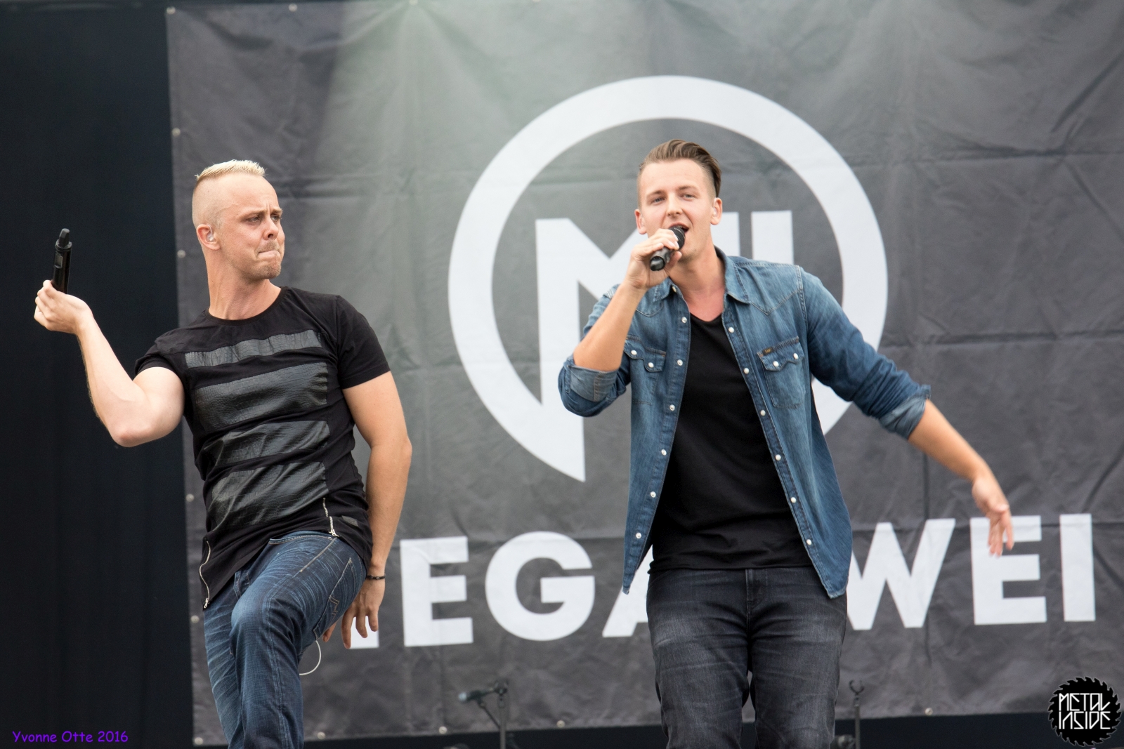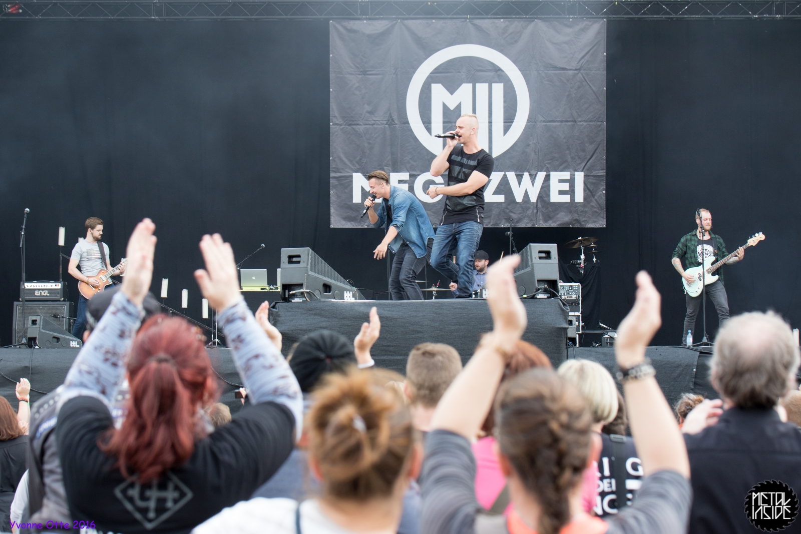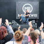 Recht früh, noch vor 18 Uhr gingen MEGAZWEI auf die Bühne. Open-Air hat den Nachteil, dass meistens um 22 Uhr die Veranstaltung zu Ende sein muss, weil die Lärmschutzbestimmungen die Anwohner schützen wollen. Mag schließlich nicht jeder die Bands, die Bands, die im Sparkassenpark auftreten, oder andere haben Kinder oder müssen am nächsten Tag arbeiten. Ist also schon sinnvoll, zum Nachteil für die Bands, die bereits so früh auftreten müssen, weil es wirklich noch sehr leer ist. So auch bei MEGAZWEI. Die haben es aber mit Humor genommen, ebenso die Tatsache, dass wohl niemand die äußerst sympathische Band kannte. Trotzdem hatten besonders die beiden Sänger jede Menge Spaß und UNHEILIG supporten zu dürfen ist für so eine neue Band natürlich ein ganz großes Los. Musikalisch und von der Show her, kann man sie ein bisschen mit IRIE REVOLTES vergleichen, nur eben auf Deutsch. Nach gut einer halben Stunde musste MEGAZWEI das Feld räumen, damit BE ONE Platz hatten.