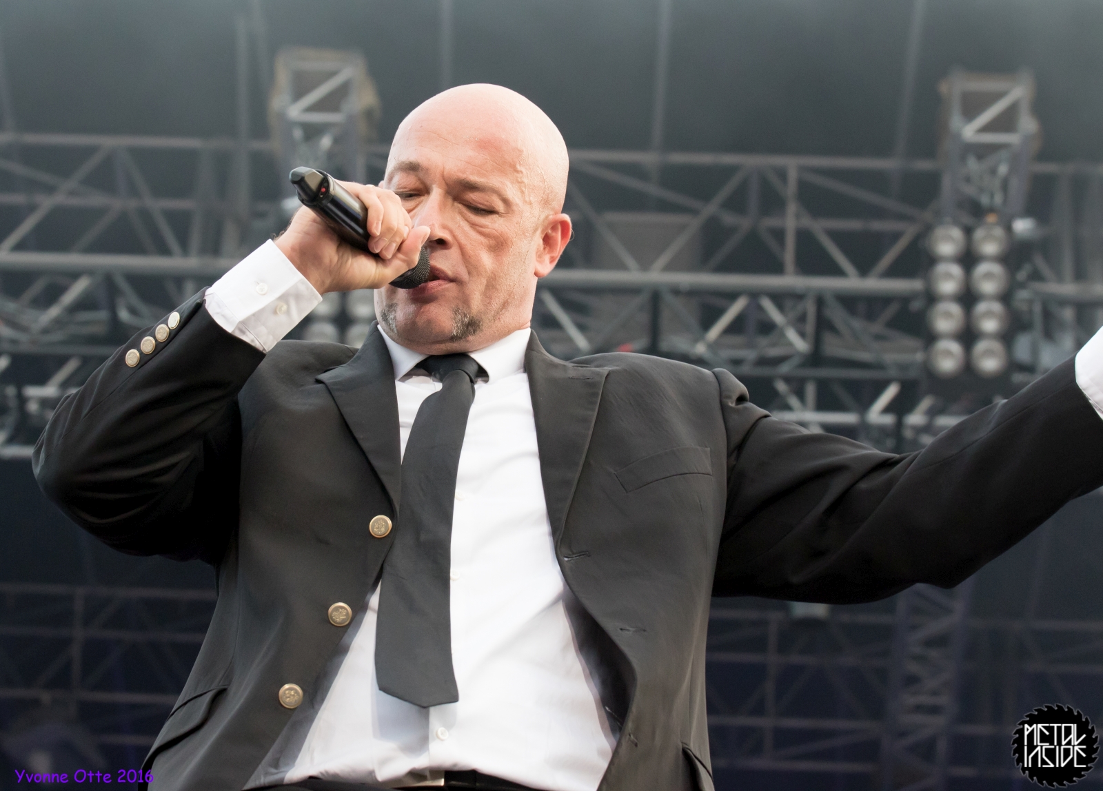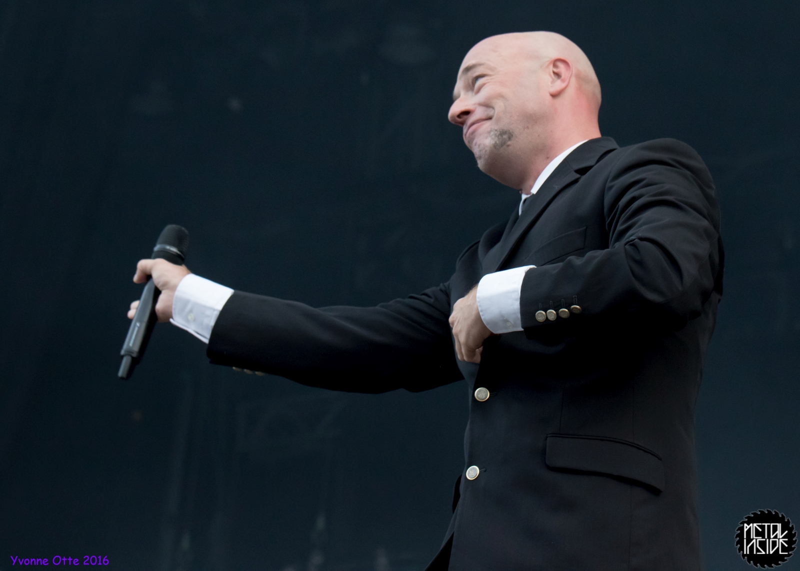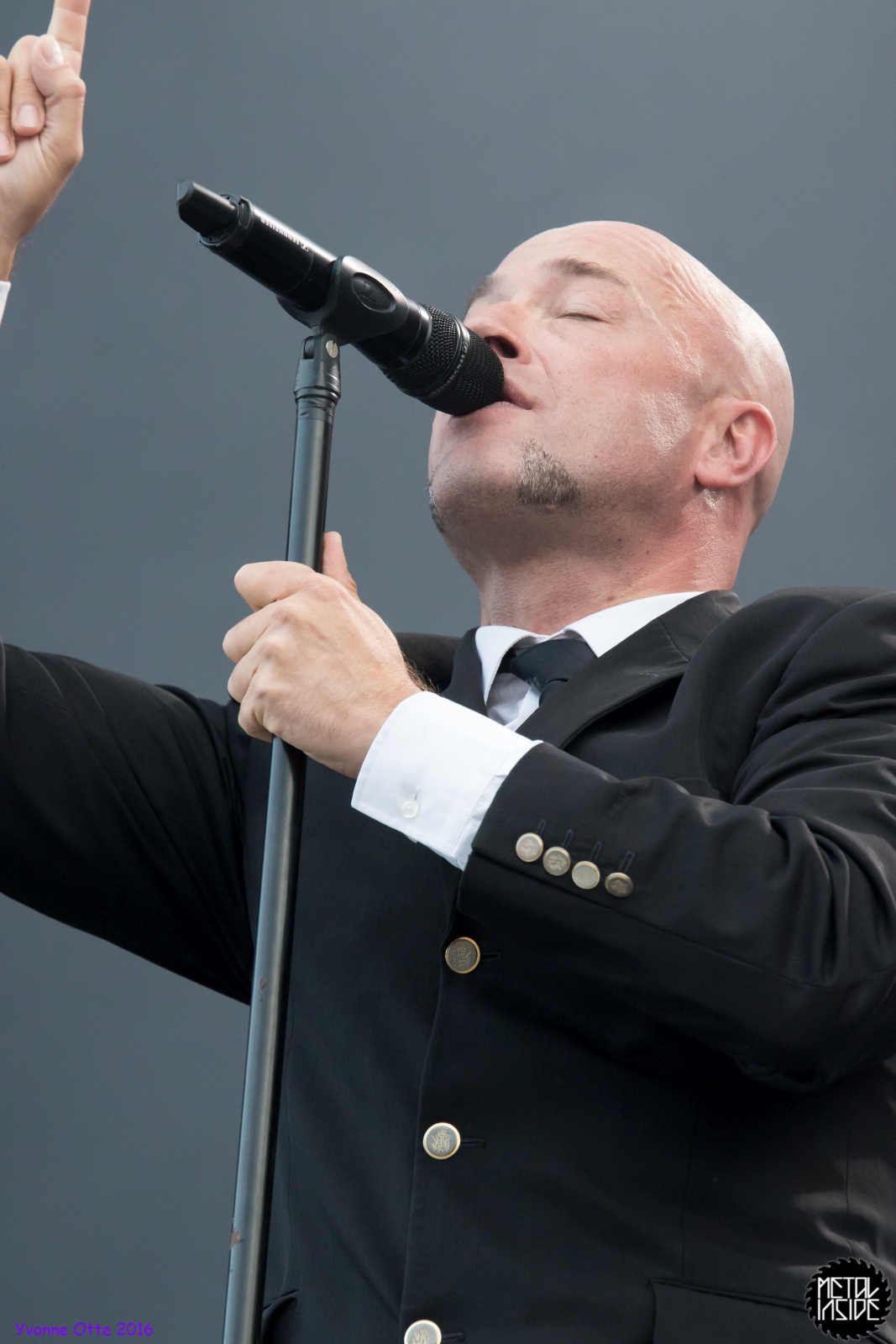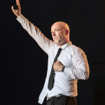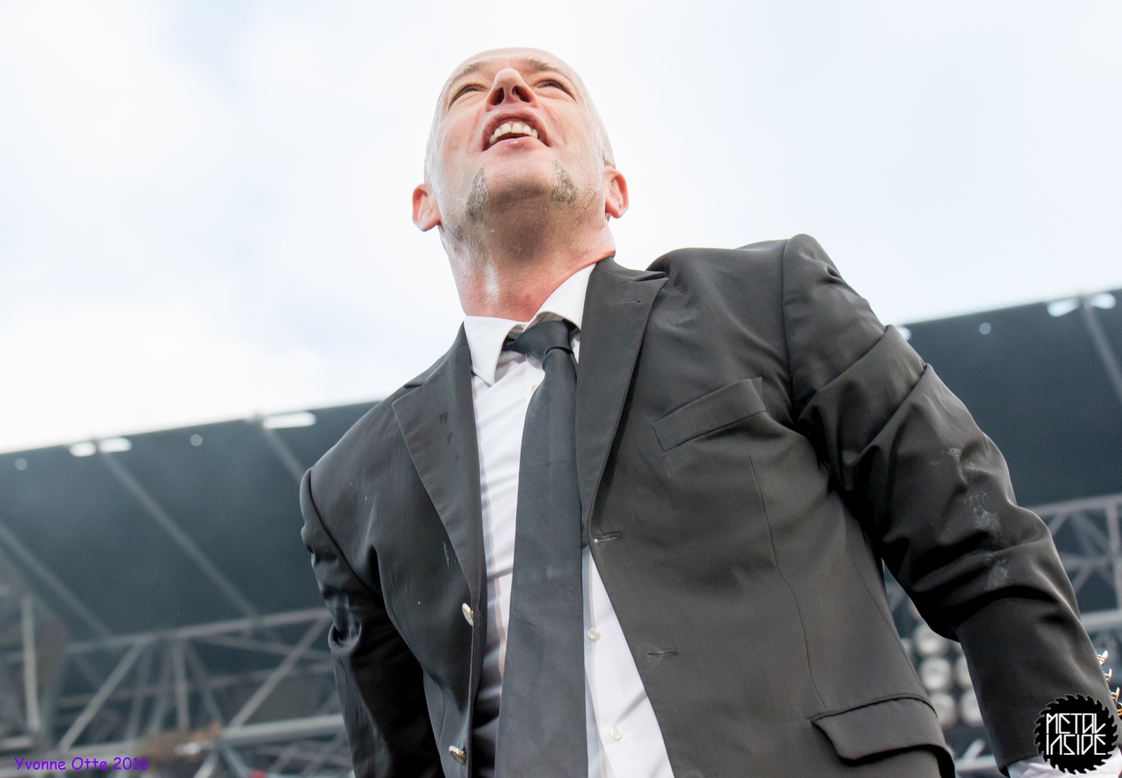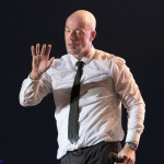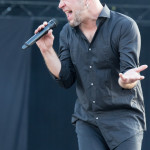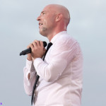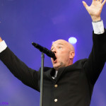 Jetzt sollte es aber wirklich mit UNHEILIG weiter gehen. Nach eines recht langen Intros stürmte der Graf auf die Bühne und die Menge war außer sich! So sollte es jetzt knapp zwei Stunden weiter gehen. Ruhige Momente gab es nur bei den wenigen Balladen, oder wenn der Graf eine seiner sehr persönlichen und auf die Kariere rückblickenden Ansagen gemacht hat. Ansonsten stand weder der Graf still, noch das Publikum. Eine unglaubliche Energie ging von UNHEILIG auf das Publikum rüber und hat einfach jeden mitgerissen. Schön zu beobachten war, dass der viele Erfolg, die der Graf zweifellos die letzten sechs Jahre hatte, sich nicht negativ auf die Show ausgewirkt hat. Oft beobachtet man, dass aus Bands, die früher sehr spontan und fannah waren, „Stars“ geworden sind, die nur noch ihr Programm abspielen und die Konzerte überhaupt nicht mehr persönlich sind. Natürlich geht ein bisschen vom Persönlichsein immer weg, wenn die Hallen größer werden, aber wer UNHEILIG 2010, zu Beginn des (kommerziellen) Erfolges gesehen hat, und jetzt, der wird keinen Unterschied bemerkt haben. Der Graf hat immer wieder den Leuten zugewunken und hat immer wieder kleine Herzchen mit seinen Händen geformt, war bemüht zu allen Seiten gleichviel zu gehen, damit jeder ihn auch mal von nahen sehen könnte. Sowas sieht man wirklich sehr selten. Man hat sich nicht auf einen Open-Air mit 9.000 Leuten gefühlt, sondern von UNHELIG’s Art her eher wie in einem kleinen Club, wo man wirklich noch Blickkontakt zu der Band hat und die Band einen auch sehen kann. Schön war auch zu sehen, dass UNHEILIG eine Band für Jung und Alt ist. Von 5 – schätzungsweise über70 war wirklich alles dabei und vom Alter her so gemischtes Publikum hat man nicht so sehr oft. UNHEILIG galt immer als sehr kinderfreundlich und oft hatten Eltern mit Kinder einen separaten Bereich, damit sie nicht umgestoßen, oder Ähnliches, werden. Ja, natürlich kann man sagen, dass so kleine Kinder nichts auf Konzerte zu suchen haben, aber wo ist das Problem? Für Kinder ist sowas ein tolles Erlebnis. Etwas, was sie wohl nie mehr vergessen werden und in einem Land, was so kinderunfreundlich ist wie Deutschland und wo die Eltern eh immer die Dummen sind, egal, was sie machen, ist es schön zu sehen, dass es auch noch andere Beispiele gibt, wo Familien herzlich willkommen sind. So manche laszive Dancemoves des Grafens waren aber eher 18+,aber gut, sollte ja für jede Altersstufe etwas dabei sein. Natürlich ging bei der Zugabe und bei „Geboren Um Zu Leben“ die Menge nochmal richtig ab. Als bei „der Vorhang Fällt“ der Graf dazu aufgerufen hat, dass doch bitte alle etwas was leuchtet hochhalten sollten, hat man richtig Gänsehaut bekommen. Der Sparkassenpark sah mega aus! Ungewöhnlich natürlich, dass mit einer Ballade das Konzert beendet wird, aber bei einer Abschiedstour wohl nicht verwunderlich. Sehr bewegende Worte auch vom Grafen, bevor er sein letztes Lied für diesen Abend angestimmt hatte. Man hat sich persönlich angesprochen gefühlt und man hatte wirklich auch das Gefühl, dass es ehrliche Worte sind, die vom Herzen kamen.