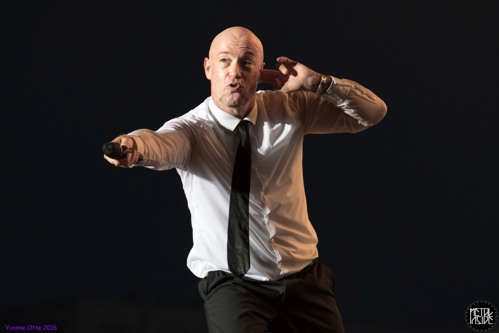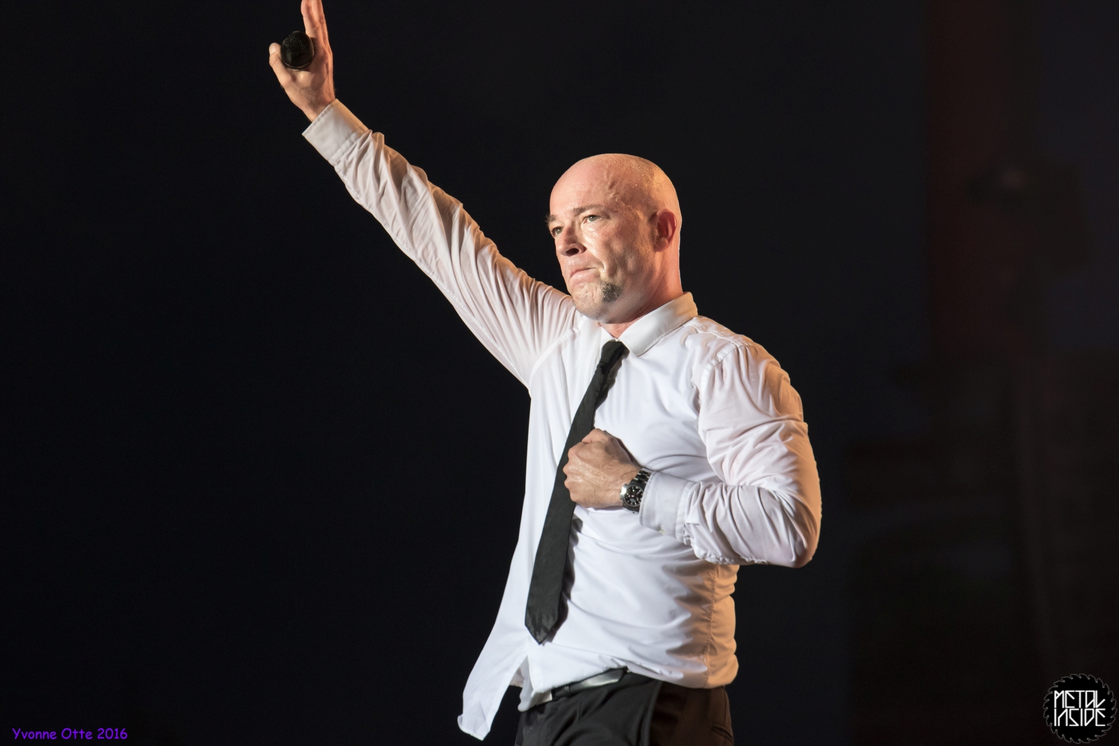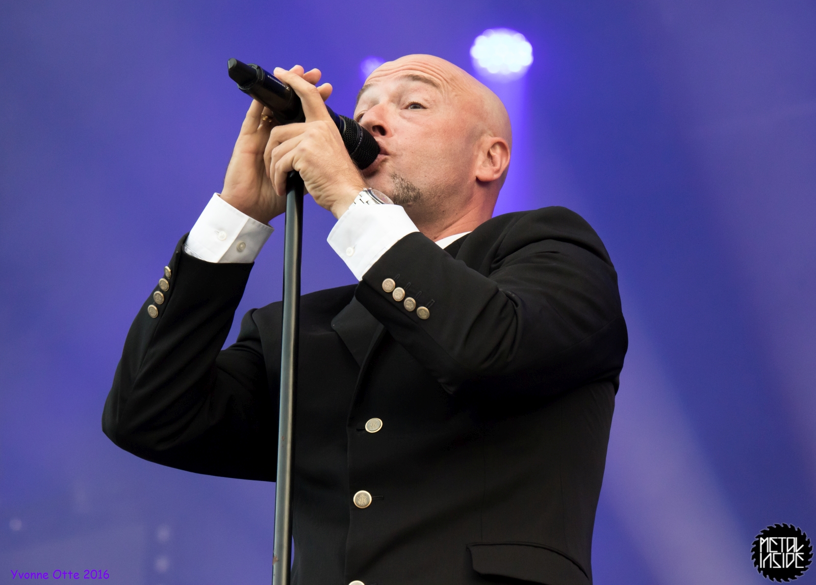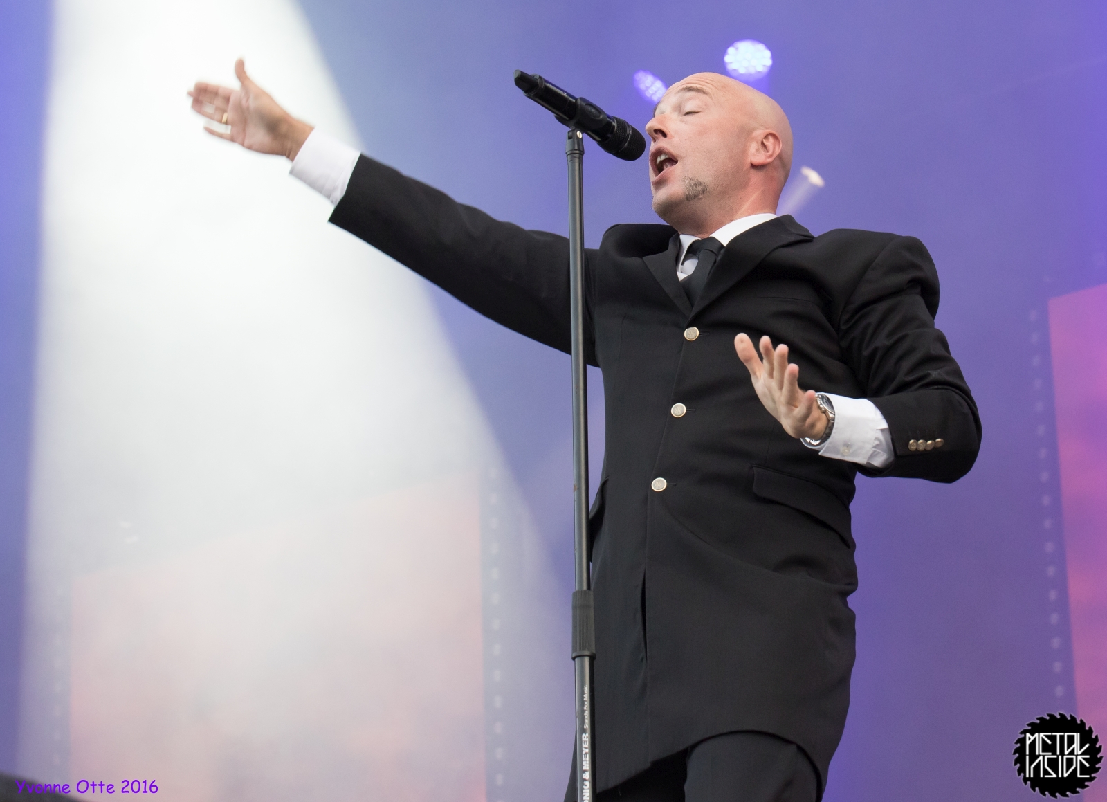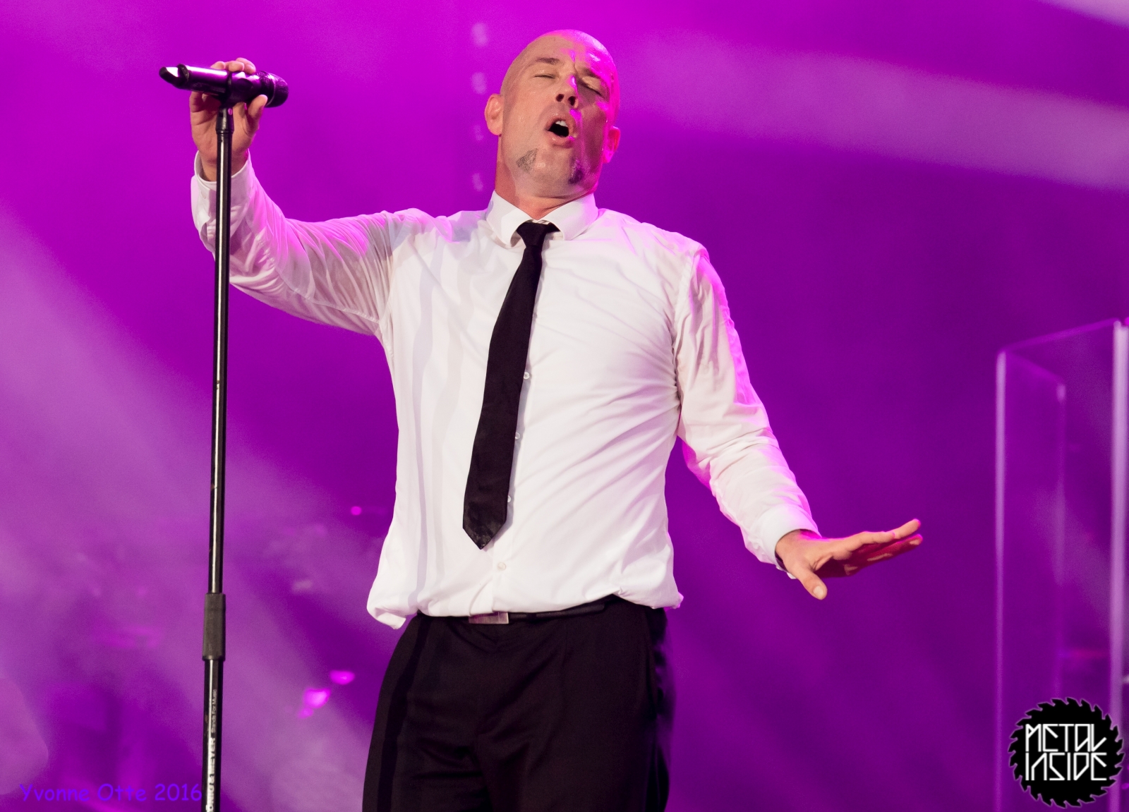 Jetzt sollte es aber wirklich mit UNHEILIG weiter gehen. Nach eines recht langen Intros stürmte der Graf auf die Bühne und die Menge war außer sich! So sollte es jetzt knapp zwei Stunden weiter gehen. Ruhige Momente gab es nur bei den wenigen Balladen, oder wenn der Graf eine seiner sehr persönlichen und auf die Kariere rückblickenden Ansagen gemacht hat. Ansonsten stand weder der Graf still, noch das Publikum. Eine unglaubliche Energie ging von UNHEILIG auf das Publikum rüber und hat einfach jeden mitgerissen. Schön zu beobachten war, dass der viele Erfolg, die der Graf zweifellos die letzten sechs Jahre hatte, sich nicht negativ auf die Show ausgewirkt hat. Oft beobachtet man, dass aus Bands, die früher sehr spontan und fannah waren, „Stars“ geworden sind, die nur noch ihr Programm abspielen und die Konzerte überhaupt nicht mehr persönlich sind. Natürlich geht ein bisschen vom Persönlichsein immer weg, wenn die Hallen größer werden, aber wer UNHEILIG 2010, zu Beginn des (kommerziellen) Erfolges gesehen hat, und jetzt, der wird keinen Unterschied bemerkt haben. Der Graf hat immer wieder den Leuten zugewunken und hat immer wieder kleine Herzchen mit seinen Händen geformt, war bemüht zu allen Seiten gleichviel zu gehen, damit jeder ihn auch mal von nahen sehen könnte. Sowas sieht man wirklich sehr selten. Man hat sich nicht auf einen Open-Air mit 9.000 Leuten gefühlt, sondern von UNHELIG’s Art her eher wie in einem kleinen Club, wo man wirklich noch Blickkontakt zu der Band hat und die Band einen auch sehen kann. Schön war auch zu sehen, dass UNHEILIG eine Band für Jung und Alt ist. Von 5 – schätzungsweise über70 war wirklich alles dabei und vom Alter her so gemischtes Publikum hat man nicht so sehr oft. UNHEILIG galt immer als sehr kinderfreundlich und oft hatten Eltern mit Kinder einen separaten Bereich, damit sie nicht umgestoßen, oder Ähnliches, werden. Ja, natürlich kann man sagen, dass so kleine Kinder nichts auf Konzerte zu suchen haben, aber wo ist das Problem? Für Kinder ist sowas ein tolles Erlebnis. Etwas, was sie wohl nie mehr vergessen werden und in einem Land, was so kinderunfreundlich ist wie Deutschland und wo die Eltern eh immer die Dummen sind, egal, was sie machen, ist es schön zu sehen, dass es auch noch andere Beispiele gibt, wo Familien herzlich willkommen sind. So manche laszive Dancemoves des Grafens waren aber eher 18+,aber gut, sollte ja für jede Altersstufe etwas dabei sein. Natürlich ging bei der Zugabe und bei „Geboren Um Zu Leben“ die Menge nochmal richtig ab. Als bei „der Vorhang Fällt“ der Graf dazu aufgerufen hat, dass doch bitte alle etwas was leuchtet hochhalten sollten, hat man richtig Gänsehaut bekommen. Der Sparkassenpark sah mega aus! Ungewöhnlich natürlich, dass mit einer Ballade das Konzert beendet wird, aber bei einer Abschiedstour wohl nicht verwunderlich. Sehr bewegende Worte auch vom Grafen, bevor er sein letztes Lied für diesen Abend angestimmt hatte. Man hat sich persönlich angesprochen gefühlt und man hatte wirklich auch das Gefühl, dass es ehrliche Worte sind, die vom Herzen kamen.