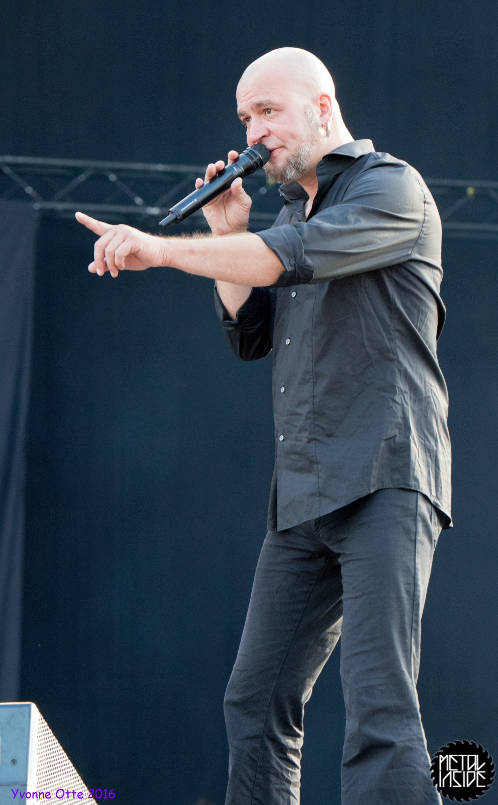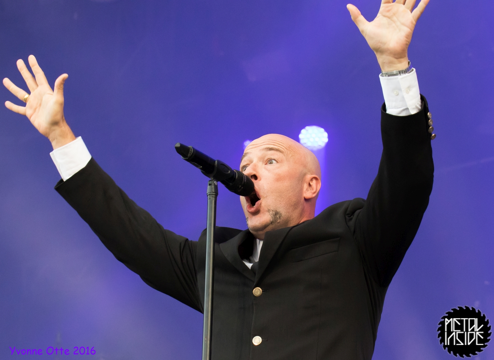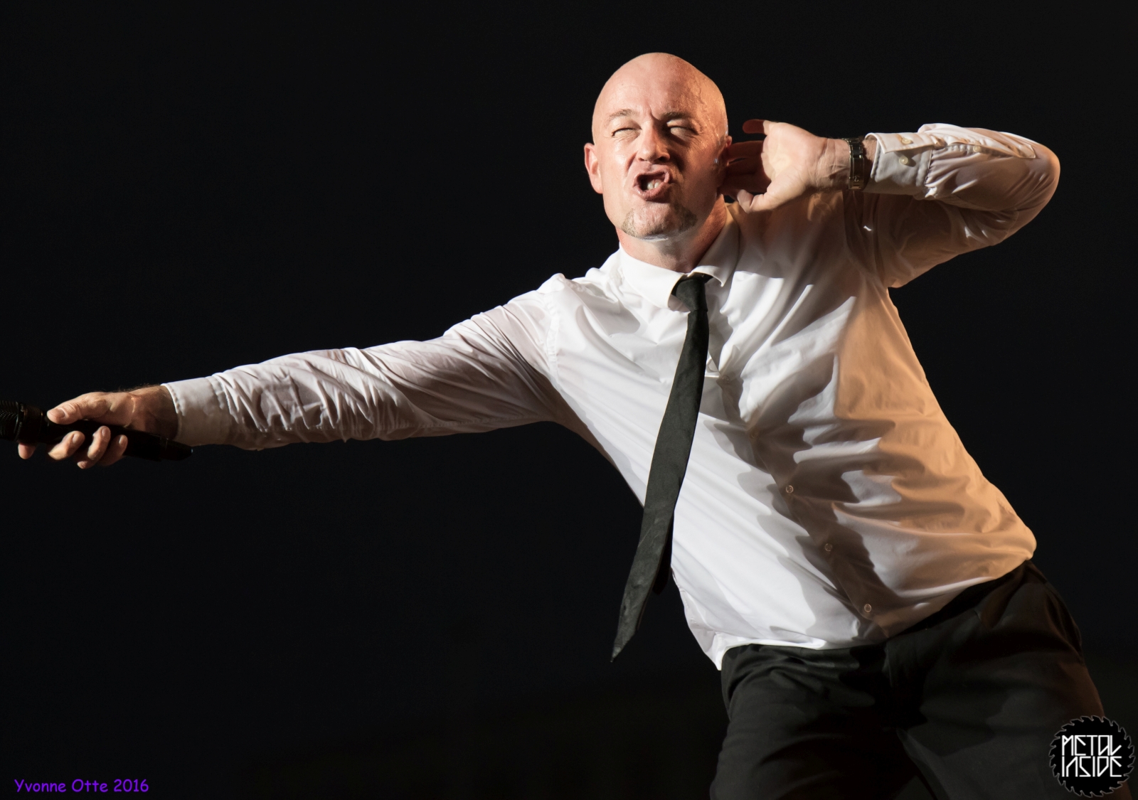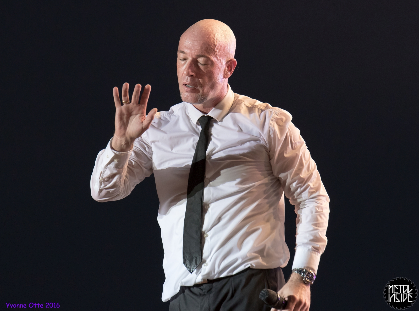 Jetzt sollte es aber wirklich mit UNHEILIG weiter gehen. Nach eines recht langen Intros stürmte der Graf auf die Bühne und die Menge war außer sich! So sollte es jetzt knapp zwei Stunden weiter gehen. Ruhige Momente gab es nur bei den wenigen Balladen, oder wenn der Graf eine seiner sehr persönlichen und auf die Kariere rückblickenden Ansagen gemacht hat. Ansonsten stand weder der Graf still, noch das Publikum. Eine unglaubliche Energie ging von UNHEILIG auf das Publikum rüber und hat einfach jeden mitgerissen. Schön zu beobachten war, dass der viele Erfolg, die der Graf zweifellos die letzten sechs Jahre hatte, sich nicht negativ auf die Show ausgewirkt hat. Oft beobachtet man, dass aus Bands, die früher sehr spontan und fannah waren, „Stars“ geworden sind, die nur noch ihr Programm abspielen und die Konzerte überhaupt nicht mehr persönlich sind. Natürlich geht ein bisschen vom Persönlichsein immer weg, wenn die Hallen größer werden, aber wer UNHEILIG 2010, zu Beginn des (kommerziellen) Erfolges gesehen hat, und jetzt, der wird keinen Unterschied bemerkt haben. Der Graf hat immer wieder den Leuten zugewunken und hat immer wieder kleine Herzchen mit seinen Händen geformt, war bemüht zu allen Seiten gleichviel zu gehen, damit jeder ihn auch mal von nahen sehen könnte. Sowas sieht man wirklich sehr selten. Man hat sich nicht auf einen Open-Air mit 9.000 Leuten gefühlt, sondern von UNHELIG’s Art her eher wie in einem kleinen Club, wo man wirklich noch Blickkontakt zu der Band hat und die Band einen auch sehen kann. Schön war auch zu sehen, dass UNHEILIG eine Band für Jung und Alt ist. Von 5 – schätzungsweise über70 war wirklich alles dabei und vom Alter her so gemischtes Publikum hat man nicht so sehr oft. UNHEILIG galt immer als sehr kinderfreundlich und oft hatten Eltern mit Kinder einen separaten Bereich, damit sie nicht umgestoßen, oder Ähnliches, werden. Ja, natürlich kann man sagen, dass so kleine Kinder nichts auf Konzerte zu suchen haben, aber wo ist das Problem? Für Kinder ist sowas ein tolles Erlebnis. Etwas, was sie wohl nie mehr vergessen werden und in einem Land, was so kinderunfreundlich ist wie Deutschland und wo die Eltern eh immer die Dummen sind, egal, was sie machen, ist es schön zu sehen, dass es auch noch andere Beispiele gibt, wo Familien herzlich willkommen sind. So manche laszive Dancemoves des Grafens waren aber eher 18+,aber gut, sollte ja für jede Altersstufe etwas dabei sein. Natürlich ging bei der Zugabe und bei „Geboren Um Zu Leben“ die Menge nochmal richtig ab. Als bei „der Vorhang Fällt“ der Graf dazu aufgerufen hat, dass doch bitte alle etwas was leuchtet hochhalten sollten, hat man richtig Gänsehaut bekommen. Der Sparkassenpark sah mega aus! Ungewöhnlich natürlich, dass mit einer Ballade das Konzert beendet wird, aber bei einer Abschiedstour wohl nicht verwunderlich. Sehr bewegende Worte auch vom Grafen, bevor er sein letztes Lied für diesen Abend angestimmt hatte. Man hat sich persönlich angesprochen gefühlt und man hatte wirklich auch das Gefühl, dass es ehrliche Worte sind, die vom Herzen kamen.