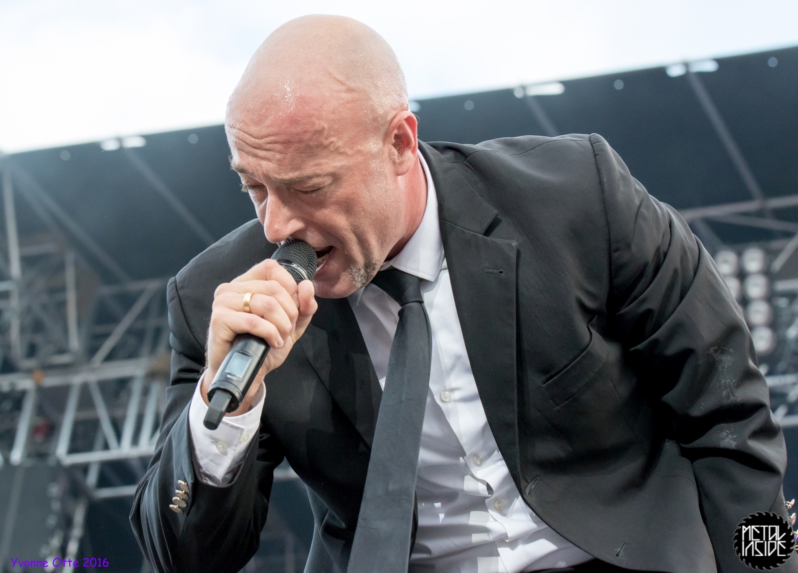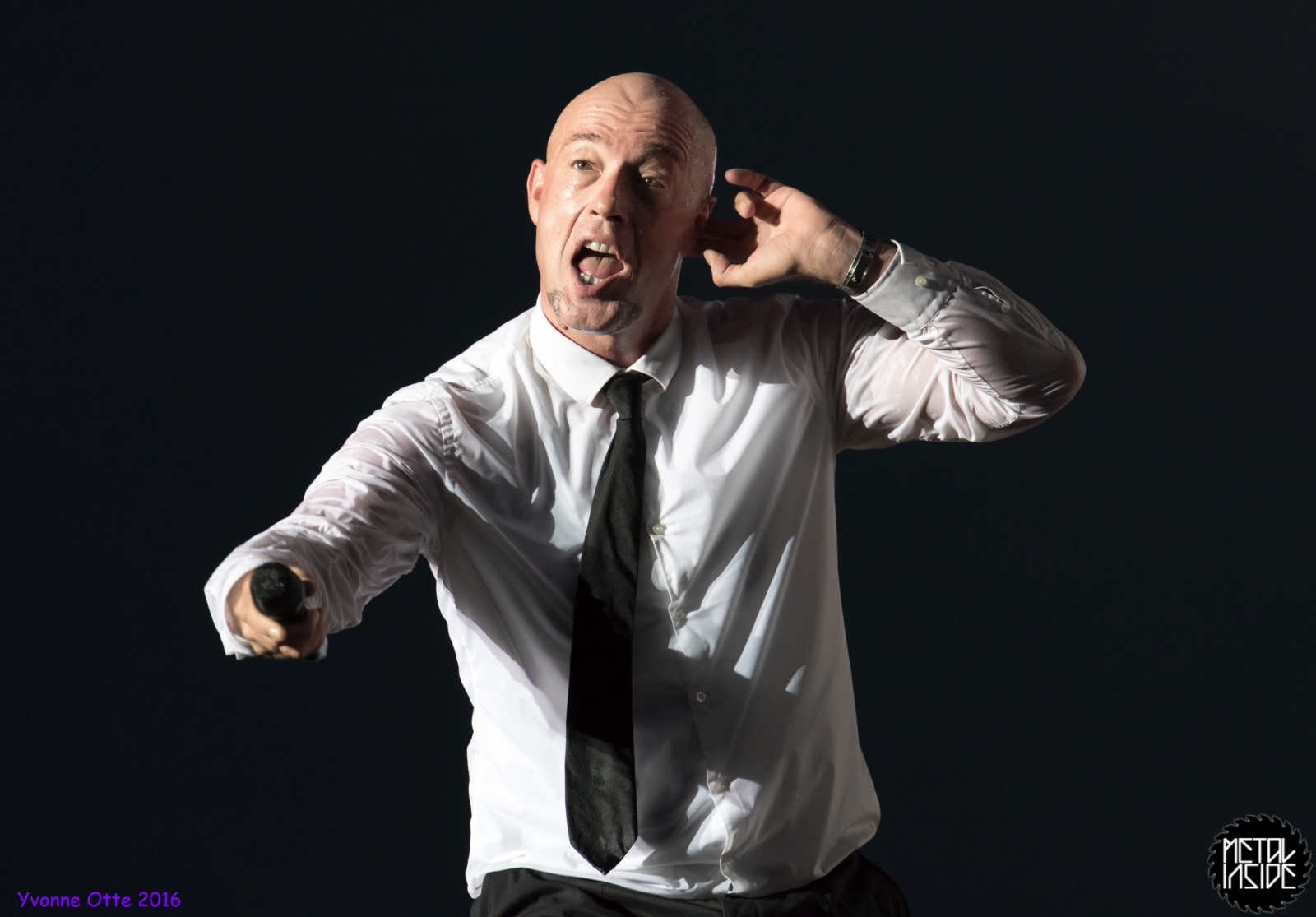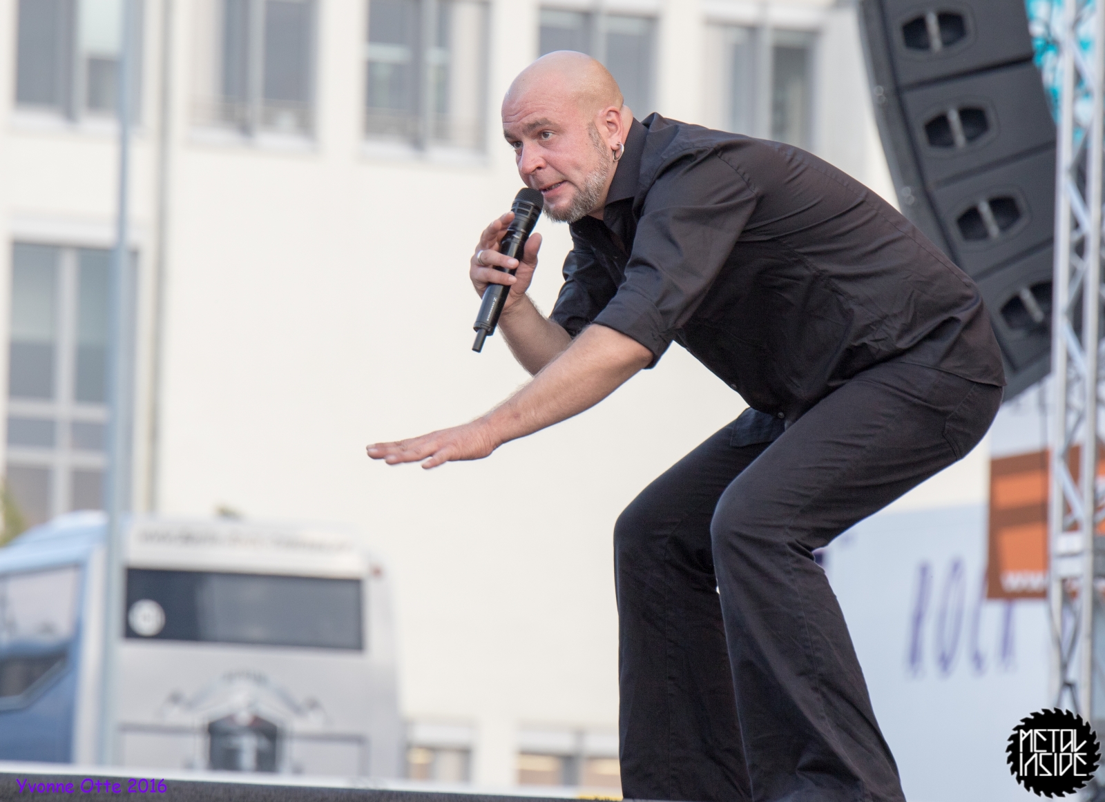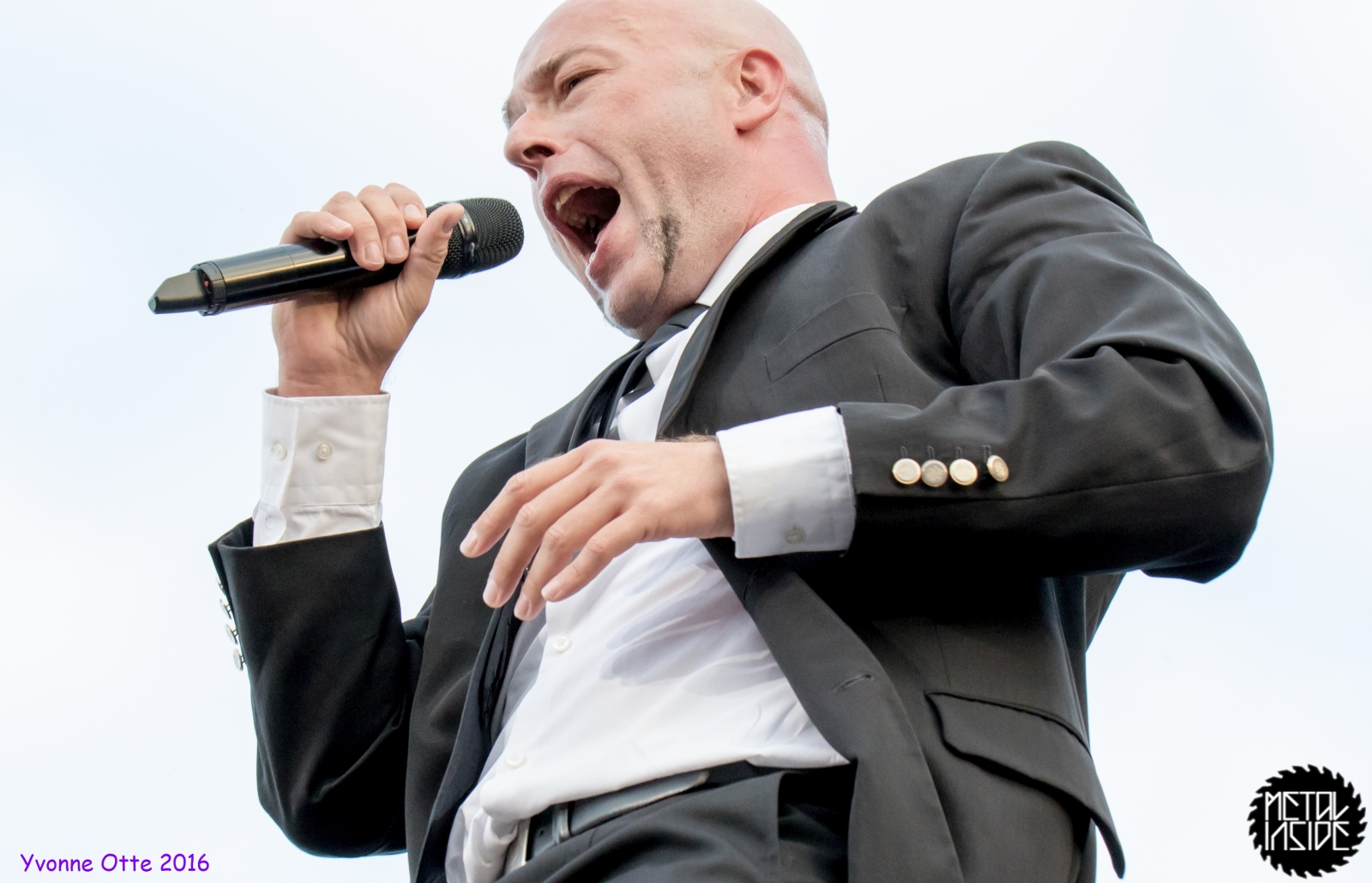 Jetzt sollte es aber wirklich mit UNHEILIG weiter gehen. Nach eines recht langen Intros stürmte der Graf auf die Bühne und die Menge war außer sich! So sollte es jetzt knapp zwei Stunden weiter gehen. Ruhige Momente gab es nur bei den wenigen Balladen, oder wenn der Graf eine seiner sehr persönlichen und auf die Kariere rückblickenden Ansagen gemacht hat. Ansonsten stand weder der Graf still, noch das Publikum. Eine unglaubliche Energie ging von UNHEILIG auf das Publikum rüber und hat einfach jeden mitgerissen. Schön zu beobachten war, dass der viele Erfolg, die der Graf zweifellos die letzten sechs Jahre hatte, sich nicht negativ auf die Show ausgewirkt hat. Oft beobachtet man, dass aus Bands, die früher sehr spontan und fannah waren, „Stars“ geworden sind, die nur noch ihr Programm abspielen und die Konzerte überhaupt nicht mehr persönlich sind. Natürlich geht ein bisschen vom Persönlichsein immer weg, wenn die Hallen größer werden, aber wer UNHEILIG 2010, zu Beginn des (kommerziellen) Erfolges gesehen hat, und jetzt, der wird keinen Unterschied bemerkt haben. Der Graf hat immer wieder den Leuten zugewunken und hat immer wieder kleine Herzchen mit seinen Händen geformt, war bemüht zu allen Seiten gleichviel zu gehen, damit jeder ihn auch mal von nahen sehen könnte. Sowas sieht man wirklich sehr selten. Man hat sich nicht auf einen Open-Air mit 9.000 Leuten gefühlt, sondern von UNHELIG’s Art her eher wie in einem kleinen Club, wo man wirklich noch Blickkontakt zu der Band hat und die Band einen auch sehen kann. Schön war auch zu sehen, dass UNHEILIG eine Band für Jung und Alt ist. Von 5 – schätzungsweise über70 war wirklich alles dabei und vom Alter her so gemischtes Publikum hat man nicht so sehr oft. UNHEILIG galt immer als sehr kinderfreundlich und oft hatten Eltern mit Kinder einen separaten Bereich, damit sie nicht umgestoßen, oder Ähnliches, werden. Ja, natürlich kann man sagen, dass so kleine Kinder nichts auf Konzerte zu suchen haben, aber wo ist das Problem? Für Kinder ist sowas ein tolles Erlebnis. Etwas, was sie wohl nie mehr vergessen werden und in einem Land, was so kinderunfreundlich ist wie Deutschland und wo die Eltern eh immer die Dummen sind, egal, was sie machen, ist es schön zu sehen, dass es auch noch andere Beispiele gibt, wo Familien herzlich willkommen sind. So manche laszive Dancemoves des Grafens waren aber eher 18+,aber gut, sollte ja für jede Altersstufe etwas dabei sein. Natürlich ging bei der Zugabe und bei „Geboren Um Zu Leben“ die Menge nochmal richtig ab. Als bei „der Vorhang Fällt“ der Graf dazu aufgerufen hat, dass doch bitte alle etwas was leuchtet hochhalten sollten, hat man richtig Gänsehaut bekommen. Der Sparkassenpark sah mega aus! Ungewöhnlich natürlich, dass mit einer Ballade das Konzert beendet wird, aber bei einer Abschiedstour wohl nicht verwunderlich. Sehr bewegende Worte auch vom Grafen, bevor er sein letztes Lied für diesen Abend angestimmt hatte. Man hat sich persönlich angesprochen gefühlt und man hatte wirklich auch das Gefühl, dass es ehrliche Worte sind, die vom Herzen kamen.