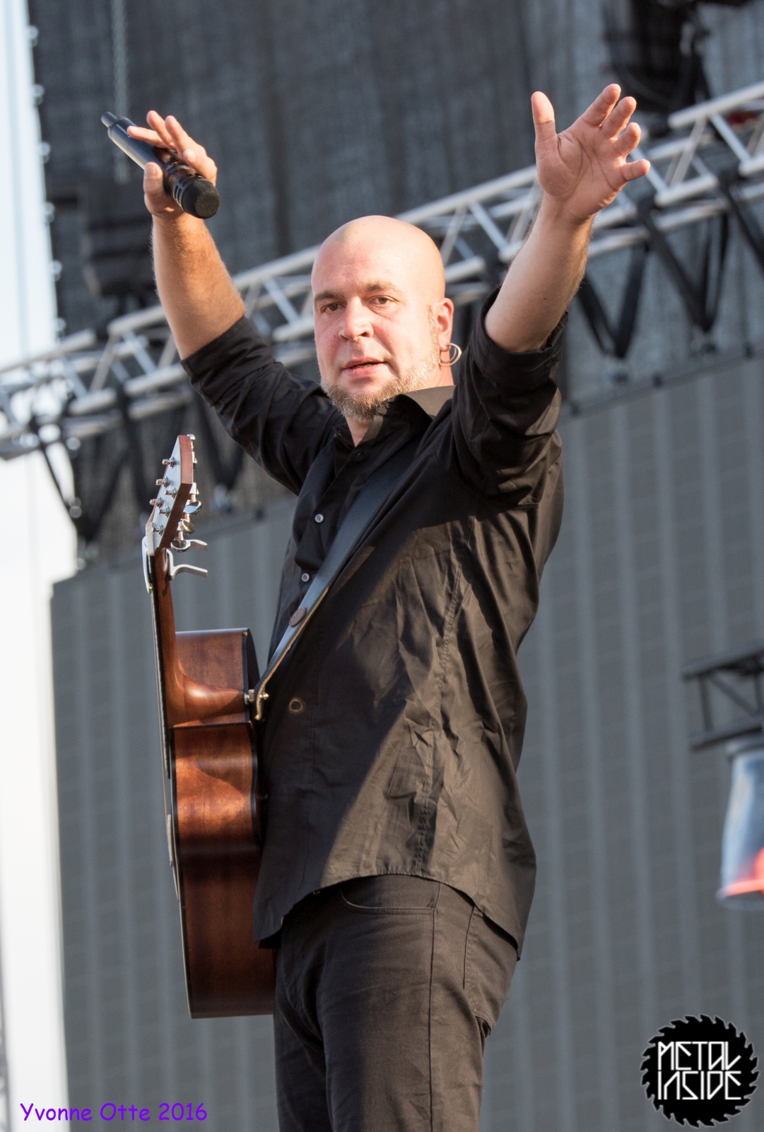 Es folgte ein weiterer Blitzumbau und dann sollte es endlich mit UNHEILIG weiter gehen. Ist natürlich auch ein langer Abend, wenn 3 Vorbands spielen dürfen, besonders weil auch viele Kinder anwesend waren und die haben manchmal nicht so die Geduld noch länger zu warten. Als anstatt der Graf auf einmal ein junger Mann mit Gitarre die Bühne betreten hat, war die Verwunderung groß. Kurz hat er sich vorgestellt und erklärte, dass er eigentlich normaler Gast wäre und gefragt wurde, ob er nicht auch zwei Songs spielen möchte. Natürlich wollte er, denn wer bekommt schon die Chance bei UNHEILIG vor 9.000 Menschen zu spielen. Sehr mutig! Eine gewisse Ähnlichkeit zu ED SHEERAN war vorhanden, so wunderte es nicht, dass er einen Song von ihm spielte. Der Applaus war riesig und das Publikum war sichtlich begeistert. Tolle Leistung, tolle Aktion und wirklich Hut ab vor so viel Mut! A new star is born!