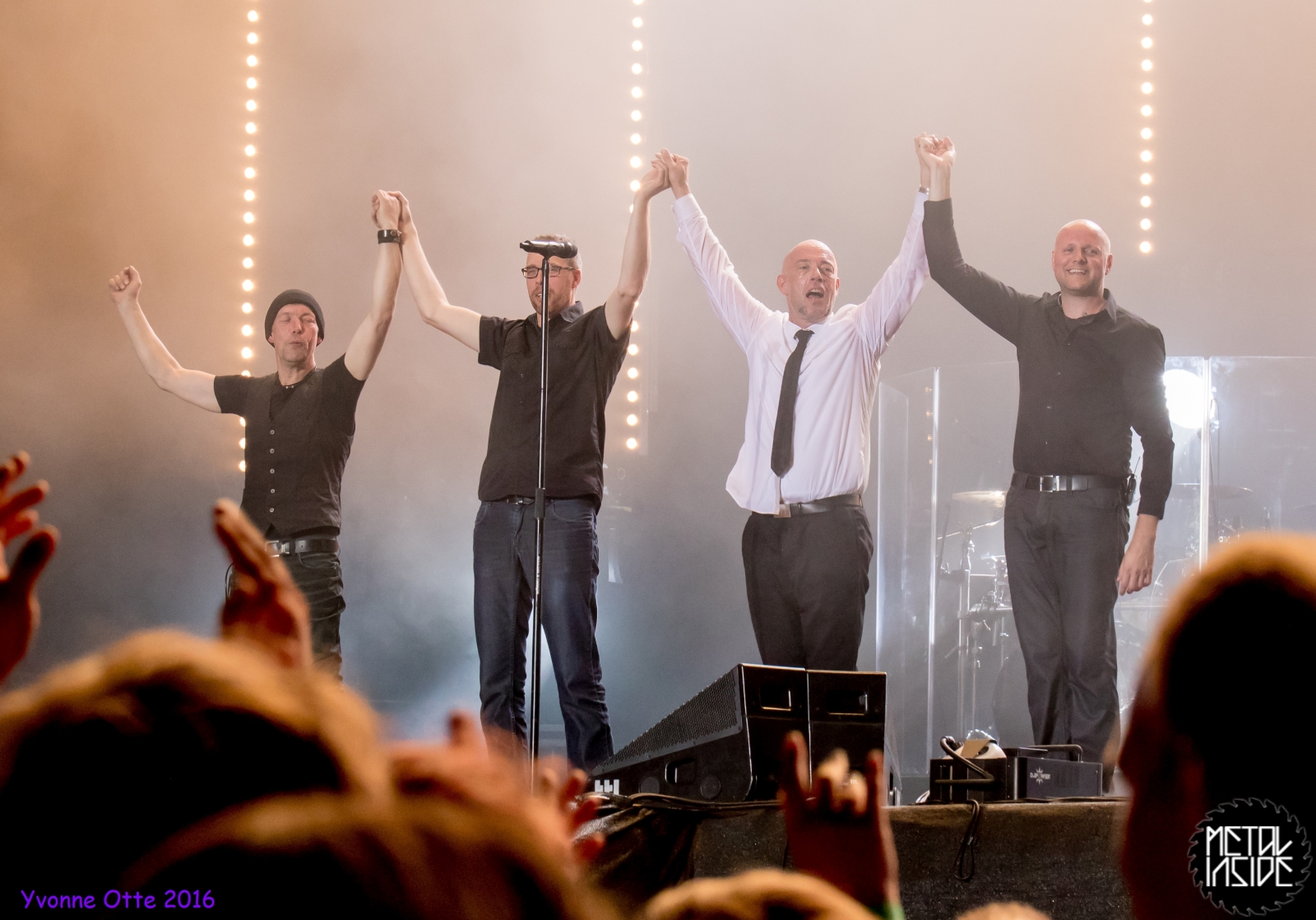 Ein schneller Umbau und das erste Highlight des Abends sollte die Menge zum Toben bringen: SCHANDMAUL. SCHANDMAUL ist nun auch eine Band, die eine ordentliche Hallengröße füllen kann. Sie hat einen großen Bekanntheitsgrad und wird wohl einigen Zuschauern bei UNHEILIG auch bekannt gewesen sein. Falls nicht, haben sie es sich nicht anmerken lassen, denn bei SCHANDMAUL ging die Post ab. Das Publikum lag der Band quasi zu Füßen und es wurde ordentlich gerockt. Natürlich liegt es auch immer ein bisschen an der Band, wie das Publikum mit macht. SCHANDMAUL sind „Alte Hasen“ im Geschäft und wissen, wie man die Menge mitreißt. Der Sparkassenpark hat sich in der Zwischenzeit auch ordentlich gefüllt, so dass es als Band natürlich auch angenehmer ist zu spielen. SCHANDMAUL haben ein großartiges Konzert abgeliefert und haben für UNHEILIG die Menge ordentlich aufgeheizt. Für alle die Gefallen an SCHANDMAUL gefunden haben und nicht eh schon Fan waren und alle News kennen: Die Band tourt im Herbst durch Deutschland und mit Bochum (19.11.2016), Bielefeld (03.12.2016) und Köln (10.12.2016) sind auch drei Sektor Termine dabei.
