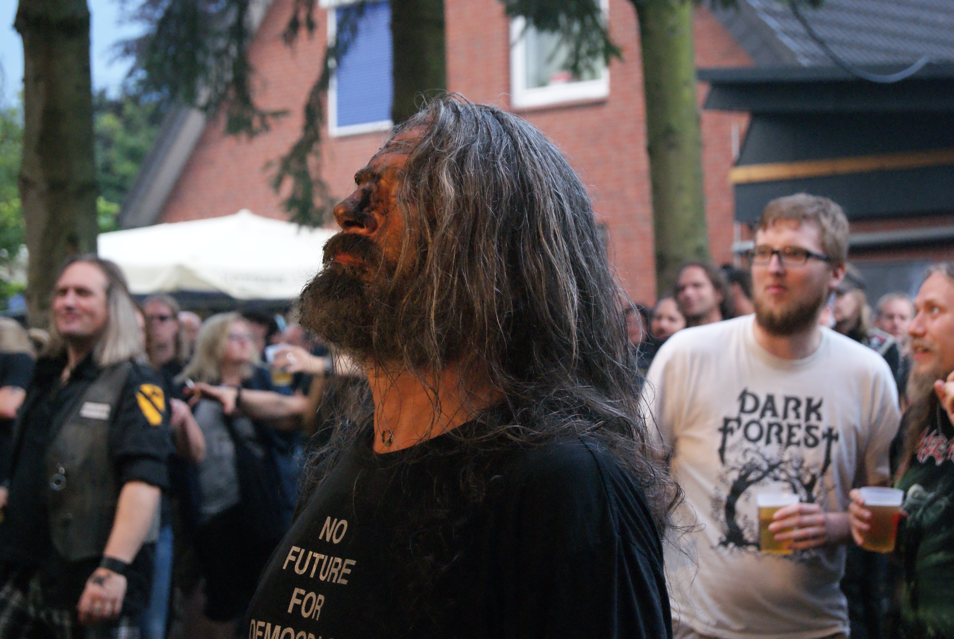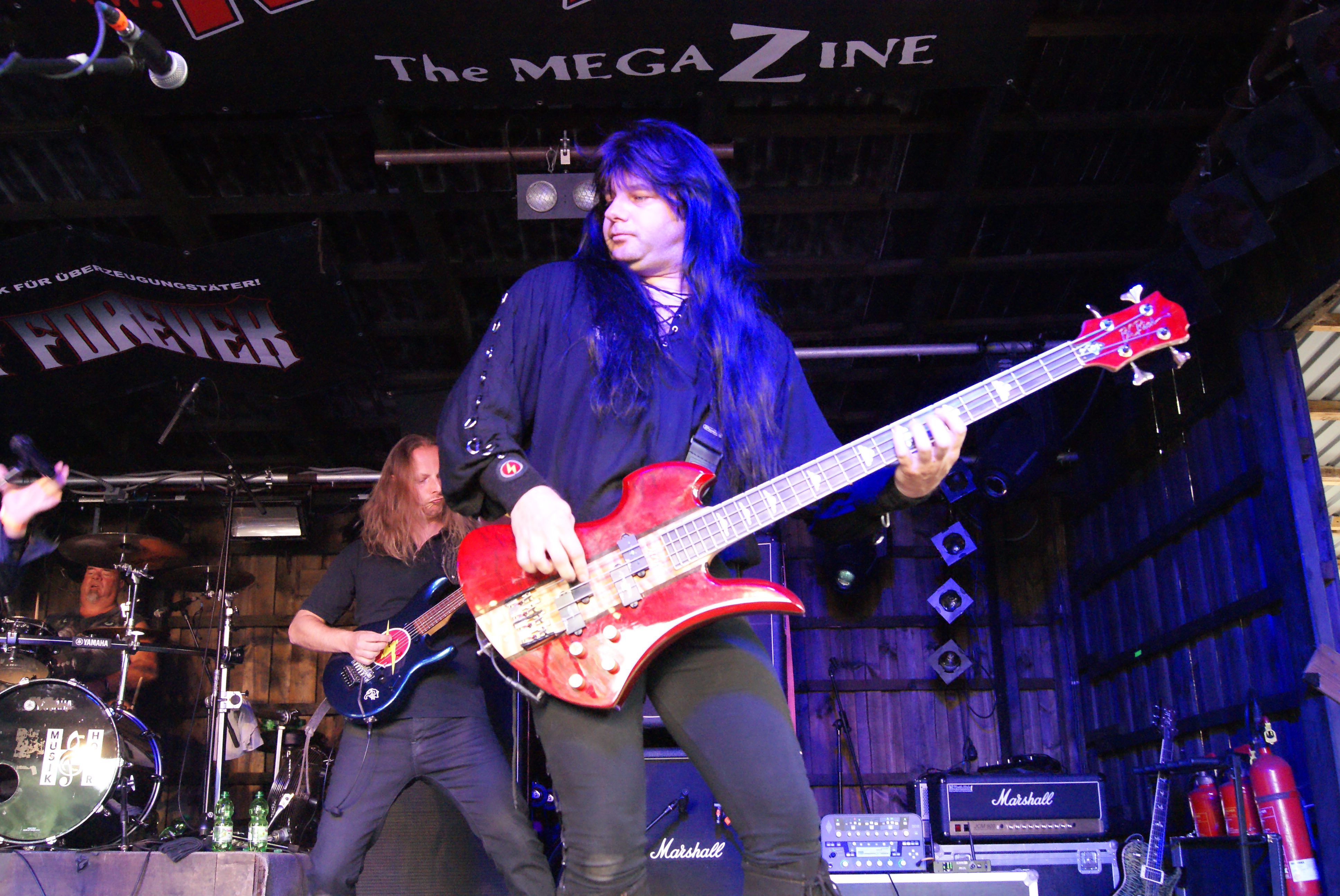 Als nächstes waren die Schweden NIGHT an der Reihe. Für mich immer ein wenig die Band der vergebenen Möglichkeiten. Ich mag das basische, nach den frühen 80ern klingende Songmaterial der Jungs durchaus. Auch an der Präsentation gab es wenig zu meckern. Das Ganze wirkte durch und durch authentisch. Der Pferdefuß ist der Gesang von Oskar Andersson. Ich habe ja nix gegen hohe Vocals, aber der gute Mann hält sich ausschließlich in der Kopfstimme auf, die er nur minimal variiert, und so geht mir das nach 3-4 Songs irgendwann auf die Nüsse. Es ist einfach schade, weil sonst sind NIGHT eine starke Schweden-Metal Combo. Wenn es der Herr „Burning Fire“ (so nennt sich Meister Andersson) doch irgendwann in Betracht ziehen sollte, ein wenig Abwechslung in seinen Gesang zu integrieren, dann bin ich auch bei NIGHT wieder voll dabei. Mit Herrn Brandt vom DEAF FOREVER haben sie aber ein Herz im Sturm erobert. Selbiger zog nach dem Gig sofort los, um die beiden Alben zu verhaften.